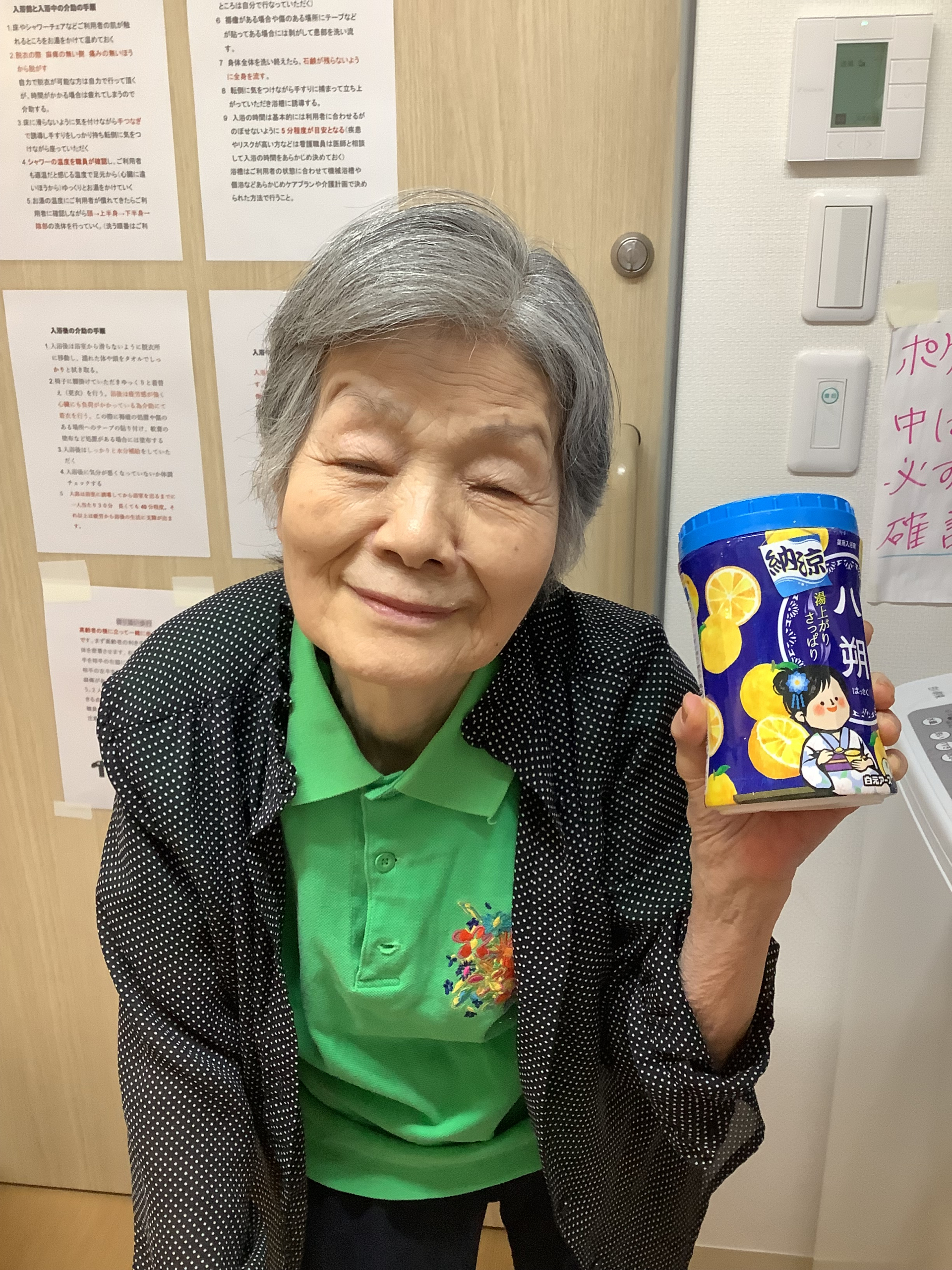 今週は温泉週間。4種類の温泉の素から好みの香りを選んで入浴を楽しみます。