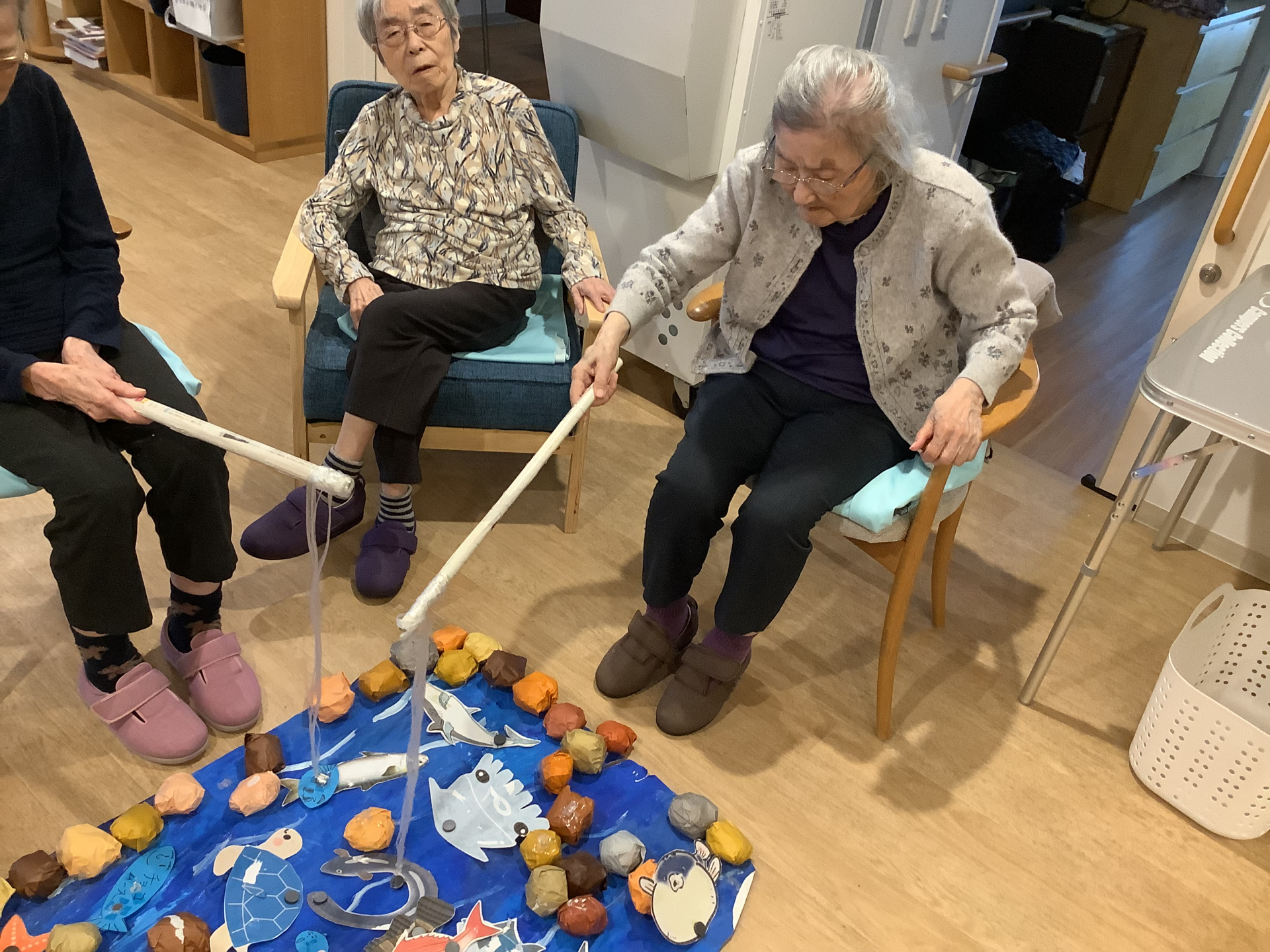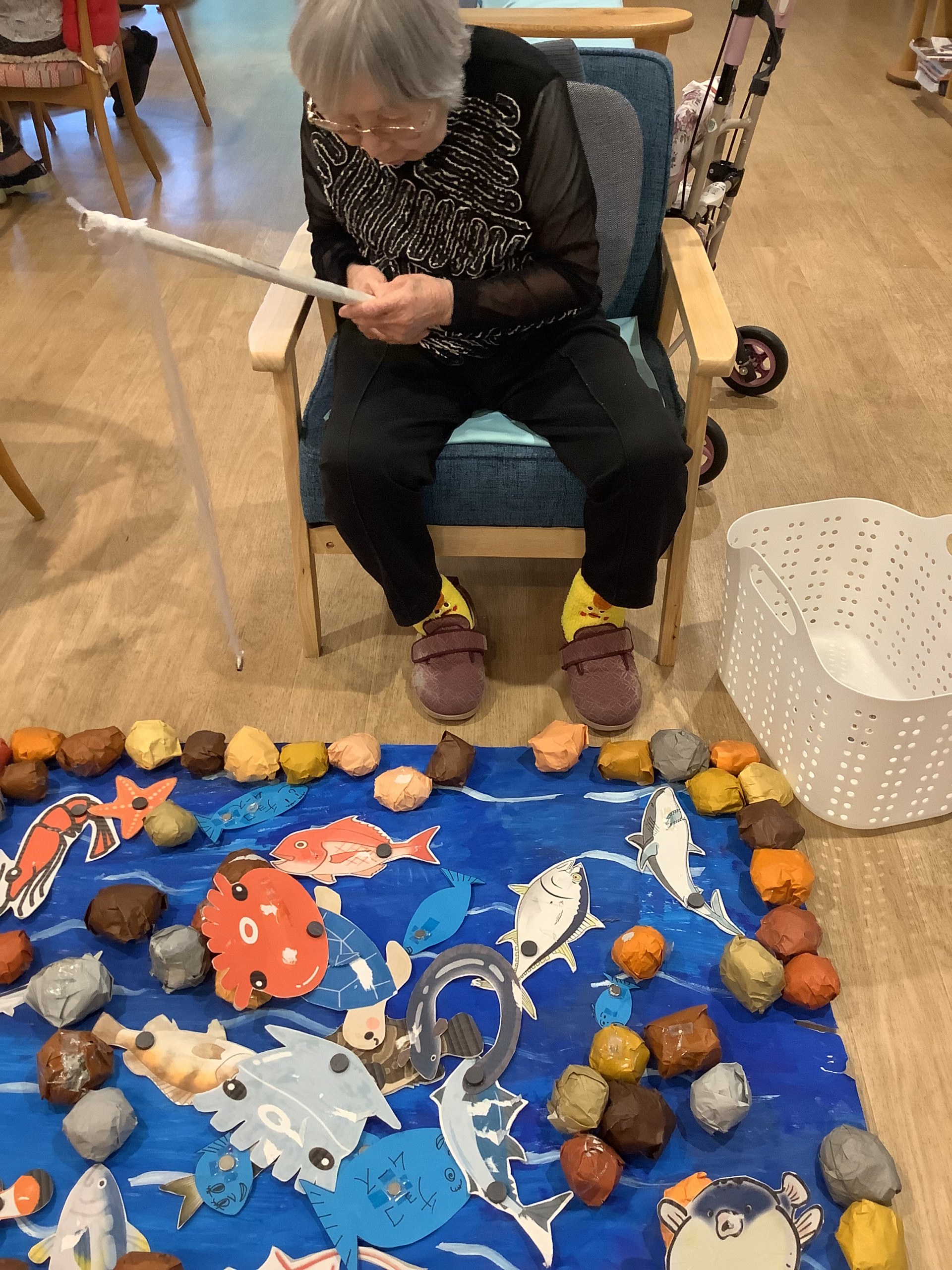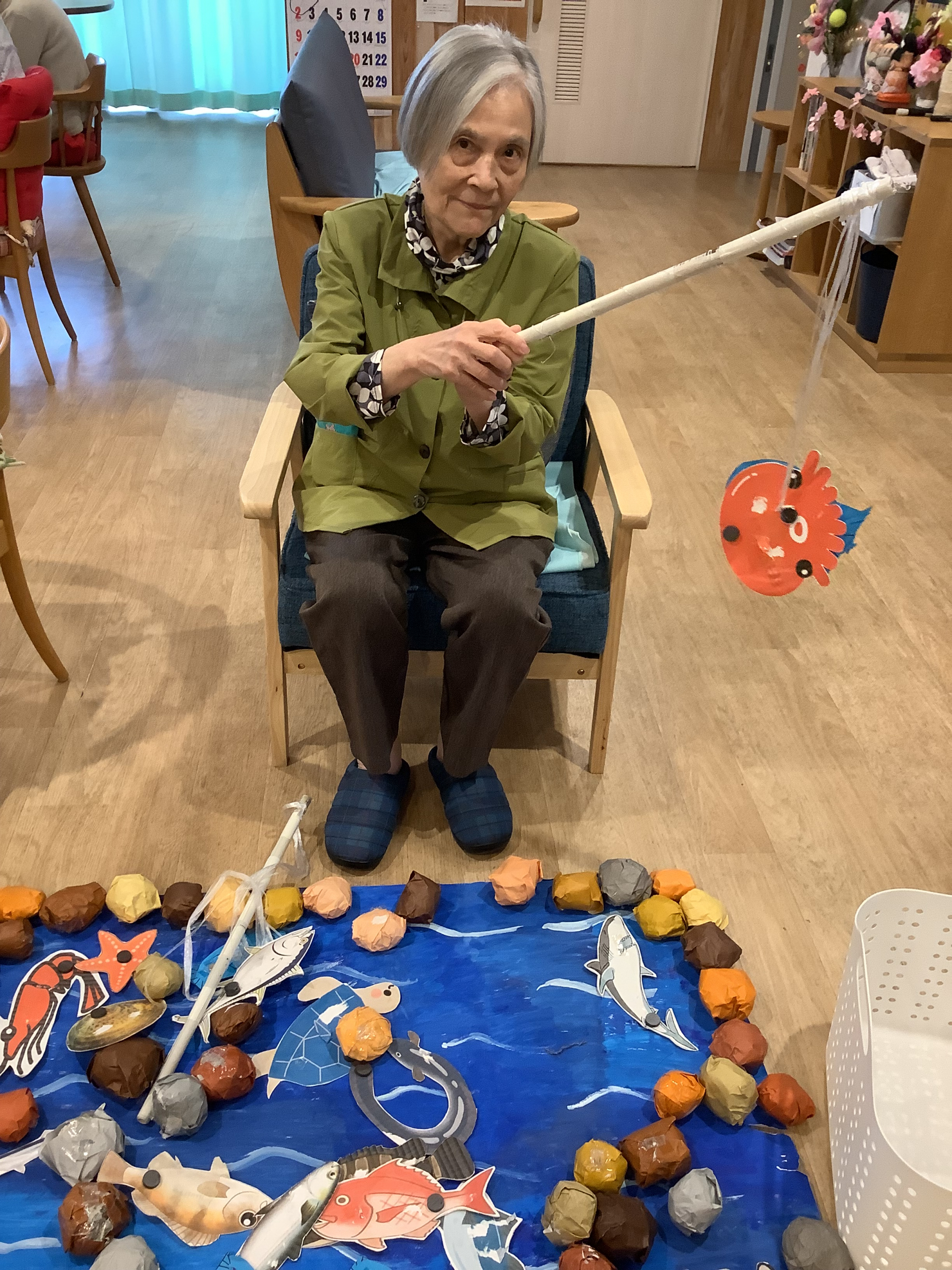 本日雨が降り続いてるので,フロアで魚釣りゲームを楽しくやりました!
