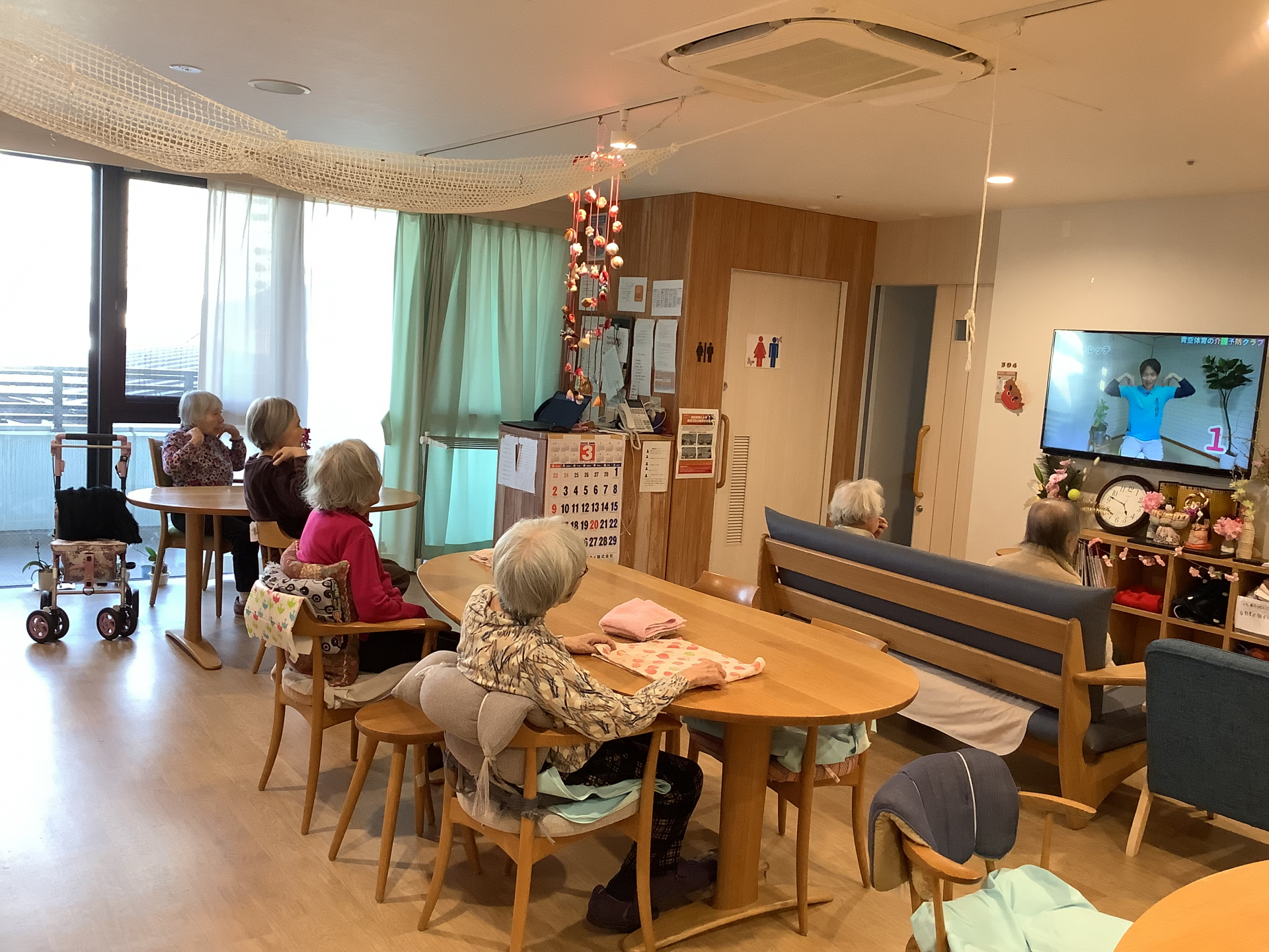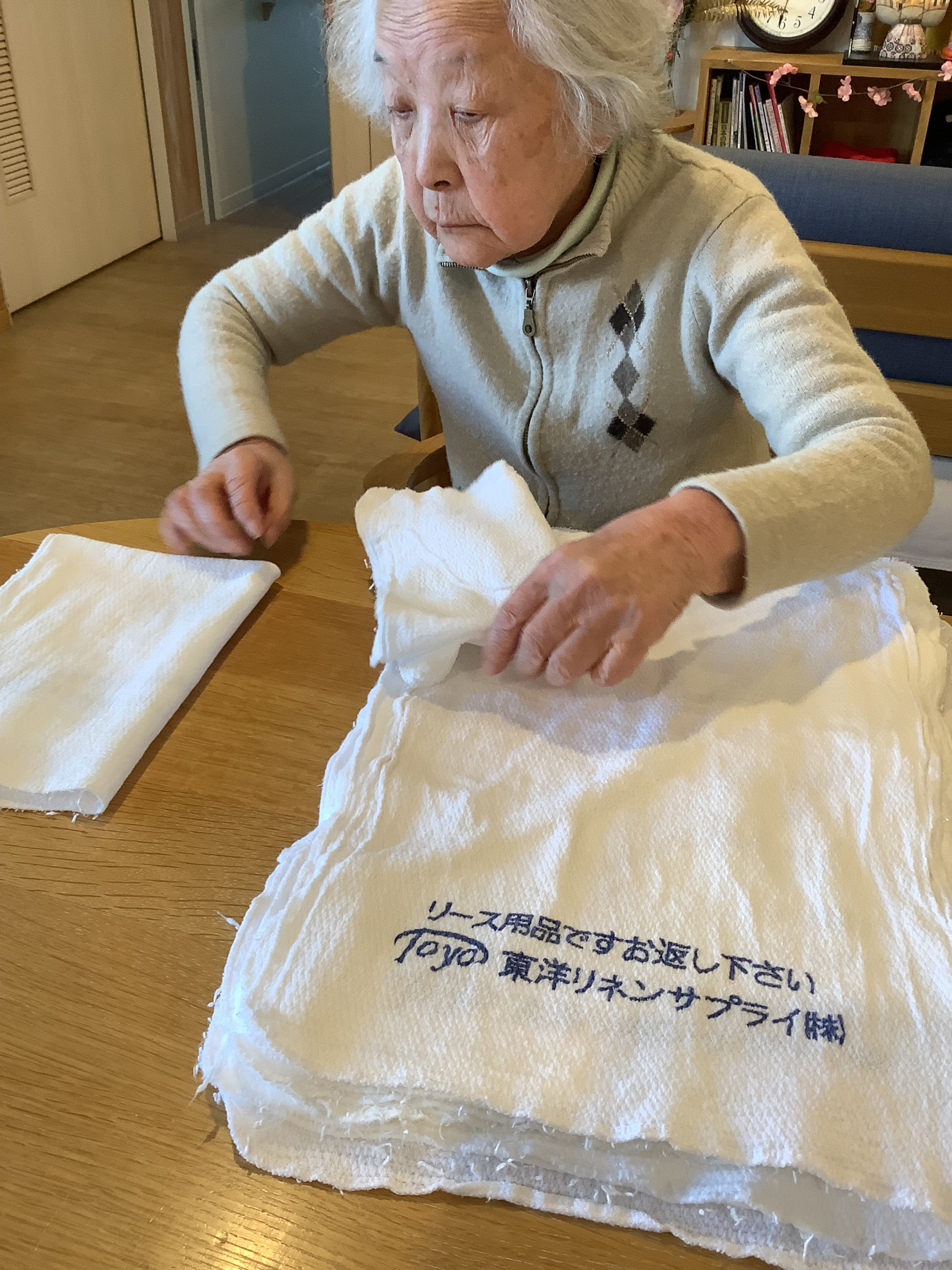 タオルを畳んだり,体操をしたり,お散歩も行きました。