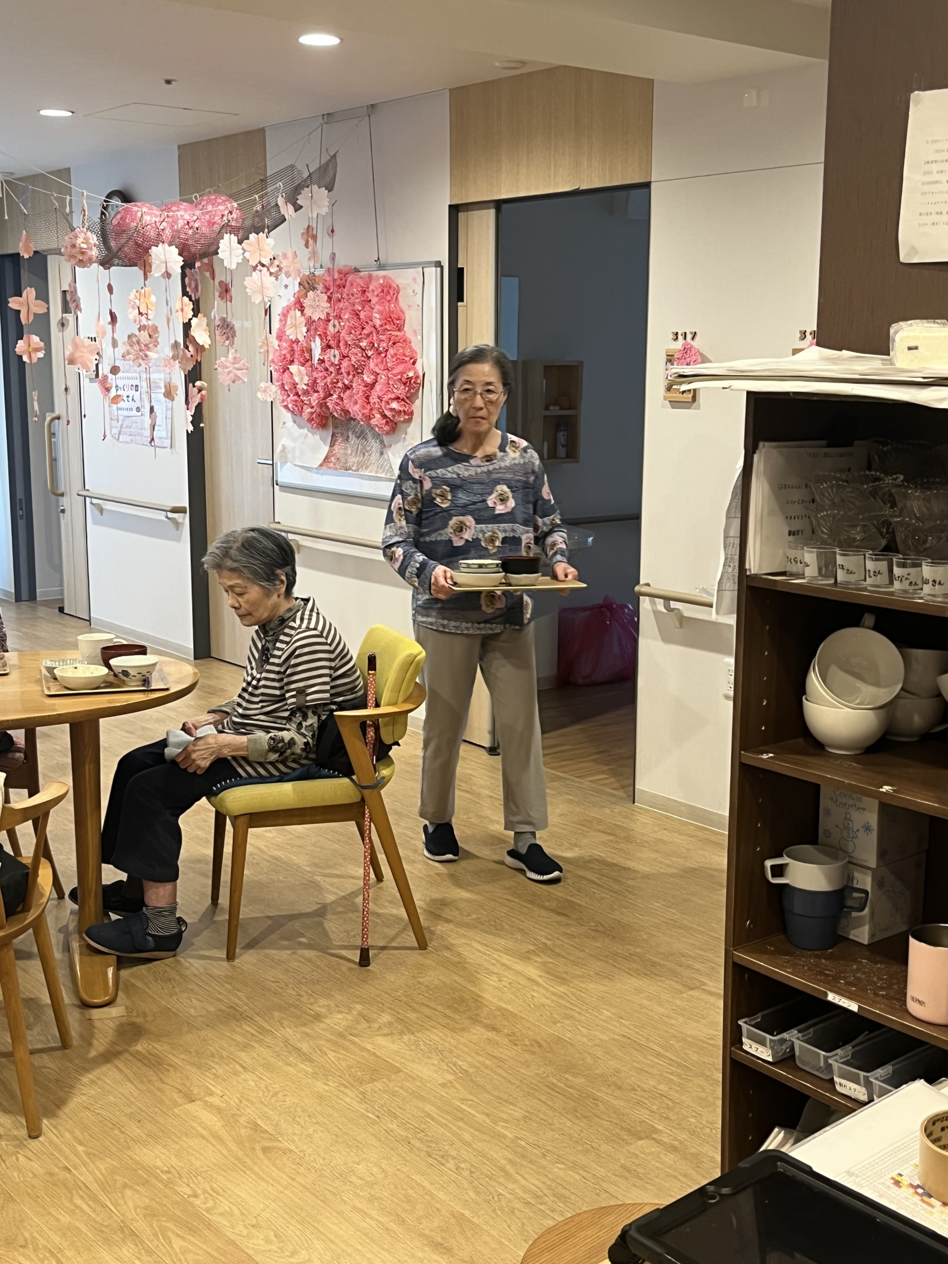 食事の後は自分の食器や他の方の食器をキッチンまで運んでくれてます。。