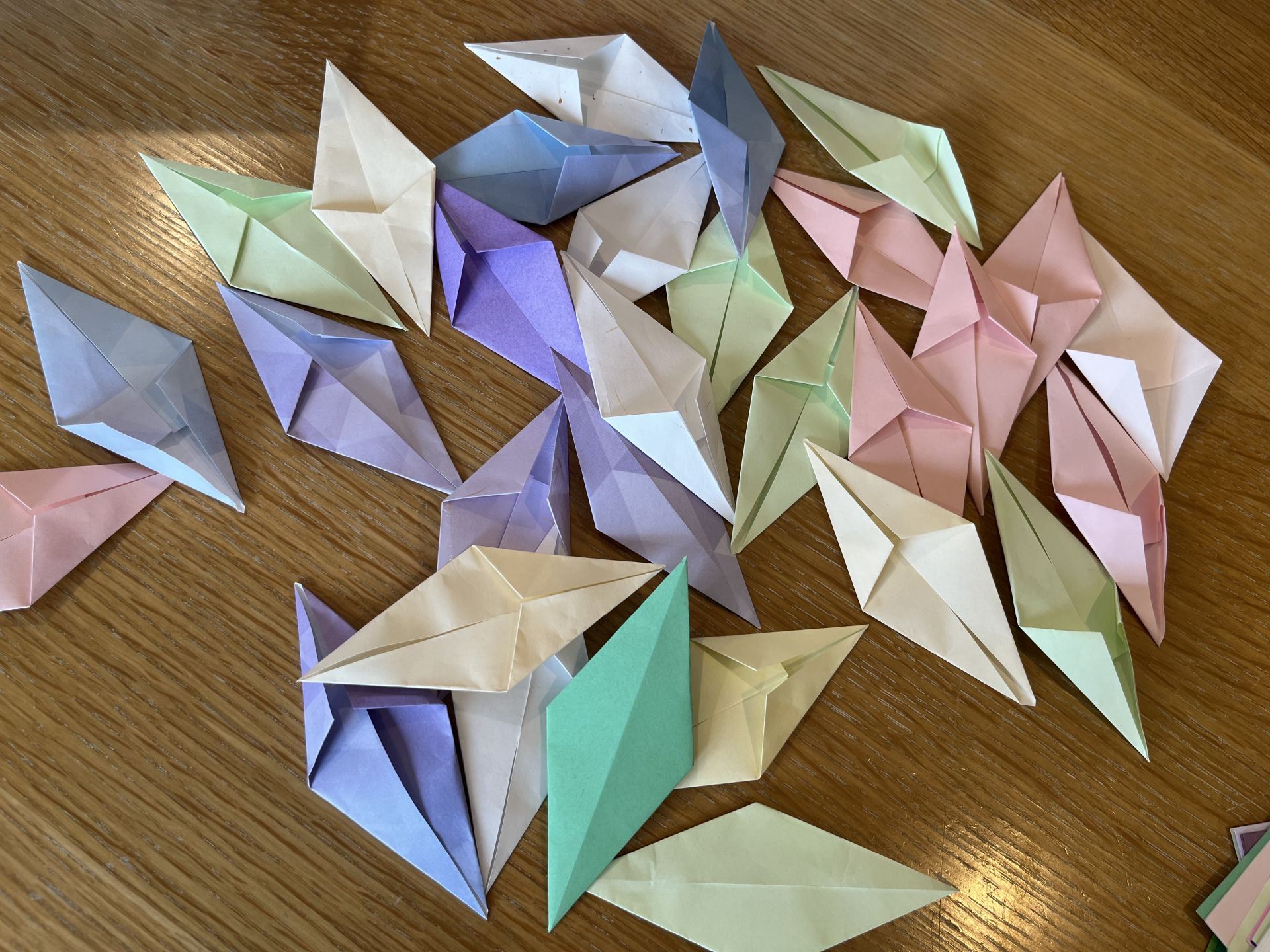 折り紙でひし形に折ったパーツですいれんを作ります~