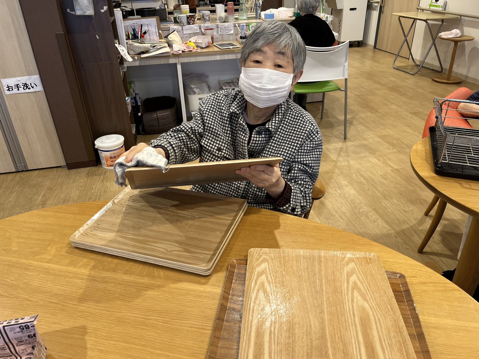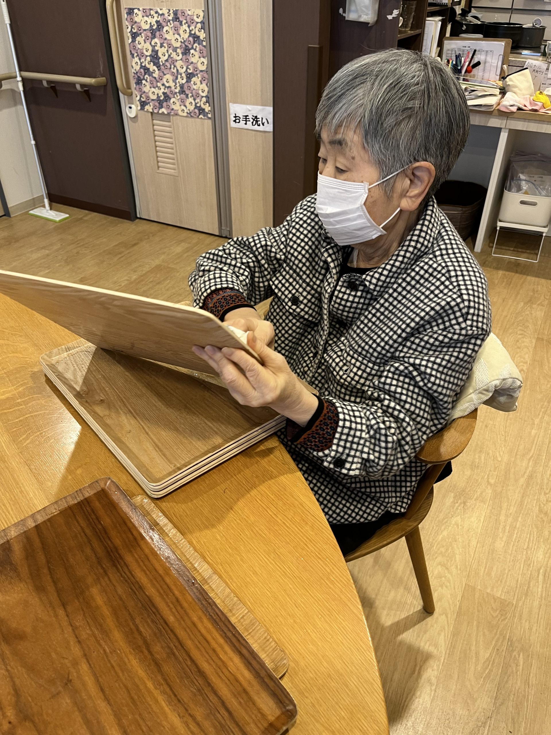 拭いた後のトレーは交互に(^^♪