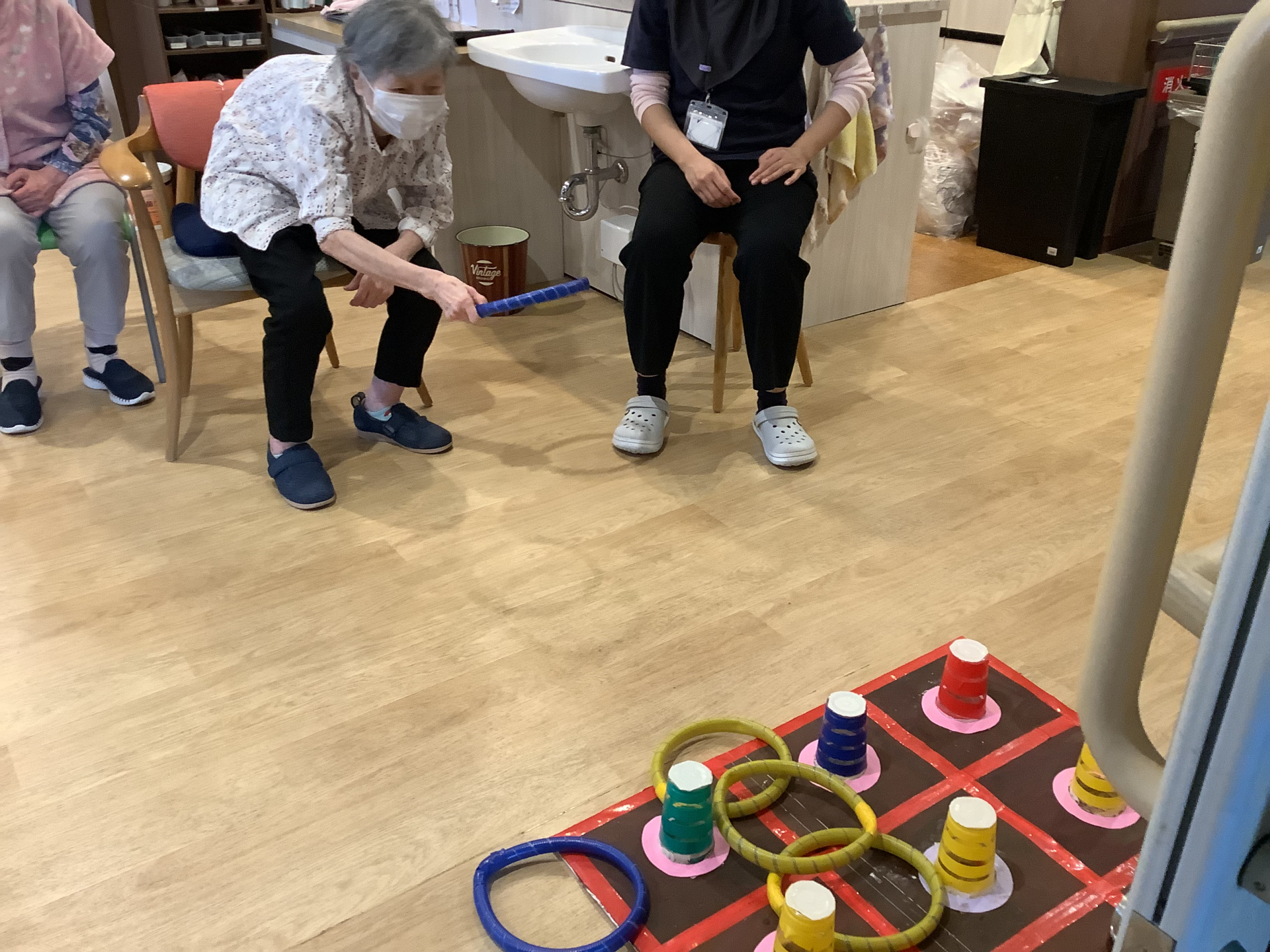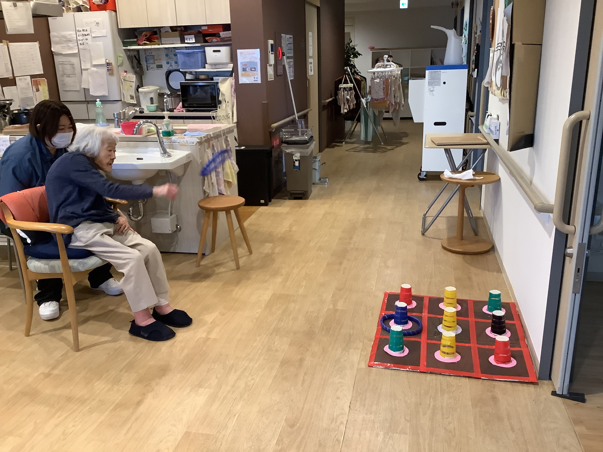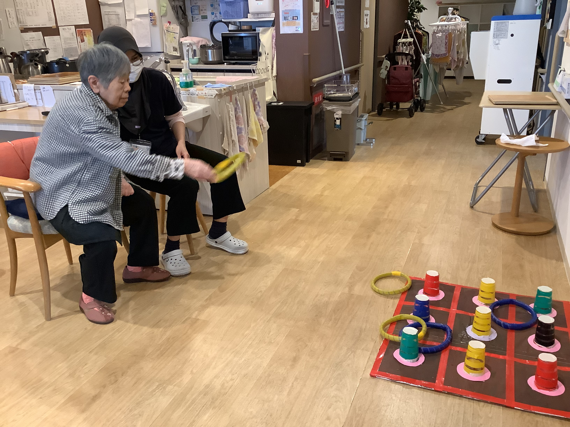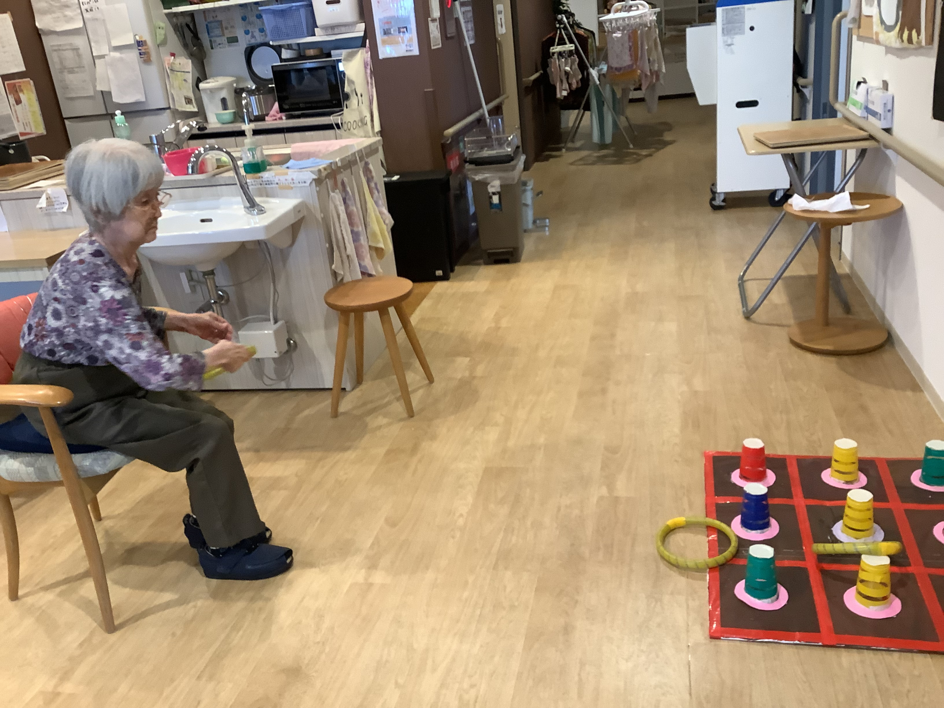 本日はあいにくの雨・・室内で輪投げゲームに挑戦‼
