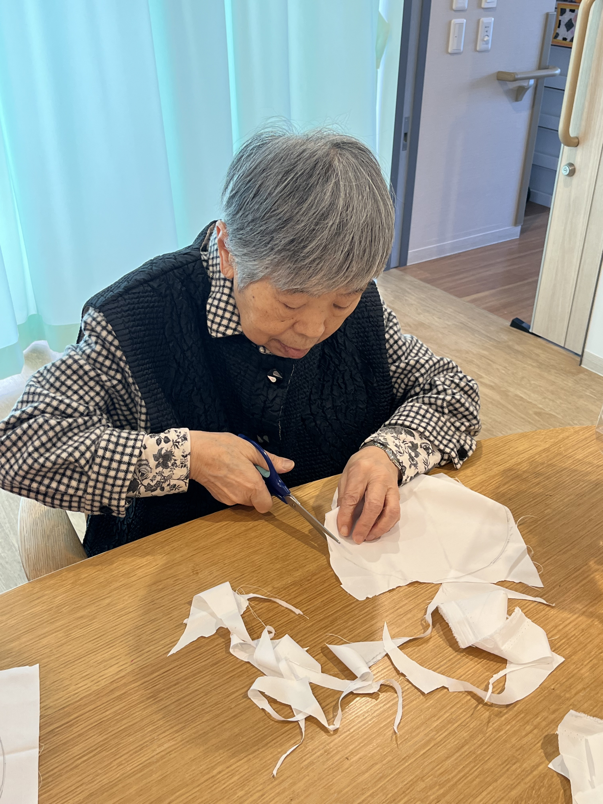 綿と白い布・絵の具を使いてるてる坊主を制作します!