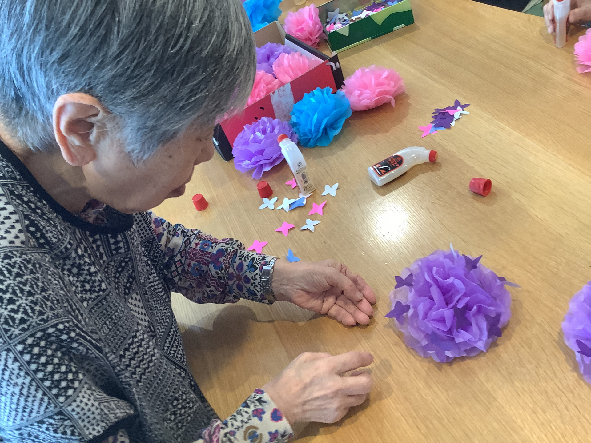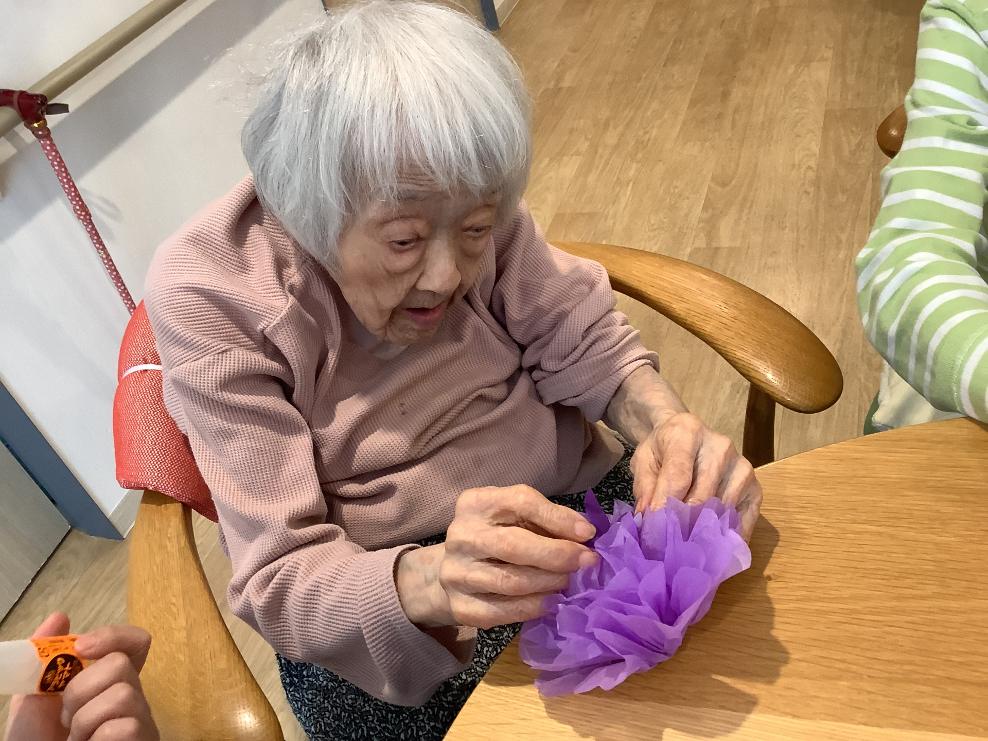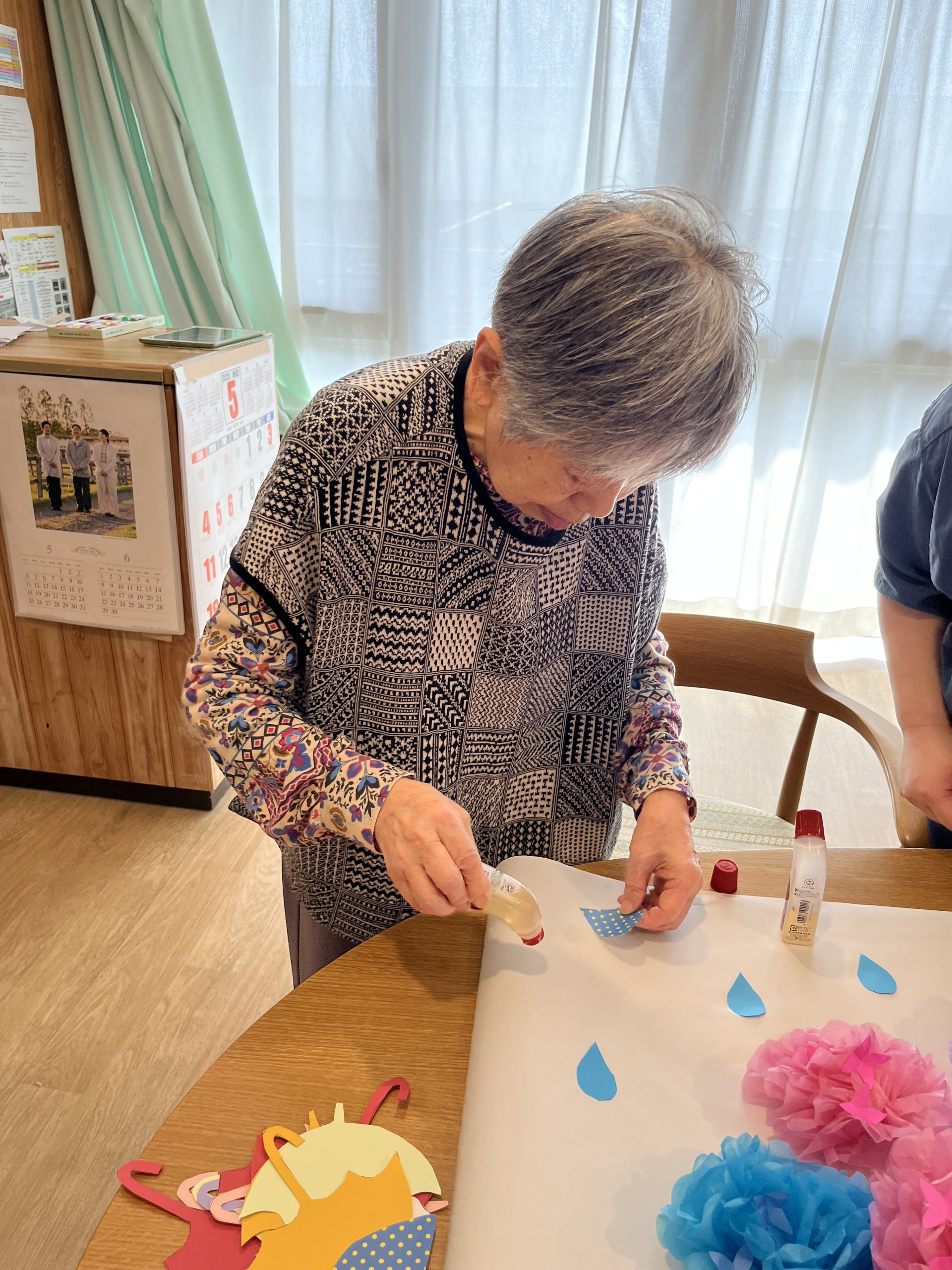 折り紙で折った花びらを貼っていきます