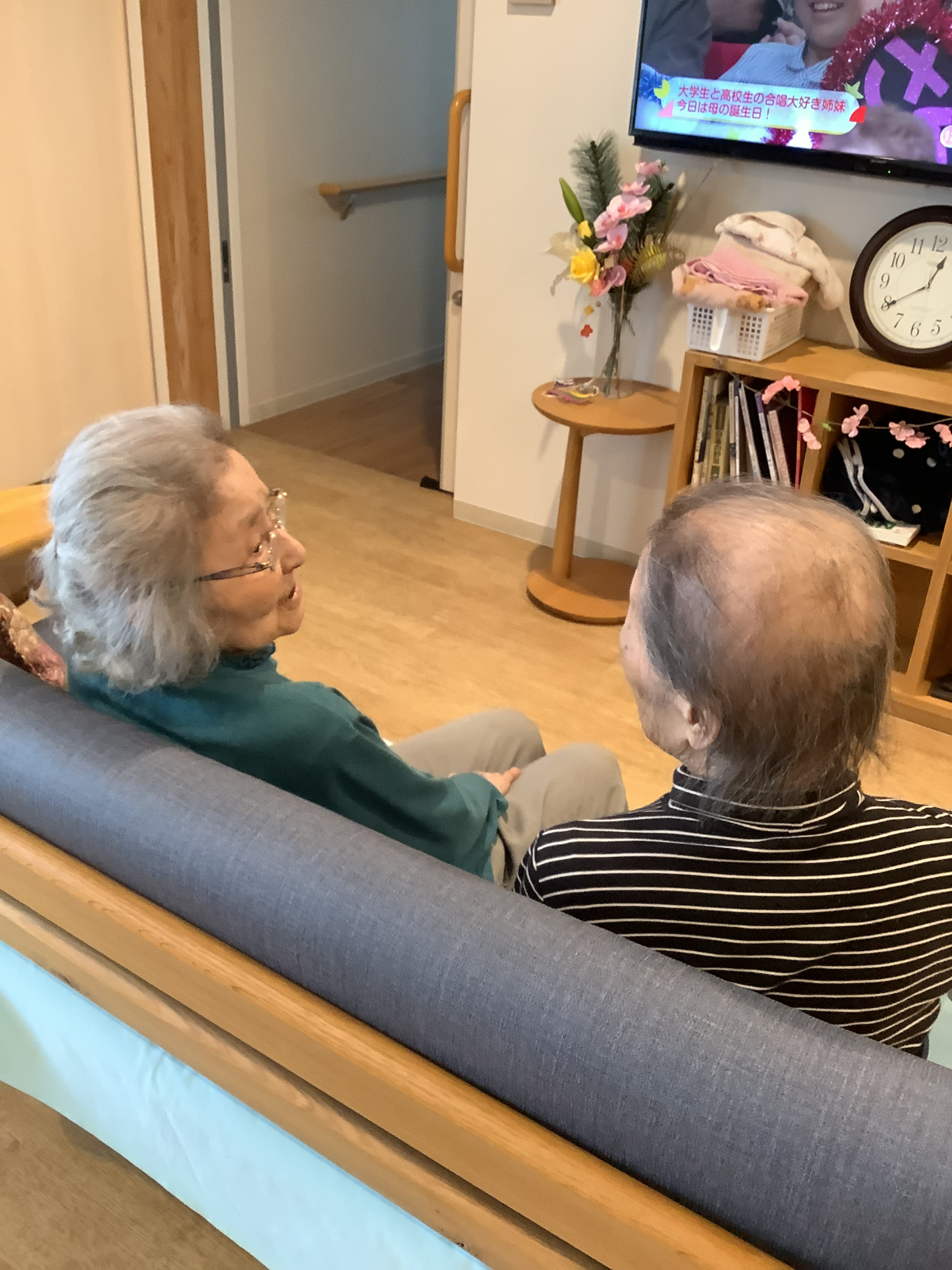 テレビの前に仲良くして二人の姿。。