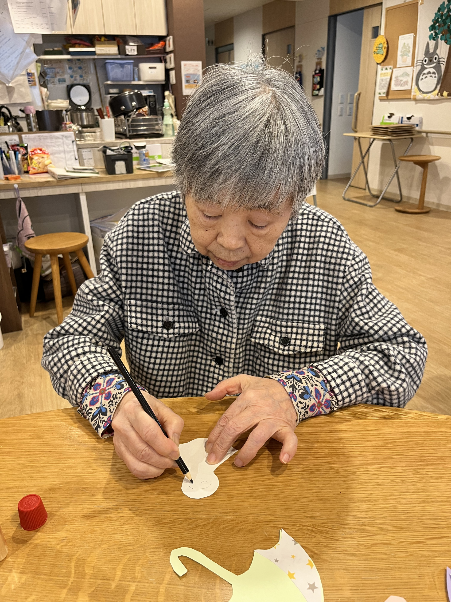 布でもてるてる坊主を制作しましたが色画用紙で吊るし用のてるてる坊主を制作します( *´艸`)