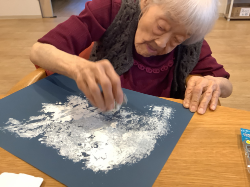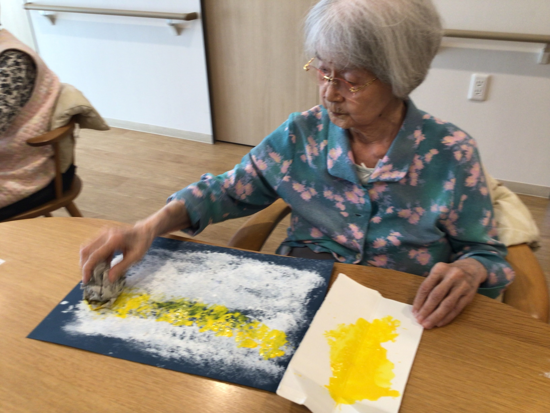乾いた白い箇所に黄色い絵の具をポンポンポン♬