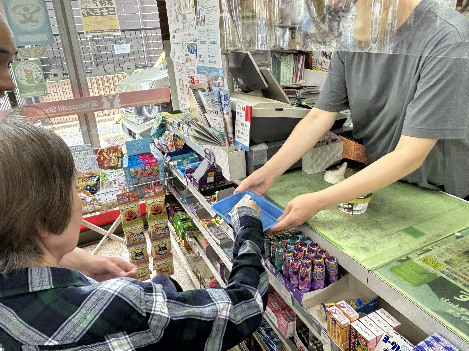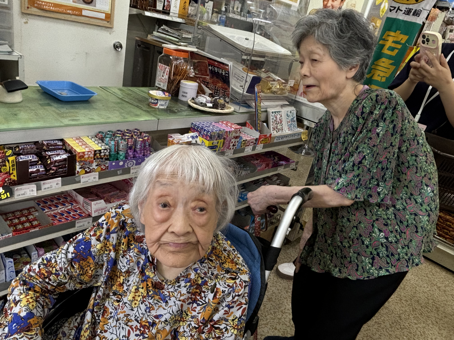 おやつを買いにお買い物に出掛けました。皆さん、笑顔が溢れます。