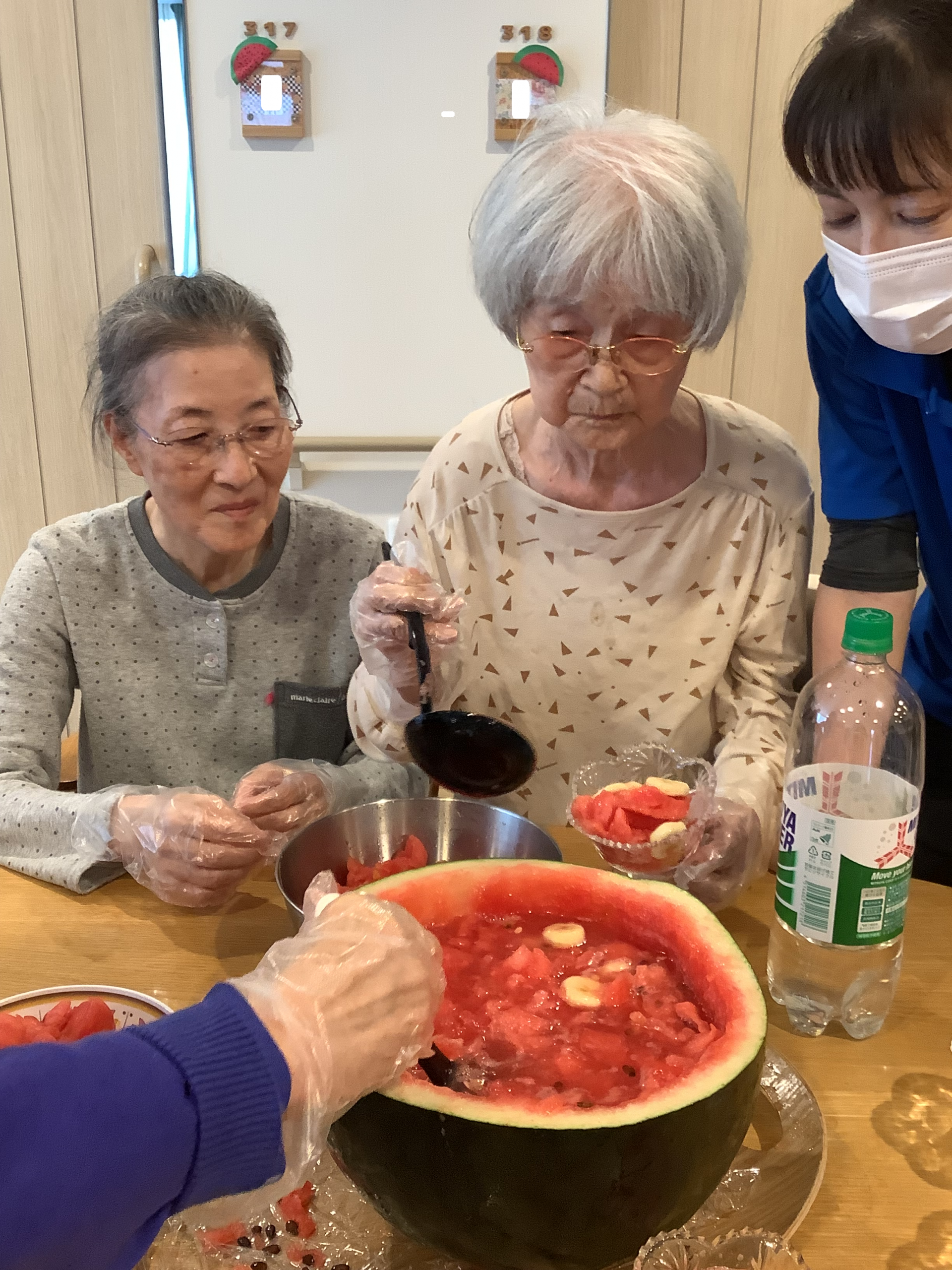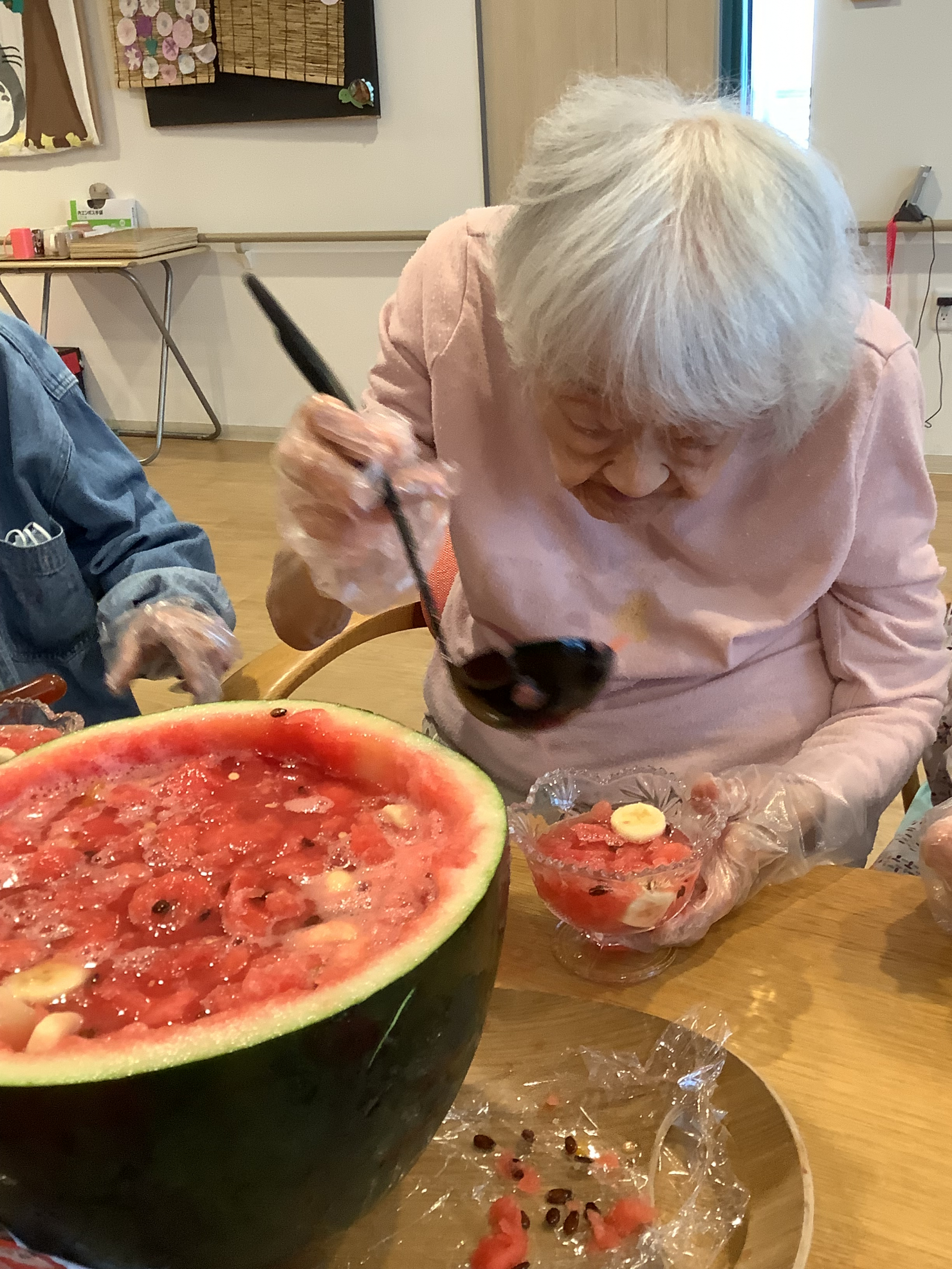 フルーツポンチが完成したら自分の分は自分で取り分けます(#^.^#)