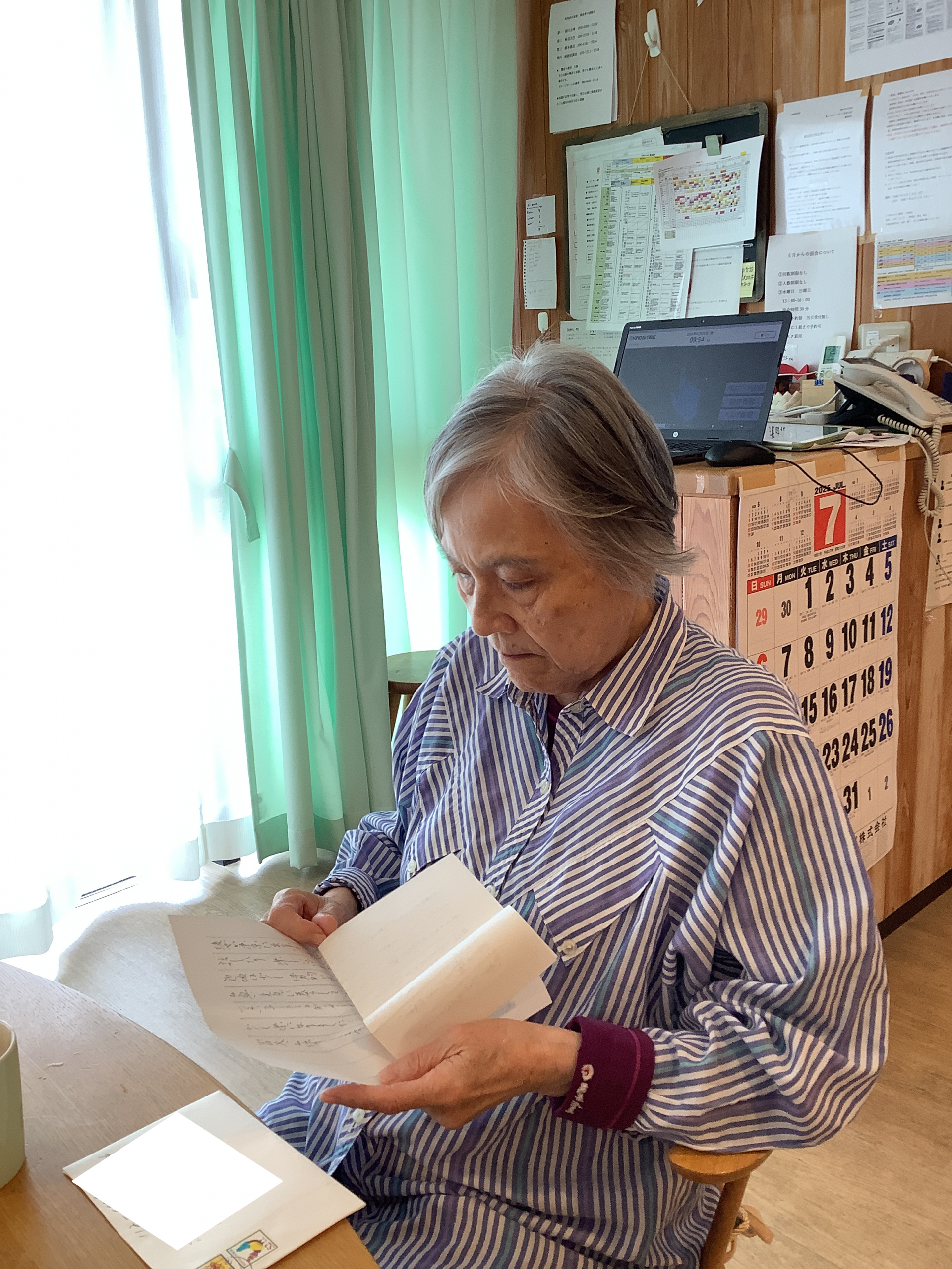 丁寧に読みながら,「嬉しいね」「元気そうで安心した」と笑顔を見せて下さいました。