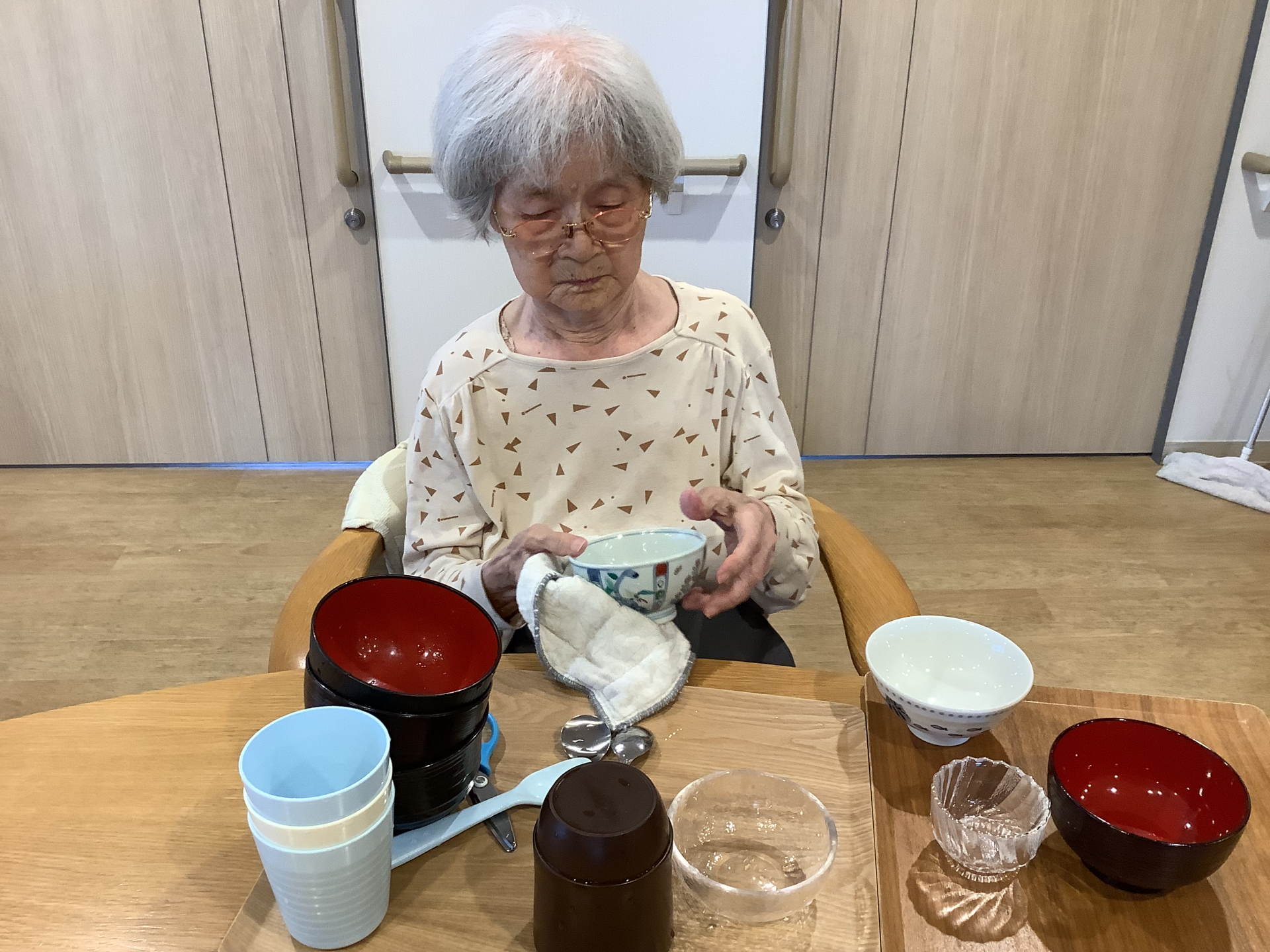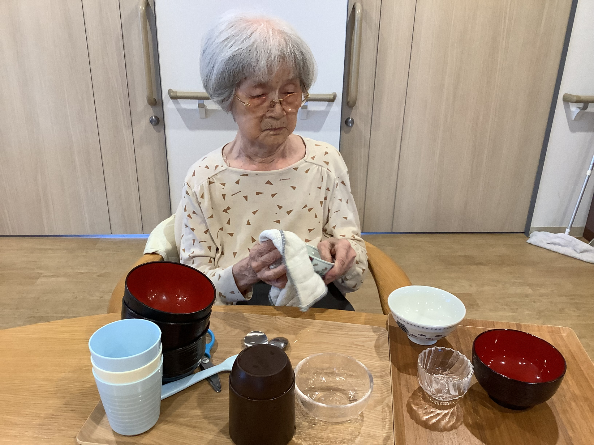 盛り付けに食器拭き・・