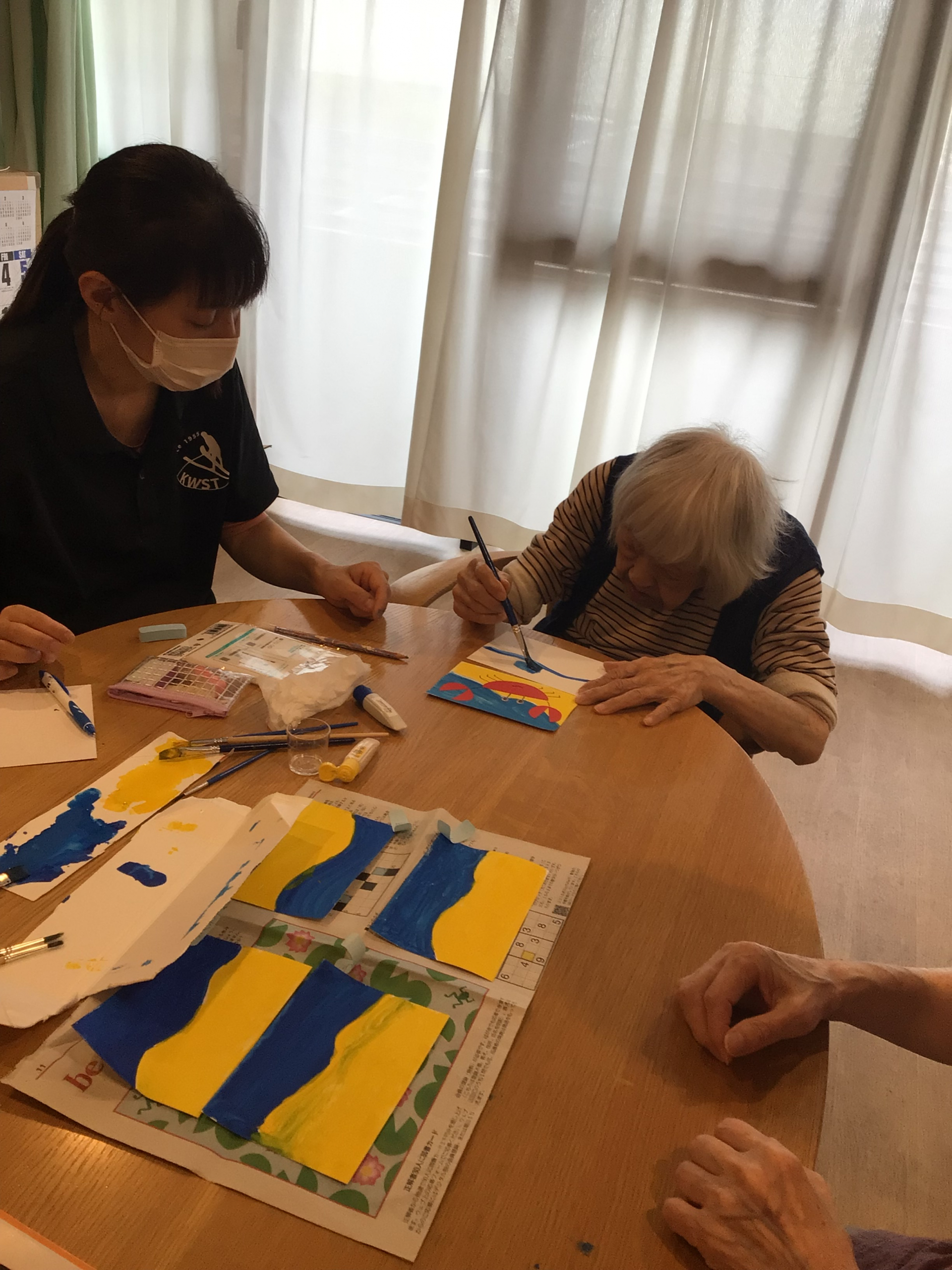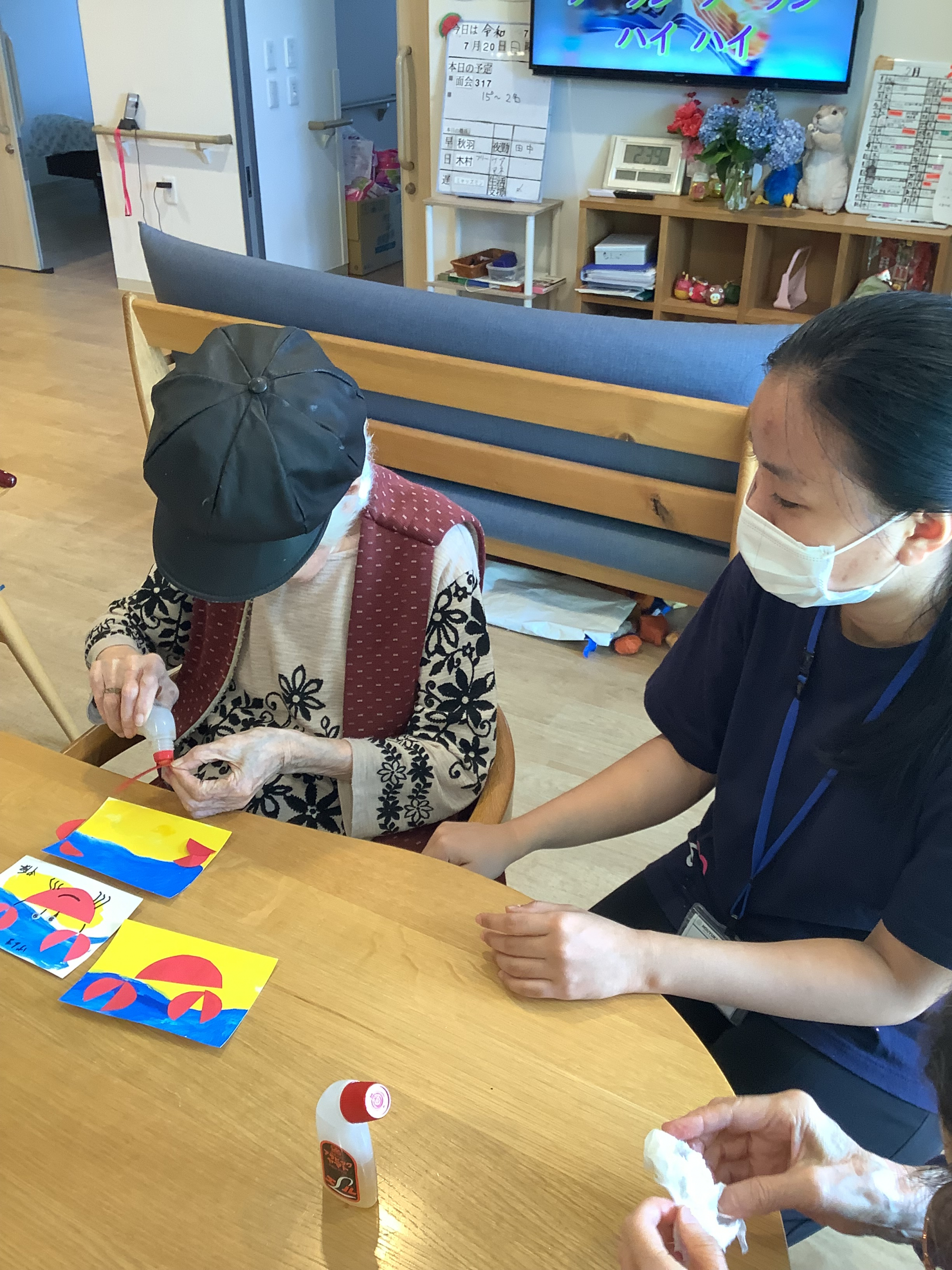 絵の具が乾いたらカニのパーツを好きなように貼っていきます