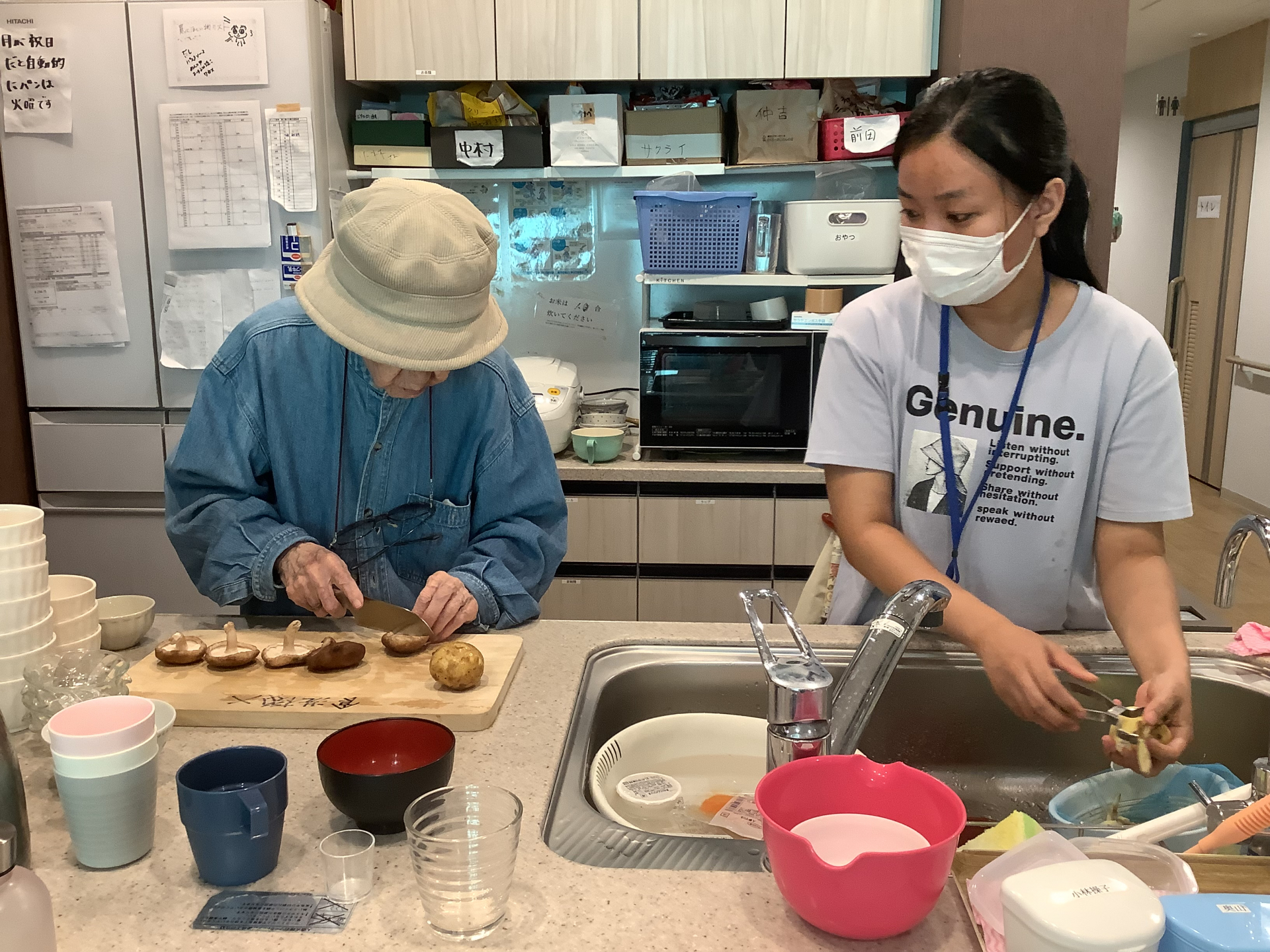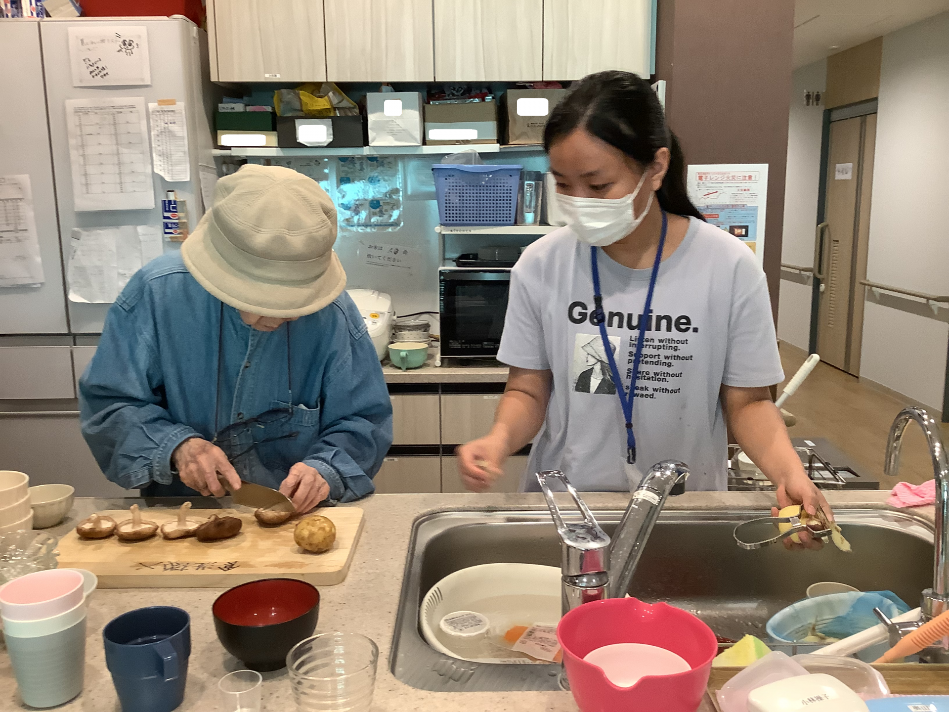 職員と一緒にお味噌汁作り♬