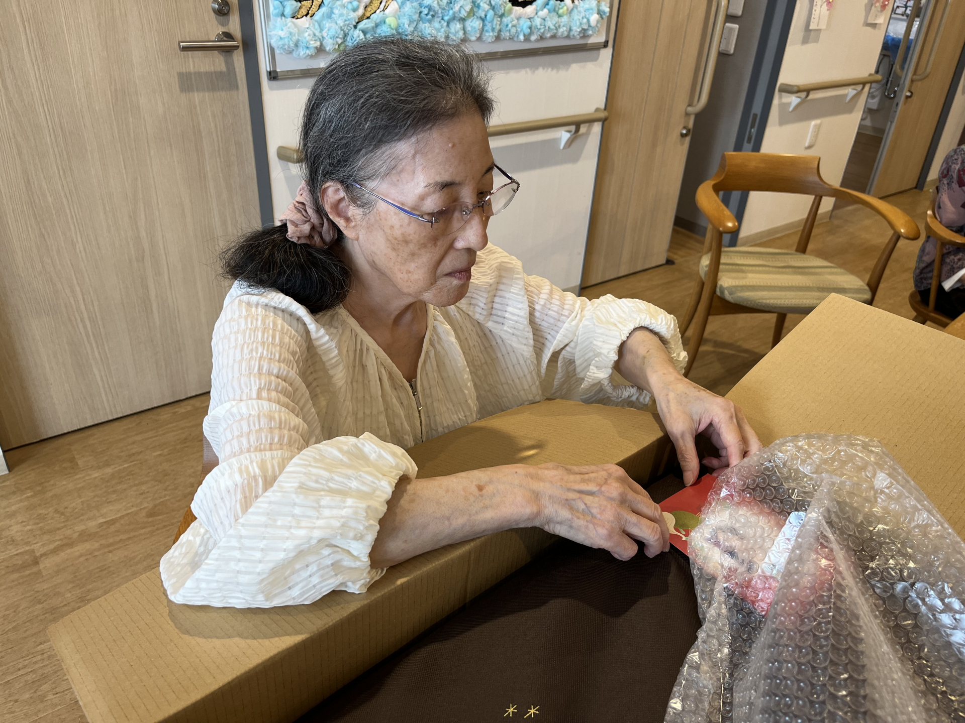 ご家族様より敬老のお祝いの荷物が届きました♬