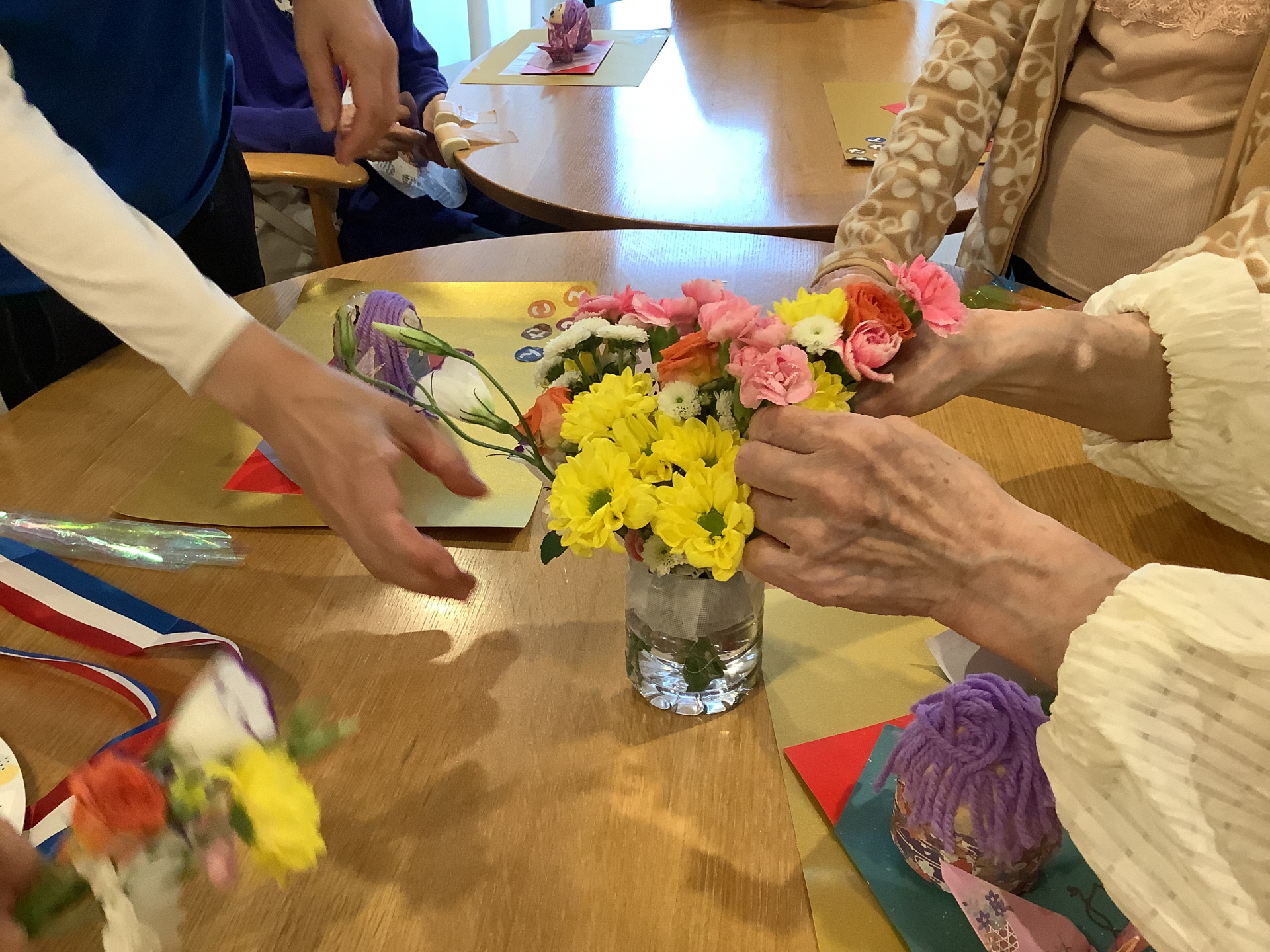 花束を合わせて大きい花束にしましょう~と話が出て早速花束作り開始~