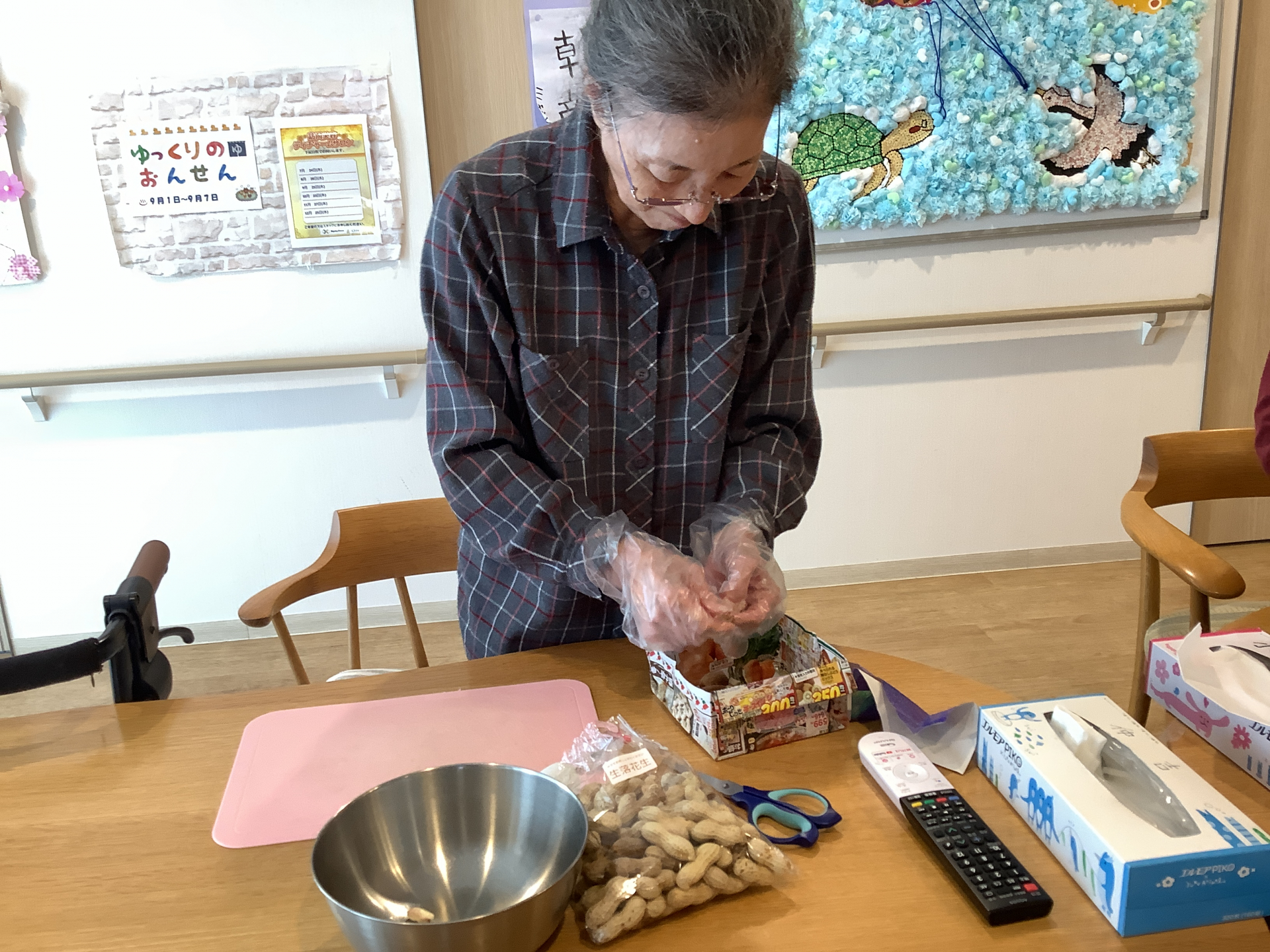 とても細かい作業ですが根気よく殻をむいてくれてます