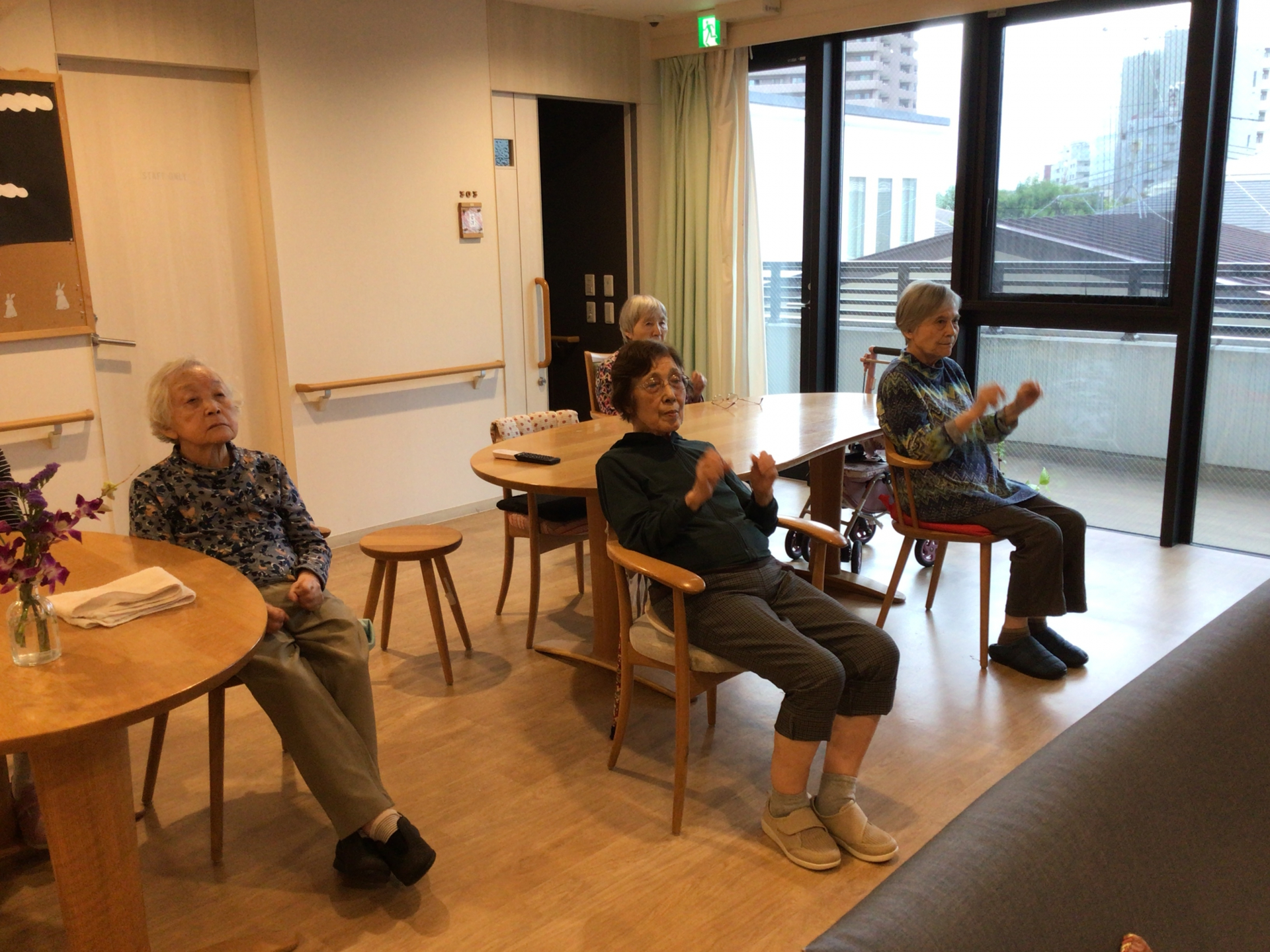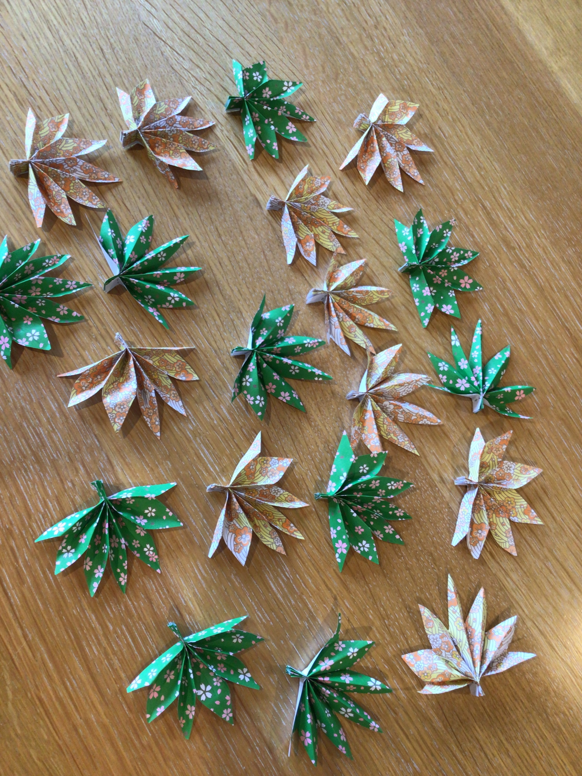 今日は皆さんと一緒に新聞を折ったりして,紅葉の折り紙も作りました。