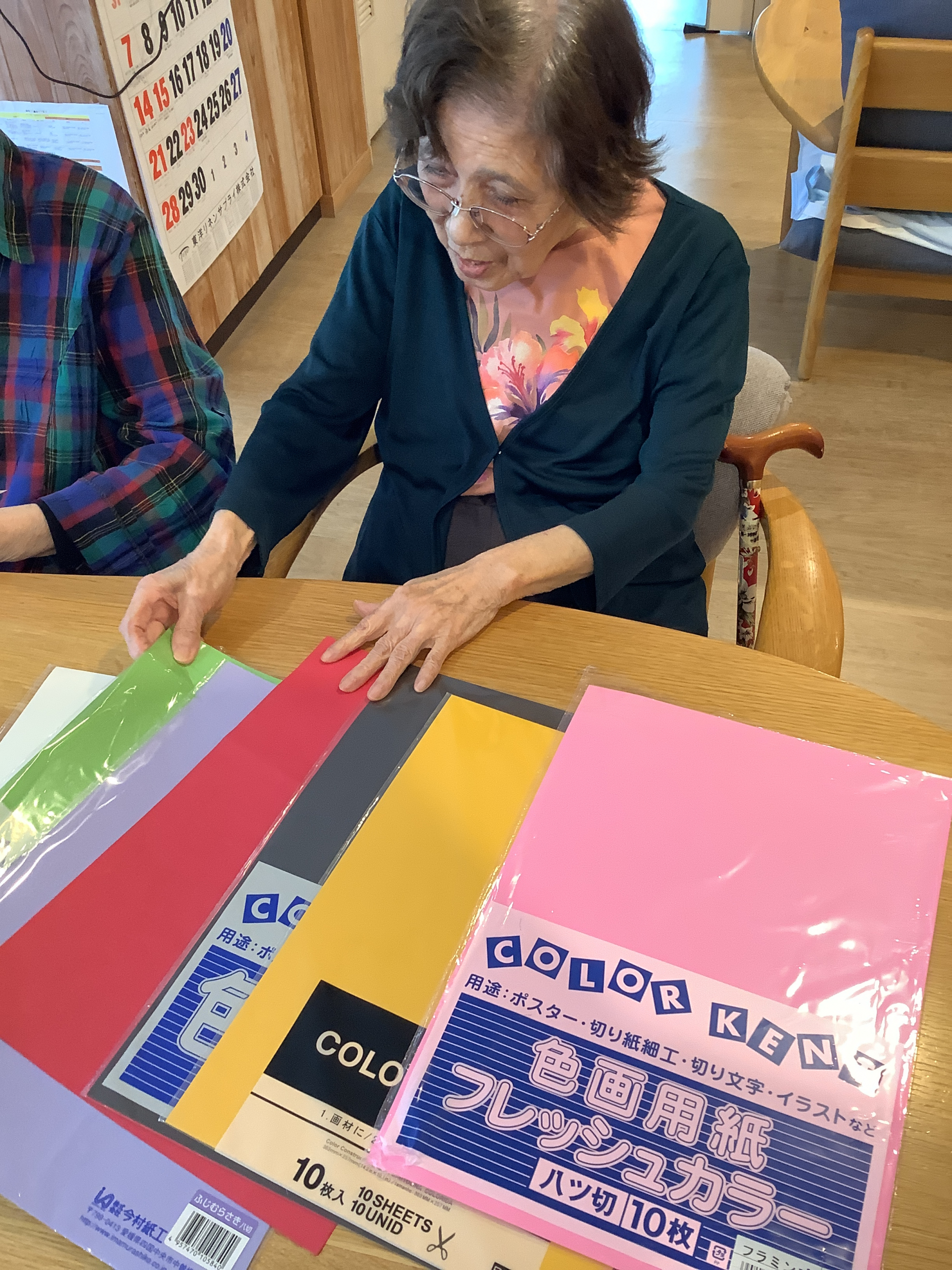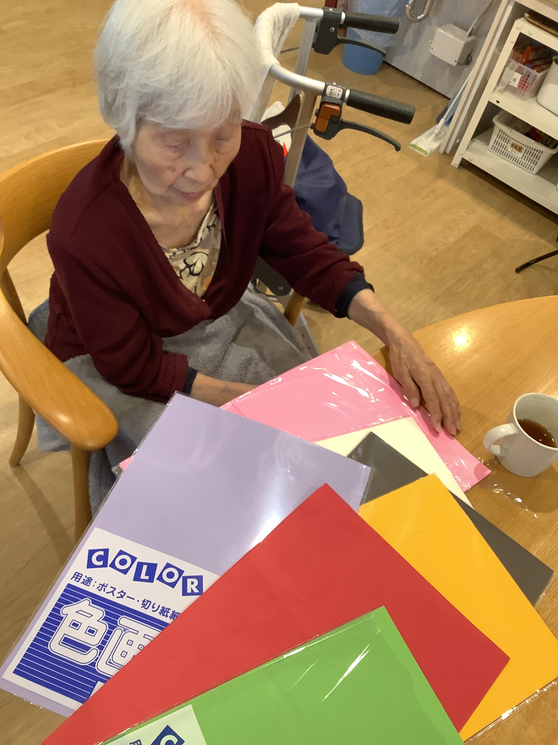 まずは、皆様にお好きな色の画用紙を選んで頂きます。