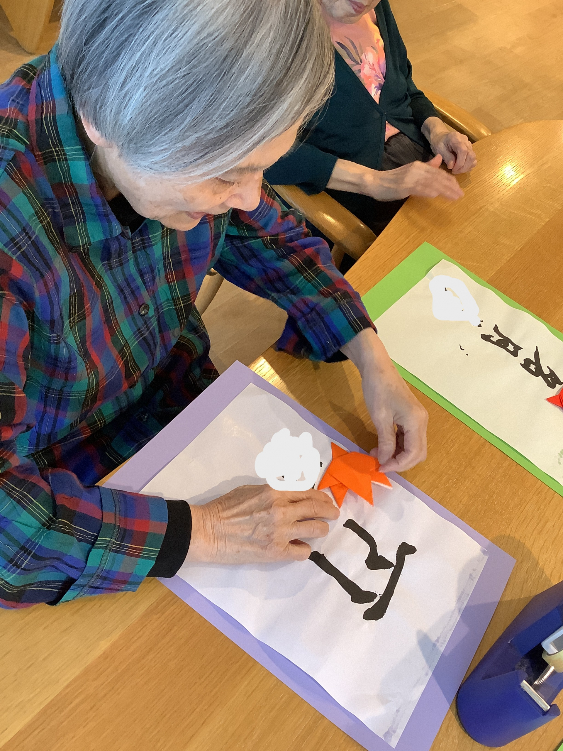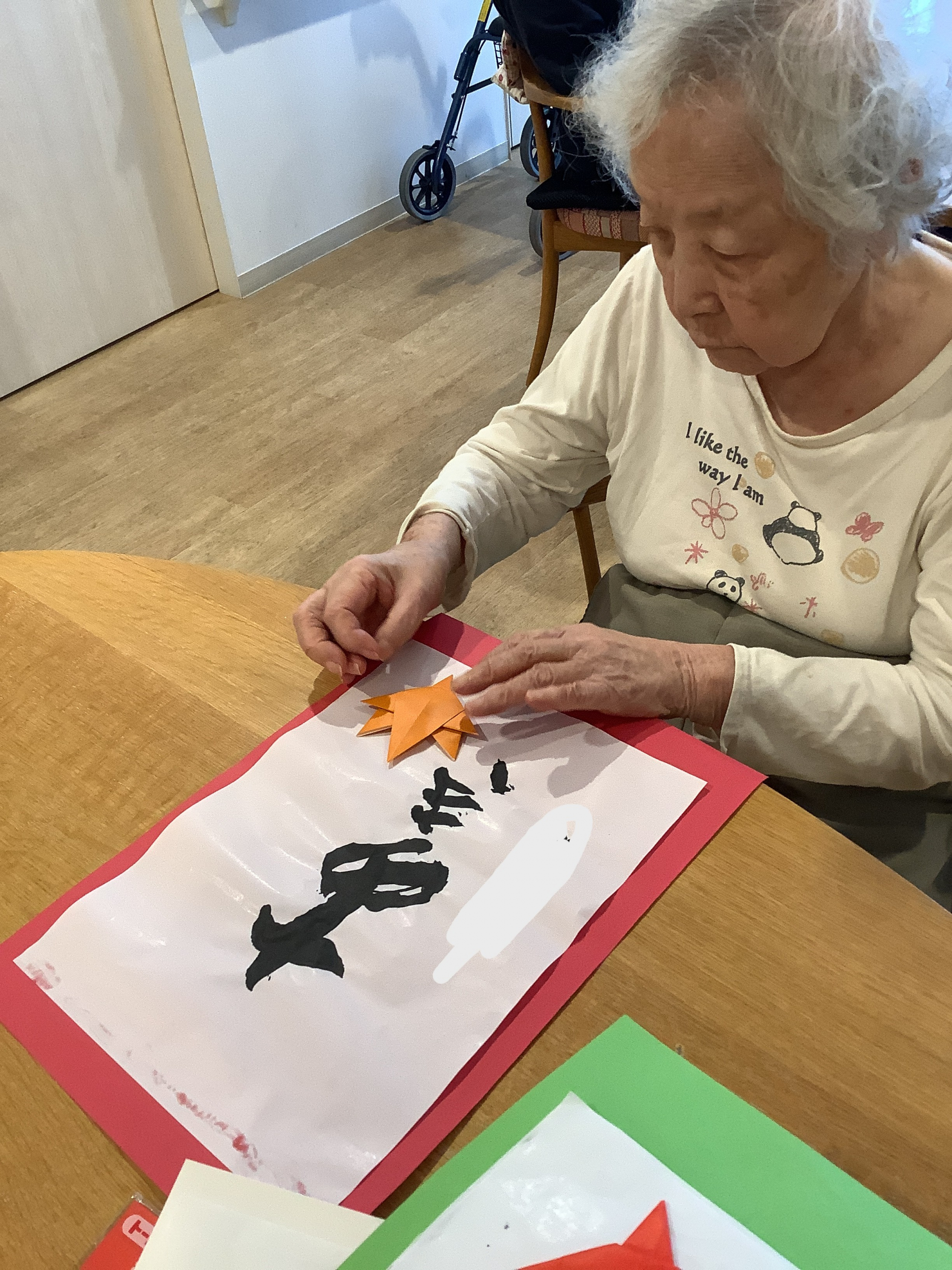 貼り付けたあとは、折り紙でデコレーションを作ります。