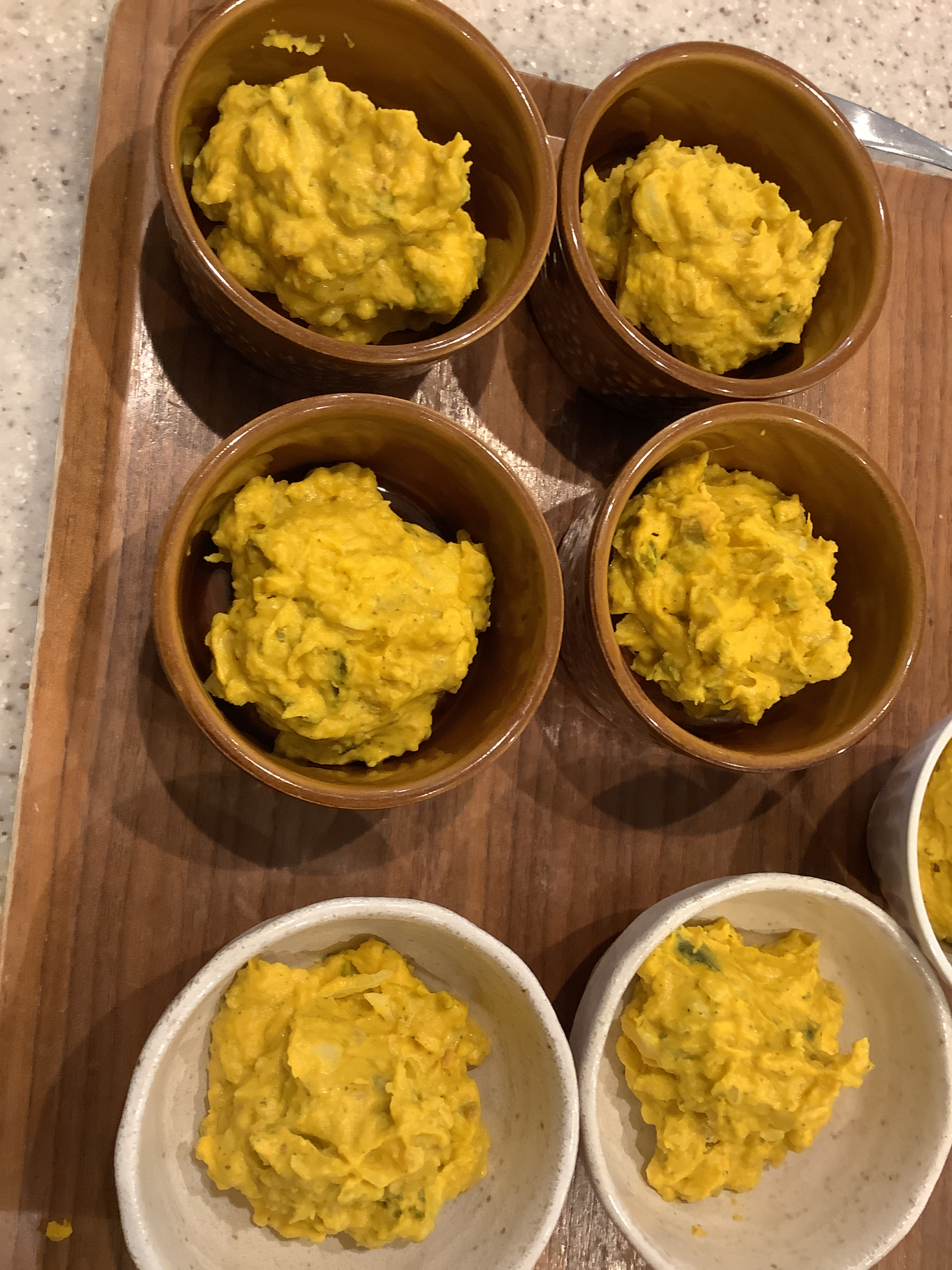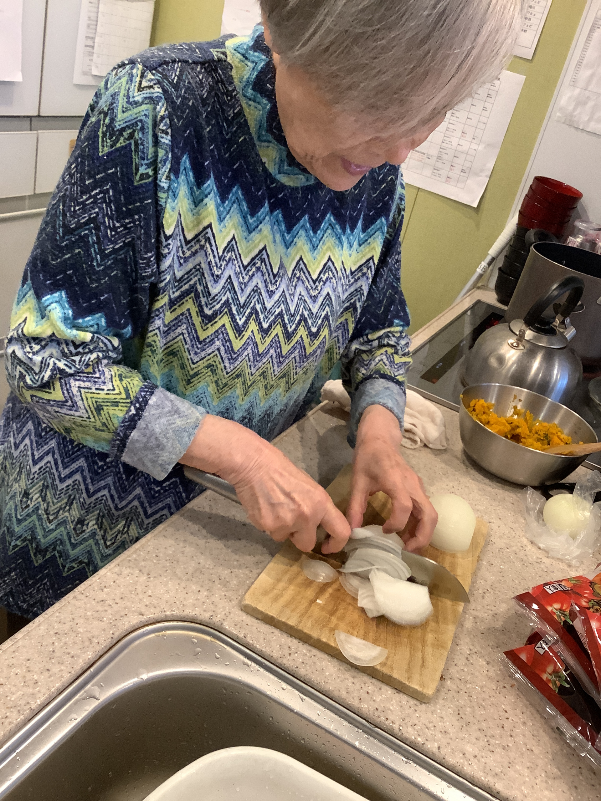 たまねぎをみじん切りにし、カボチャと合わせて…
