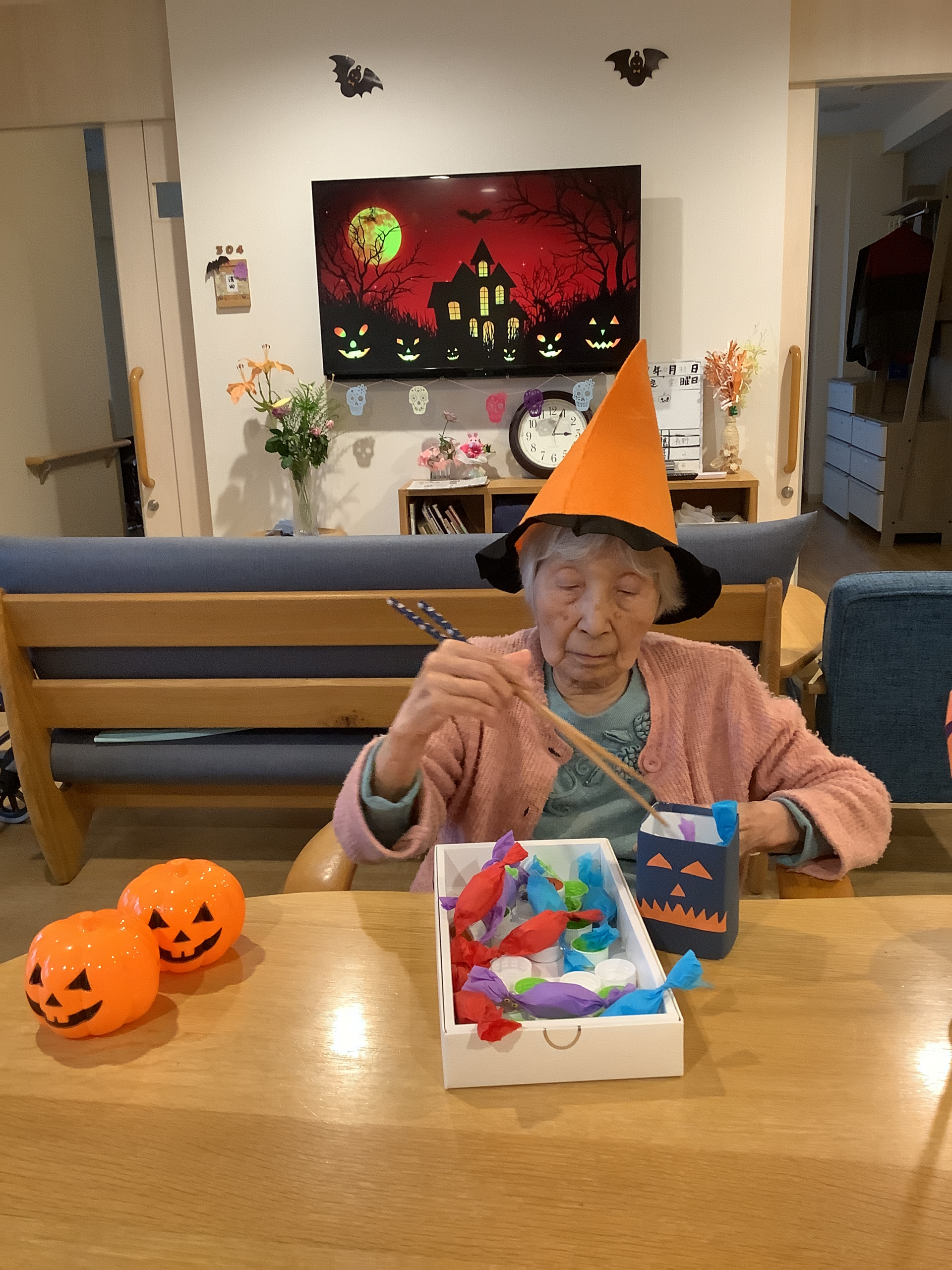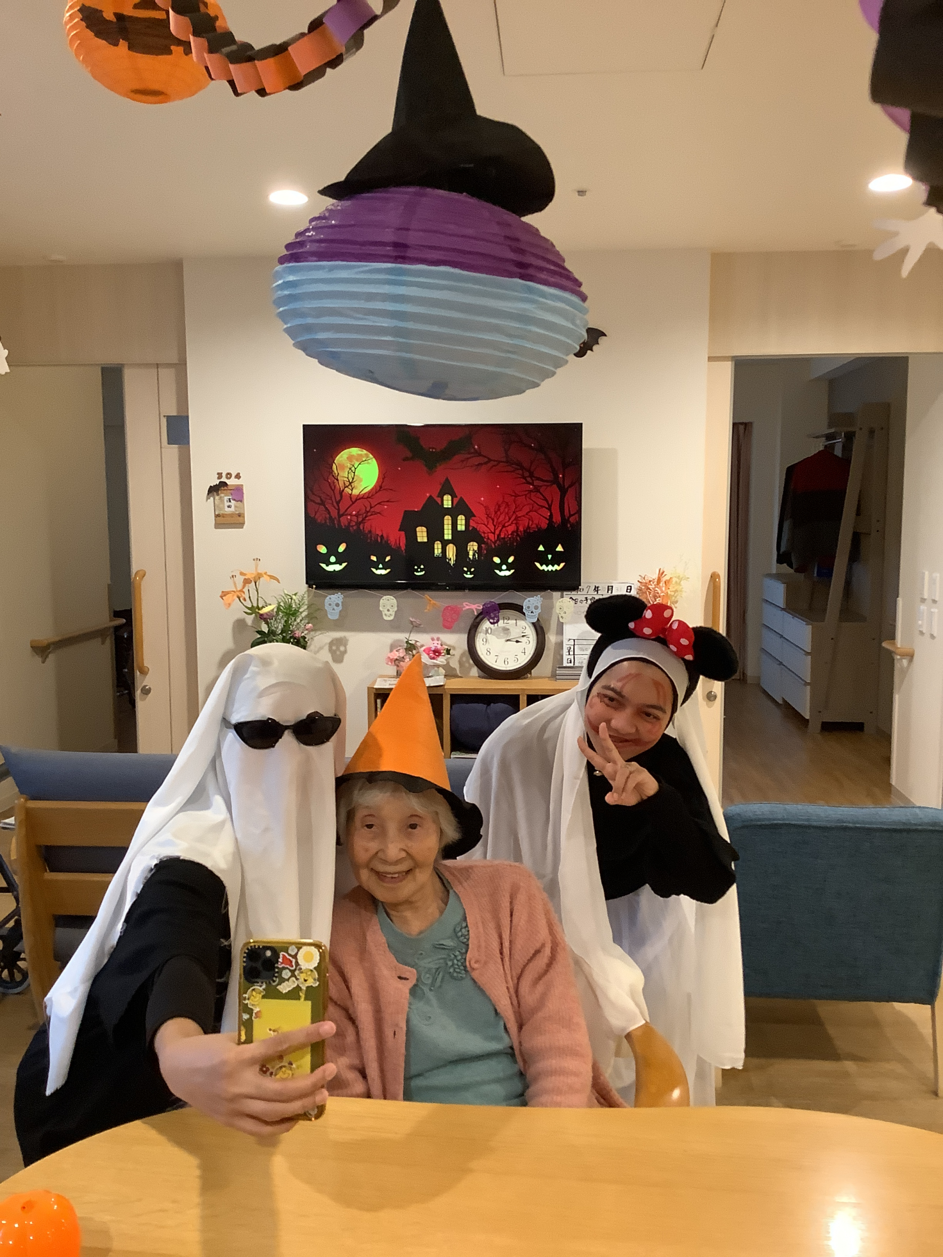 午後からみんなでカボチャマフィンを作り,可愛いお帽子をかぶってゲームをしたり写真もいっぱい撮りました。