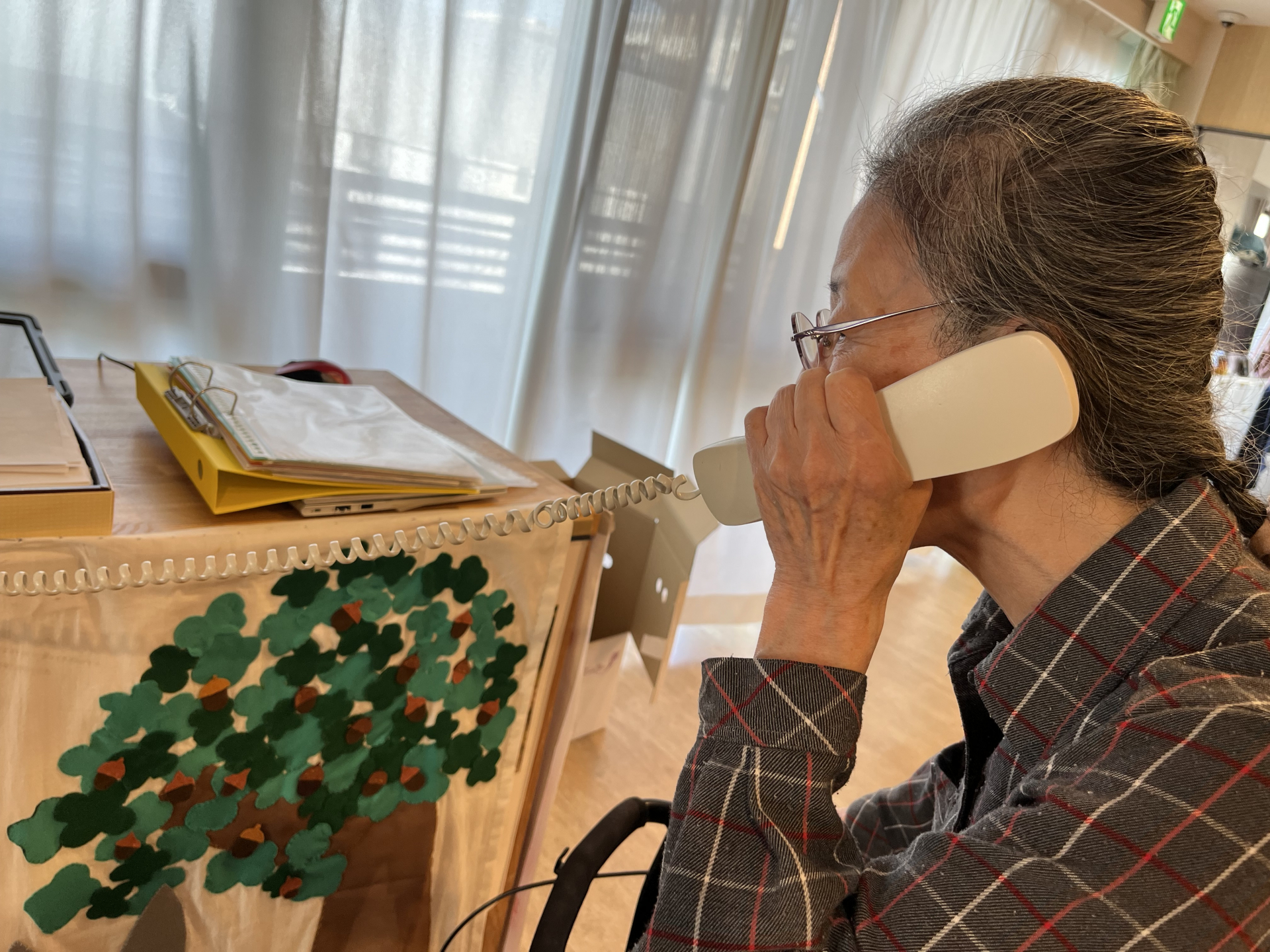 ご家族様にお花のお礼の電話中のN様