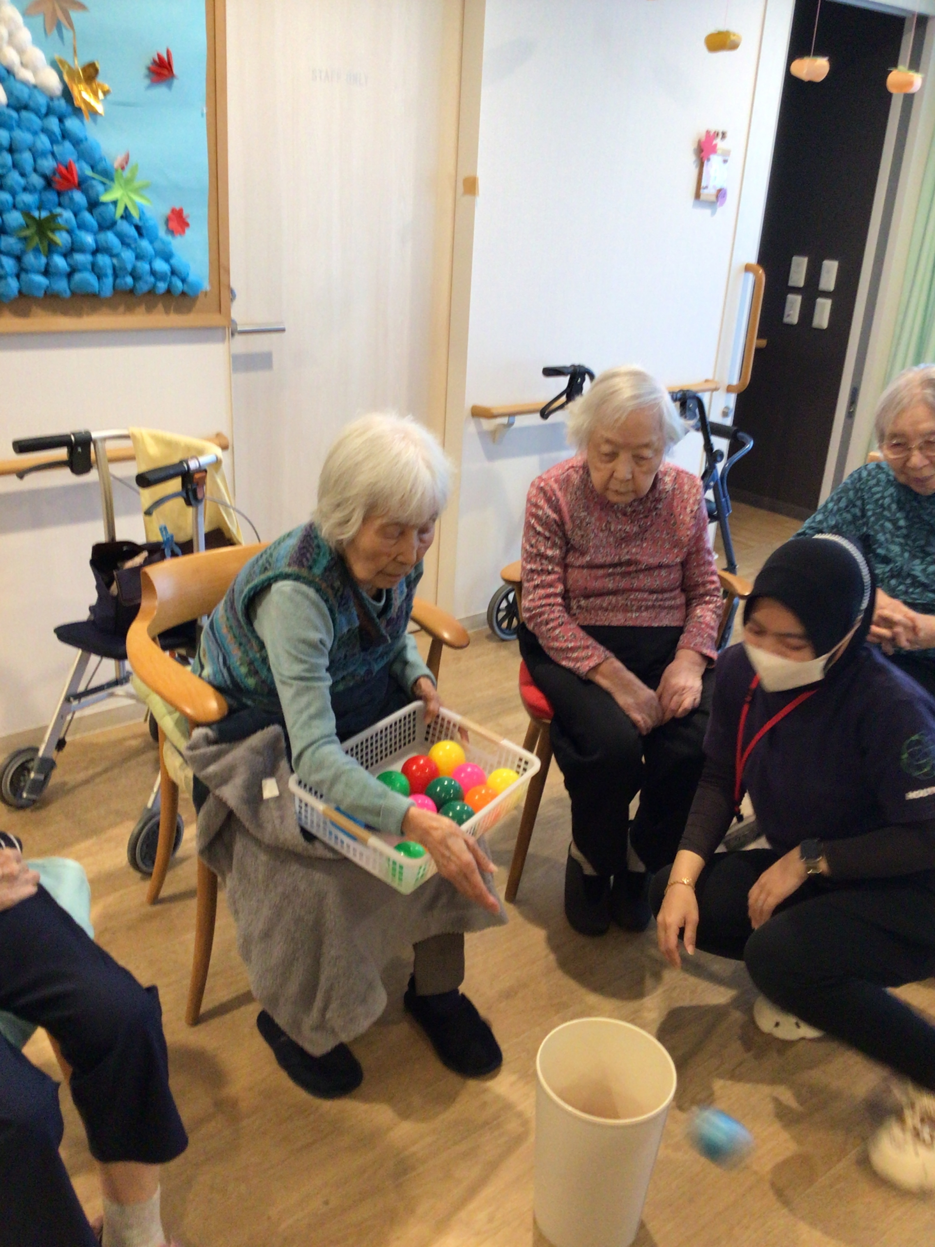 玉入れゲームをやったら手の運動になりましたト聞こえました。