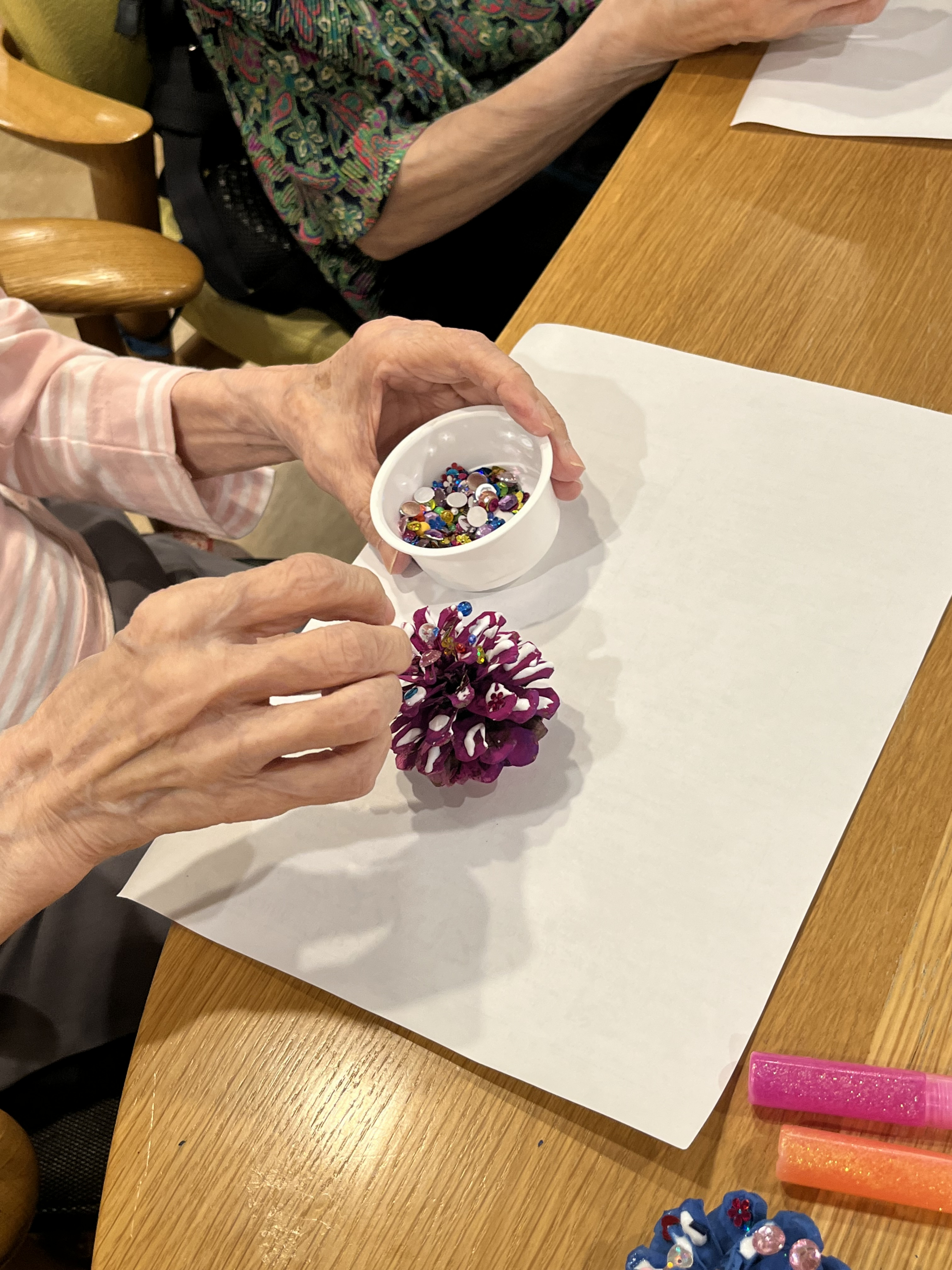 K様もボンドをつけた後は飾り付けに取り掛かります!