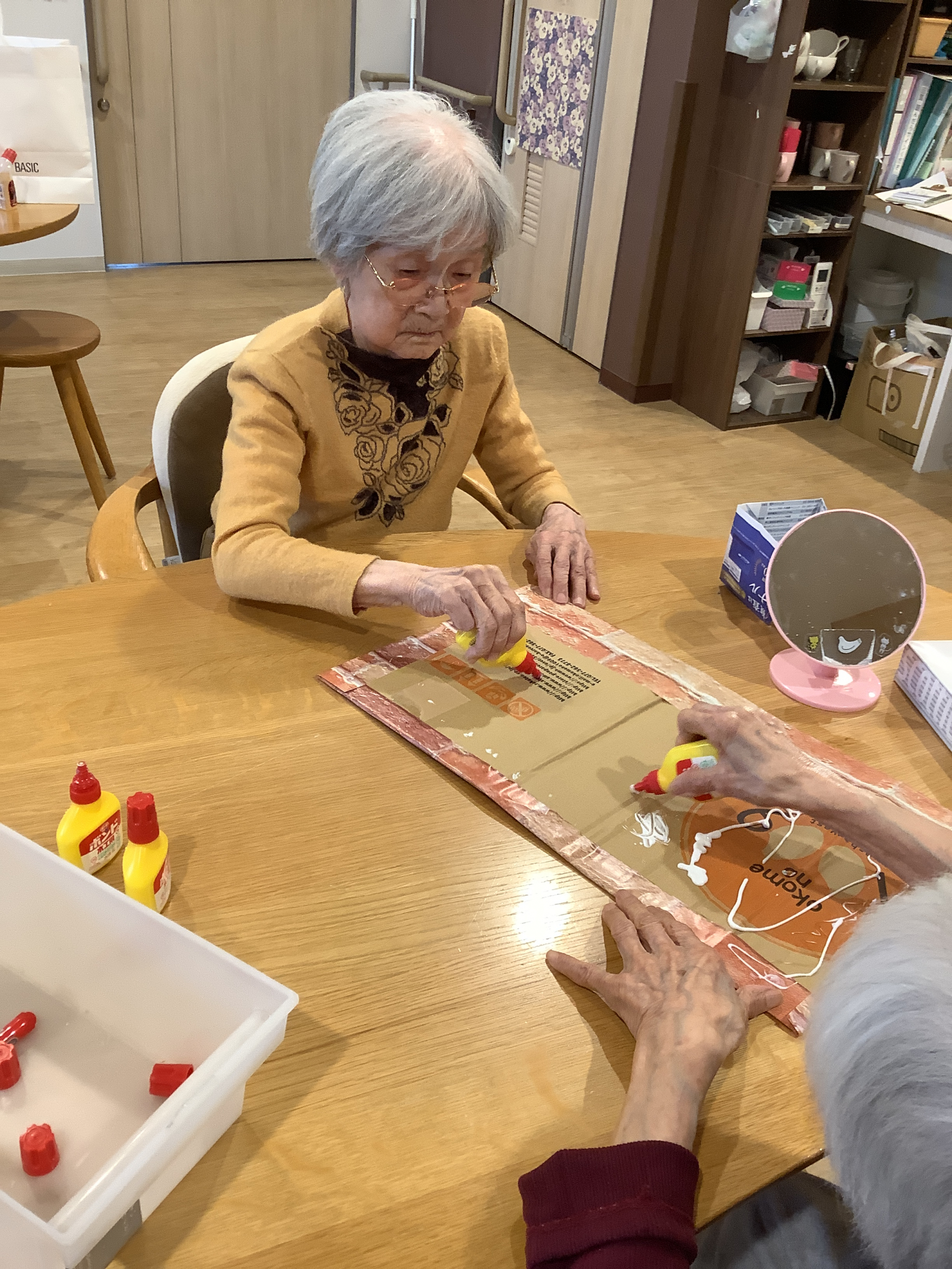 M様とK様は段ボールを使ってレンガ制作中~