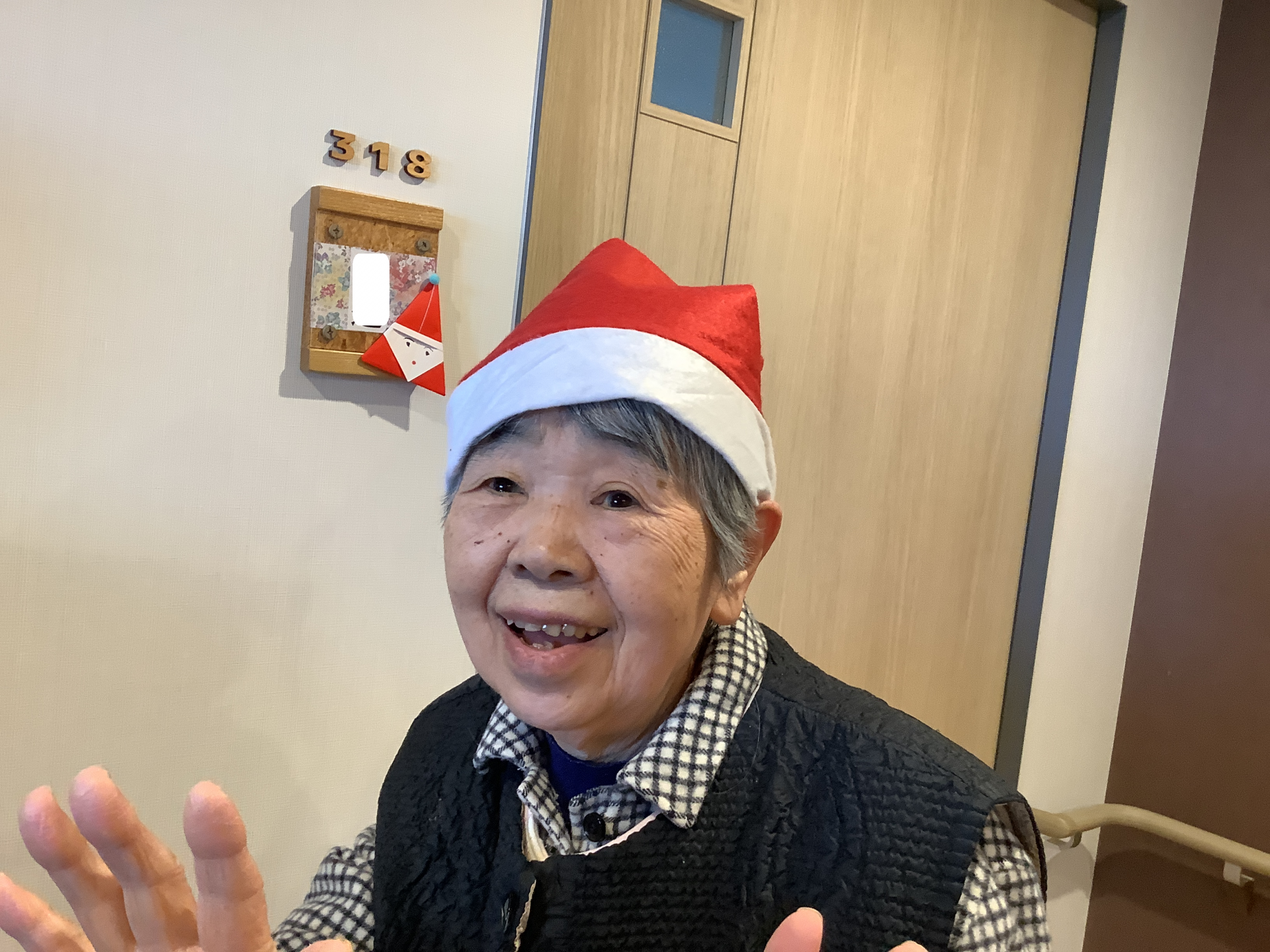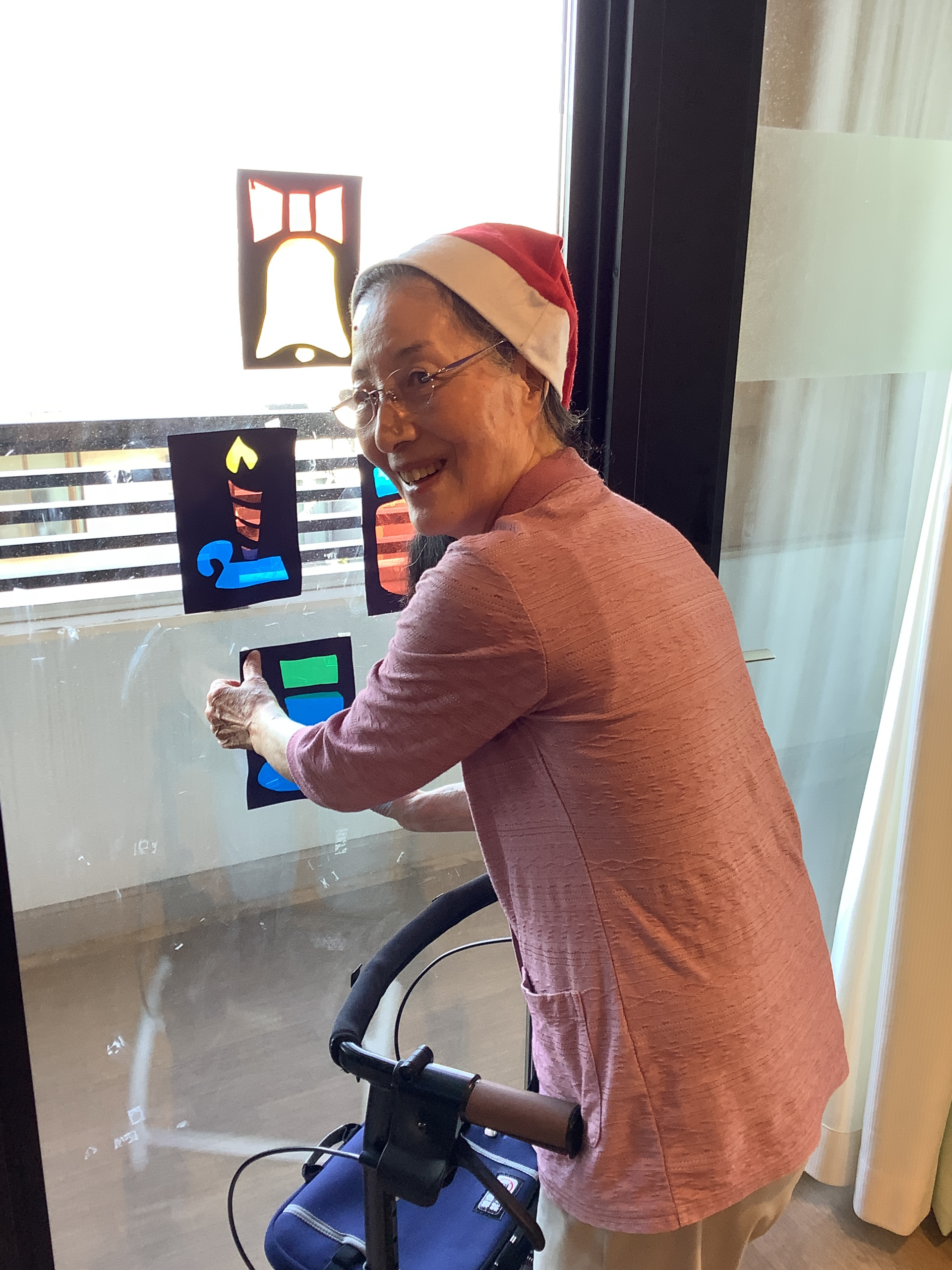 前回折り紙で折ったサンタクロースを飾ります(^^♪