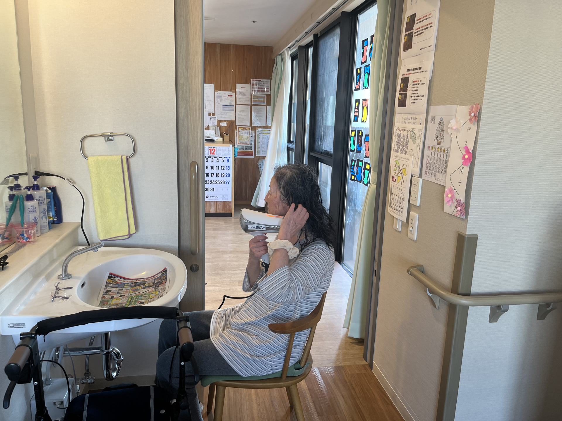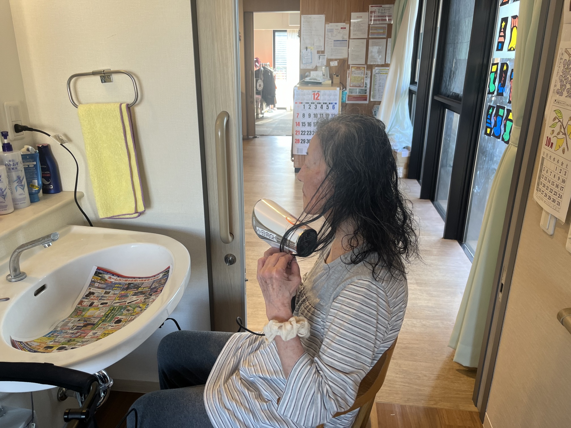 入浴は居室でご自身でドライヤーで髪を乾かすN様。。