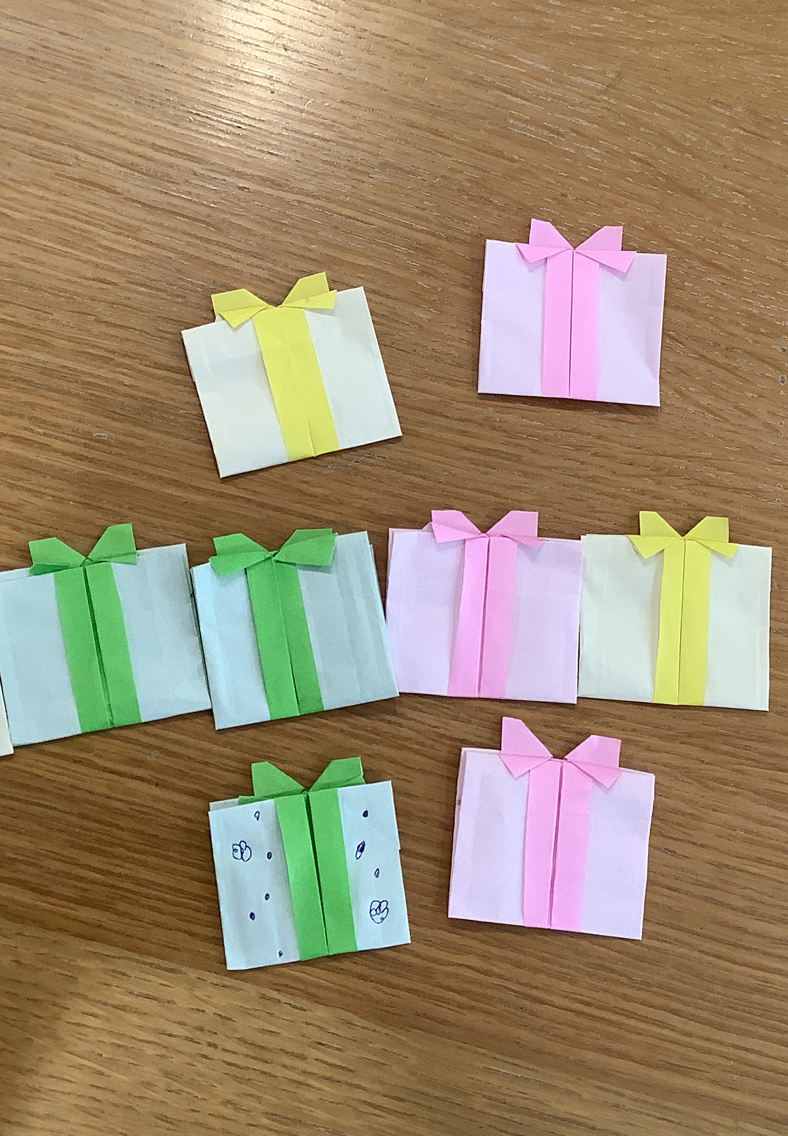 本日はレクリエーションの時間に、みんなで”プレゼント”のおりがみを作りました!