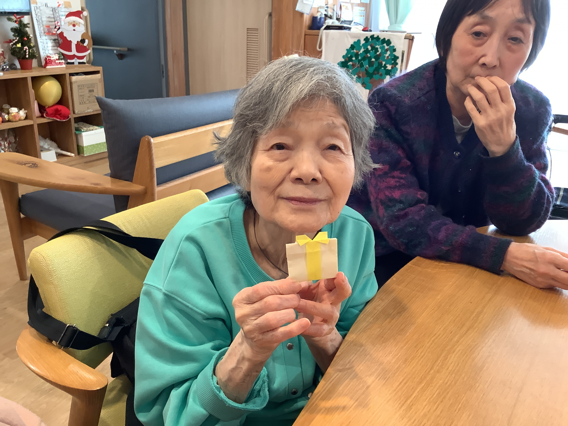本日はレクリエーションの時間に、みんなで”プレゼント”のおりがみを作りました!