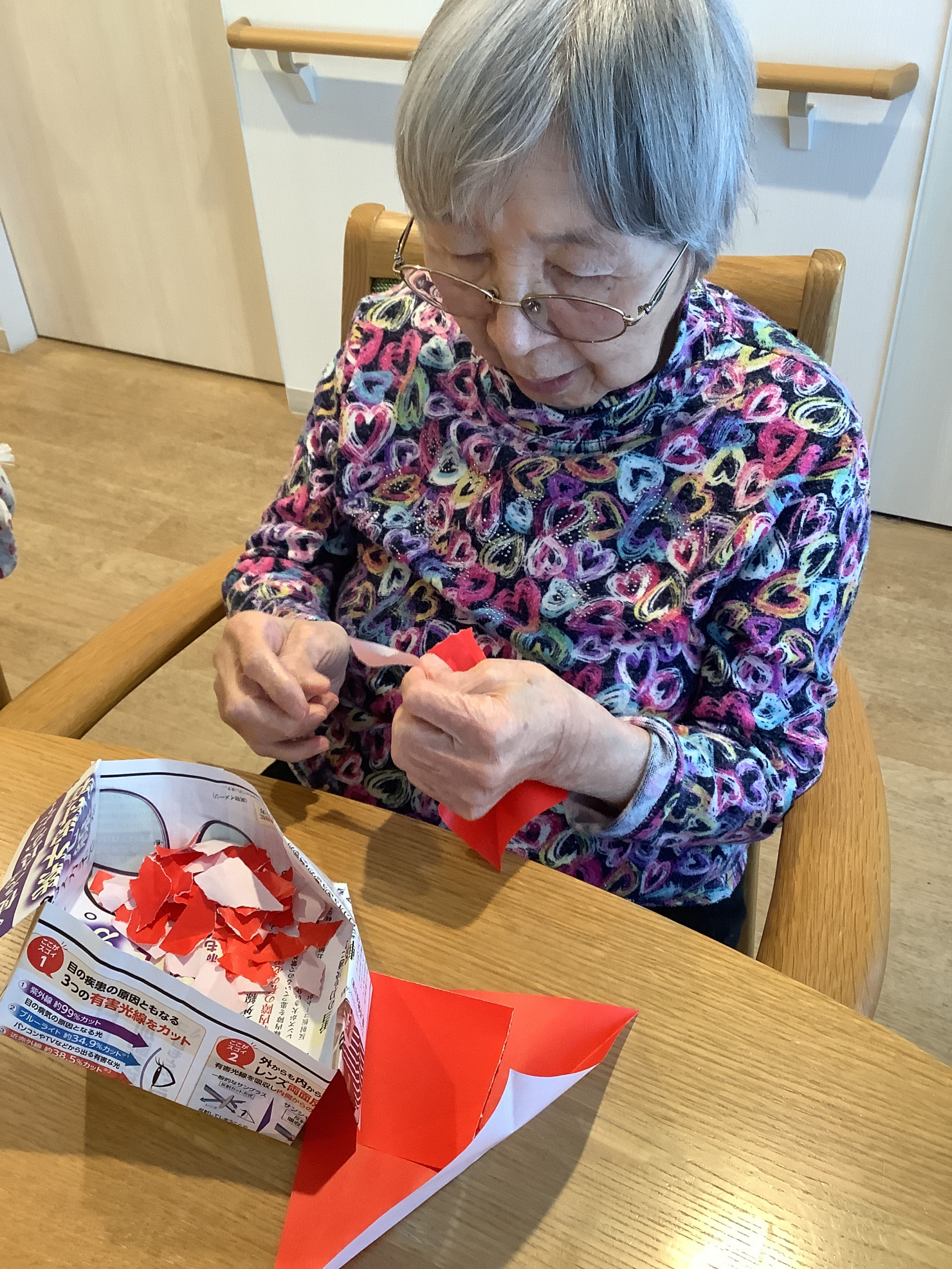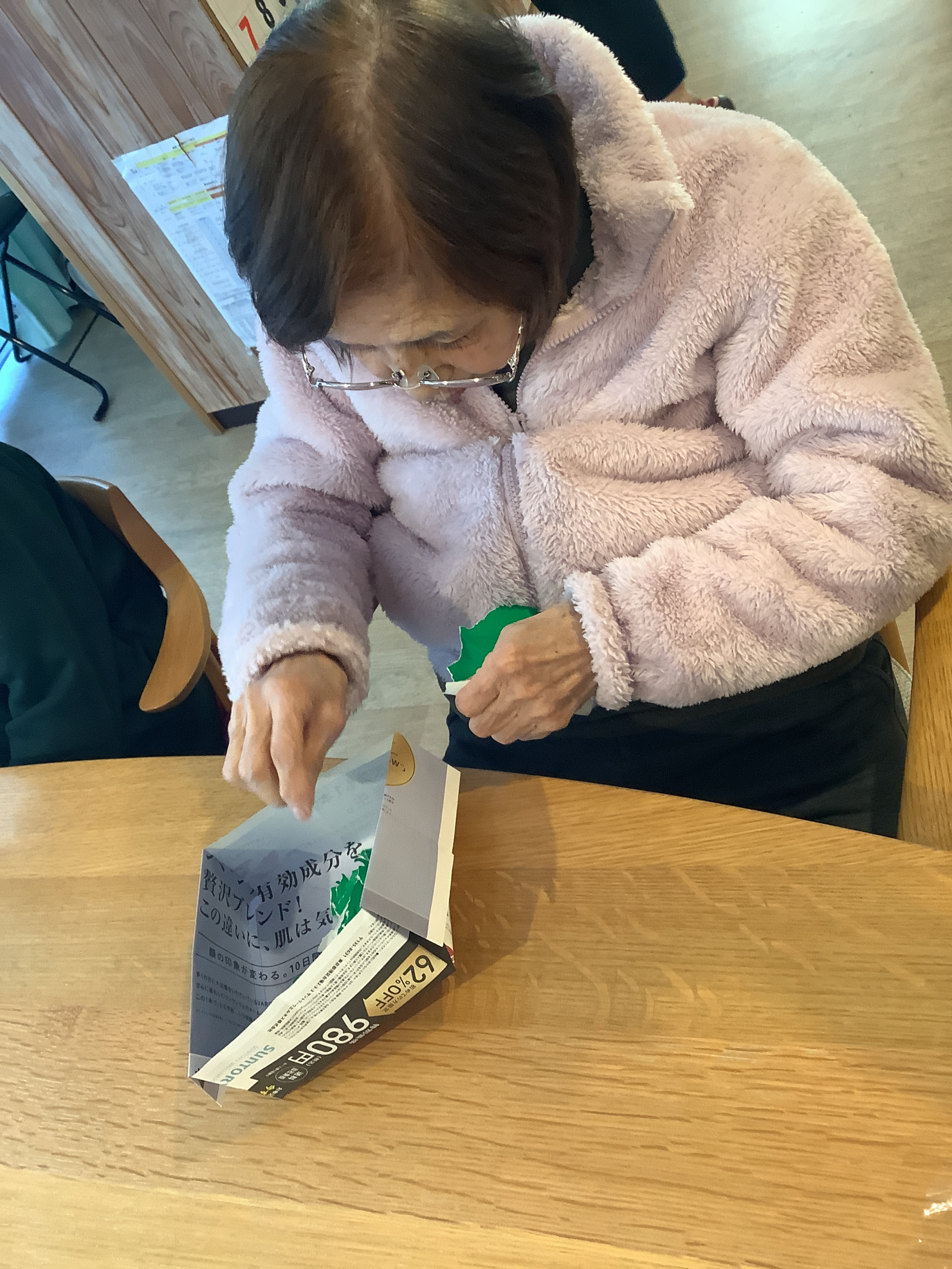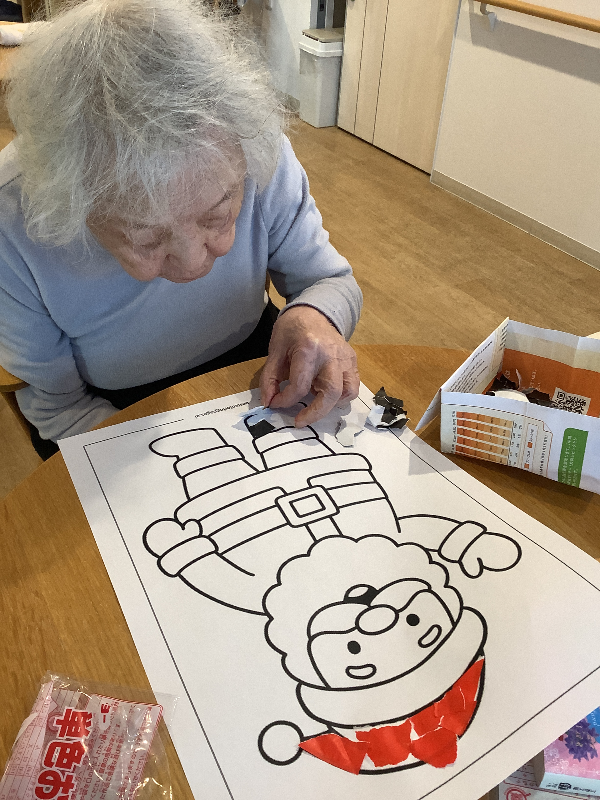 本日,折り紙を小さくちぎって,サンタクロース絵貼り付けました!