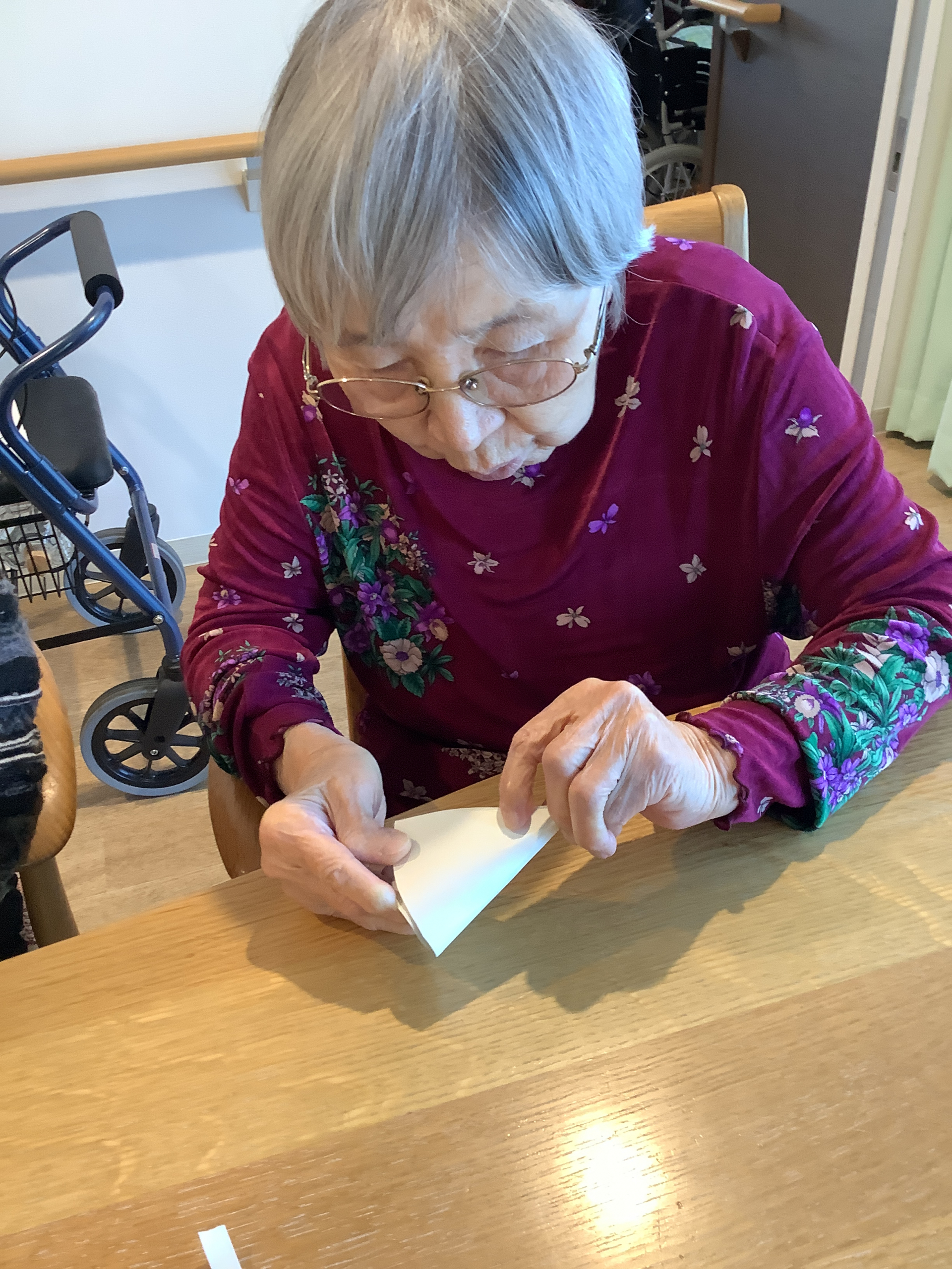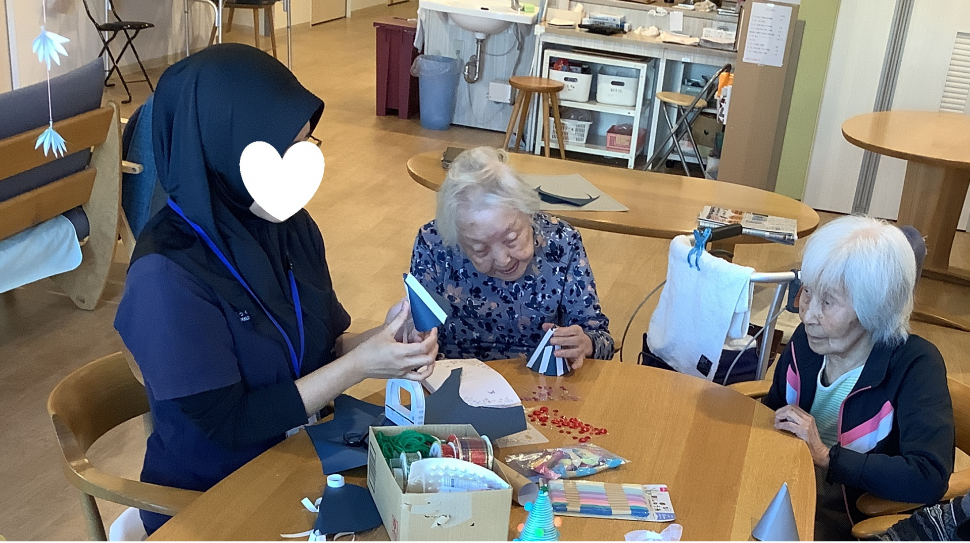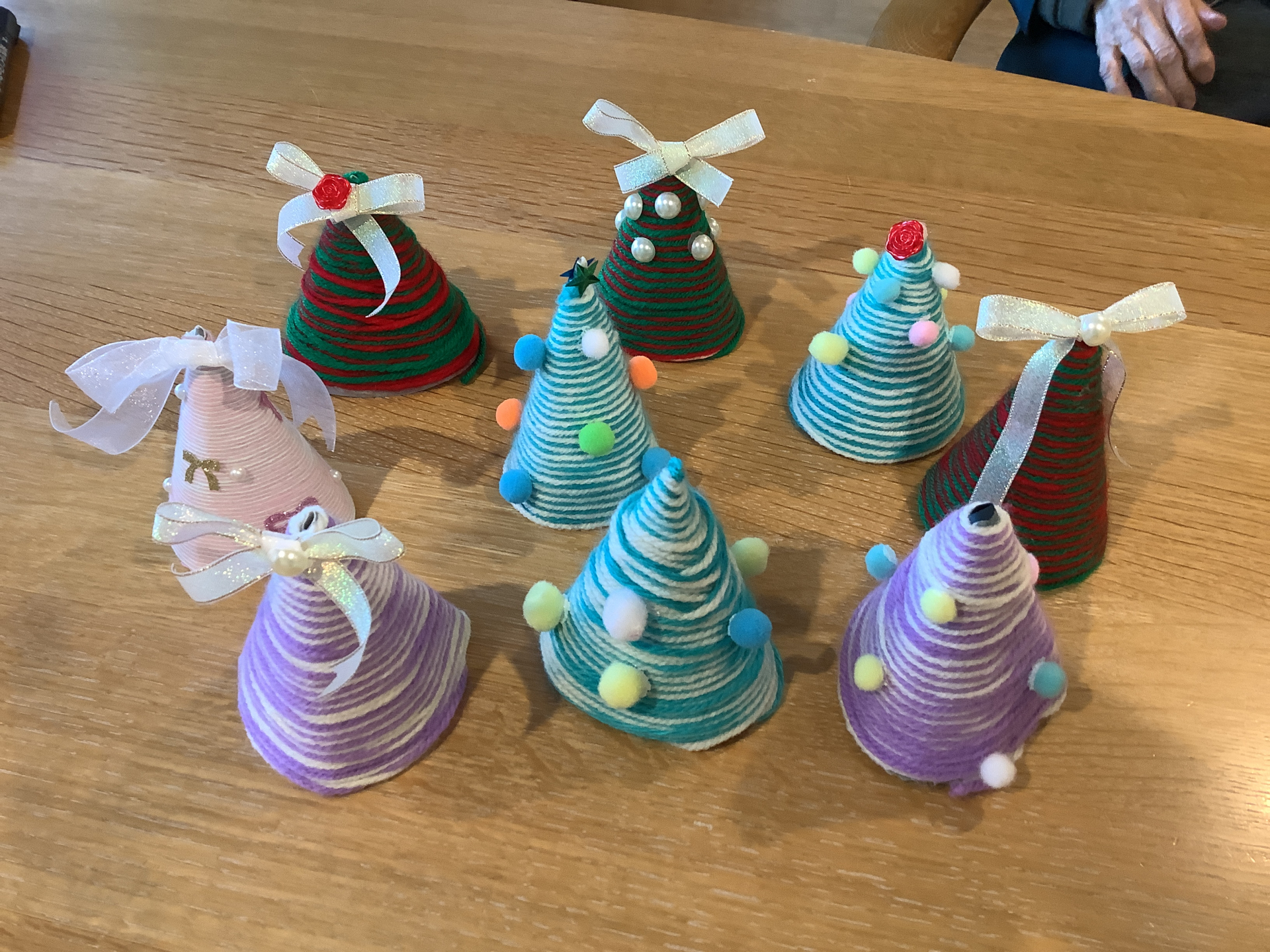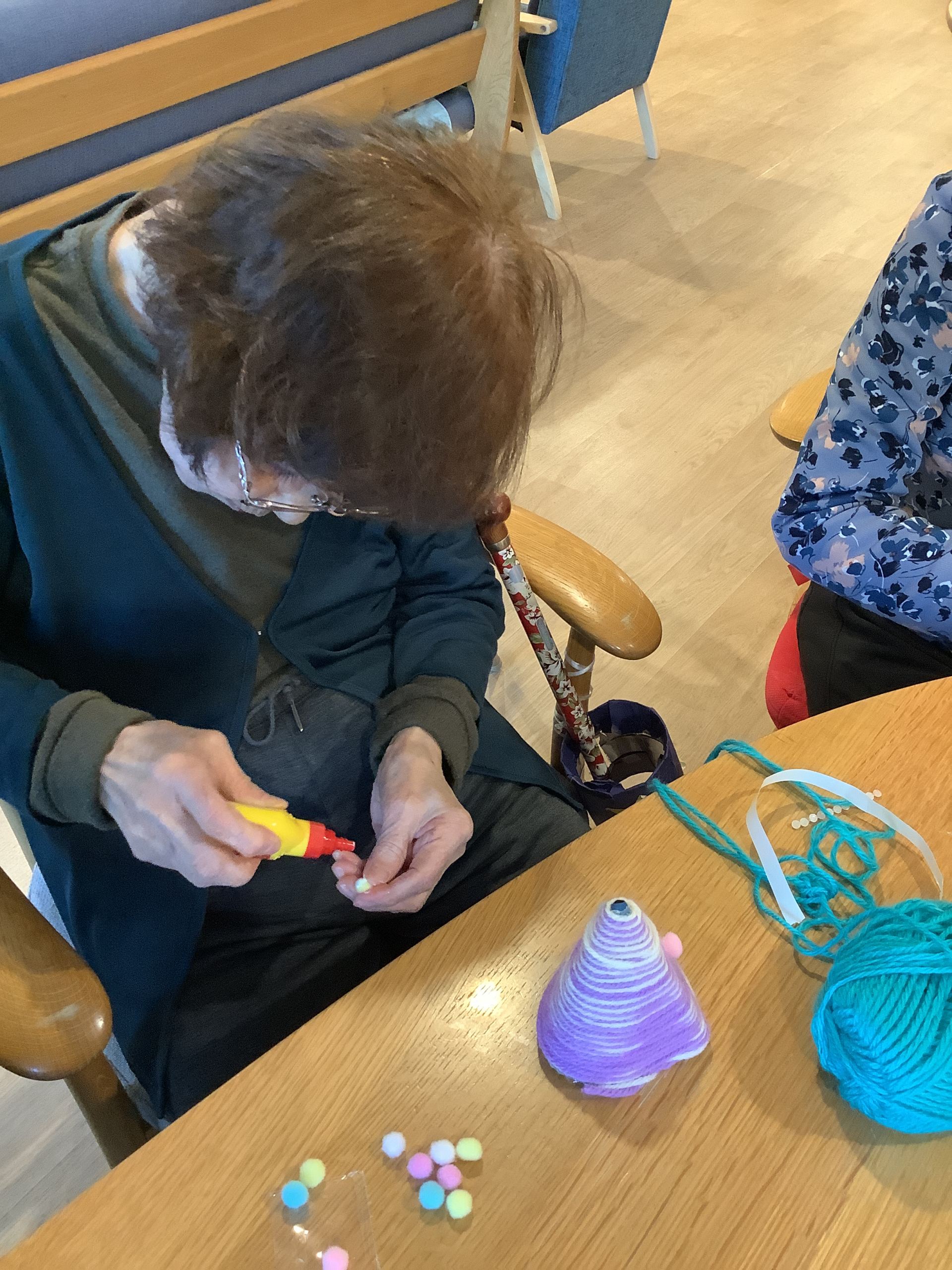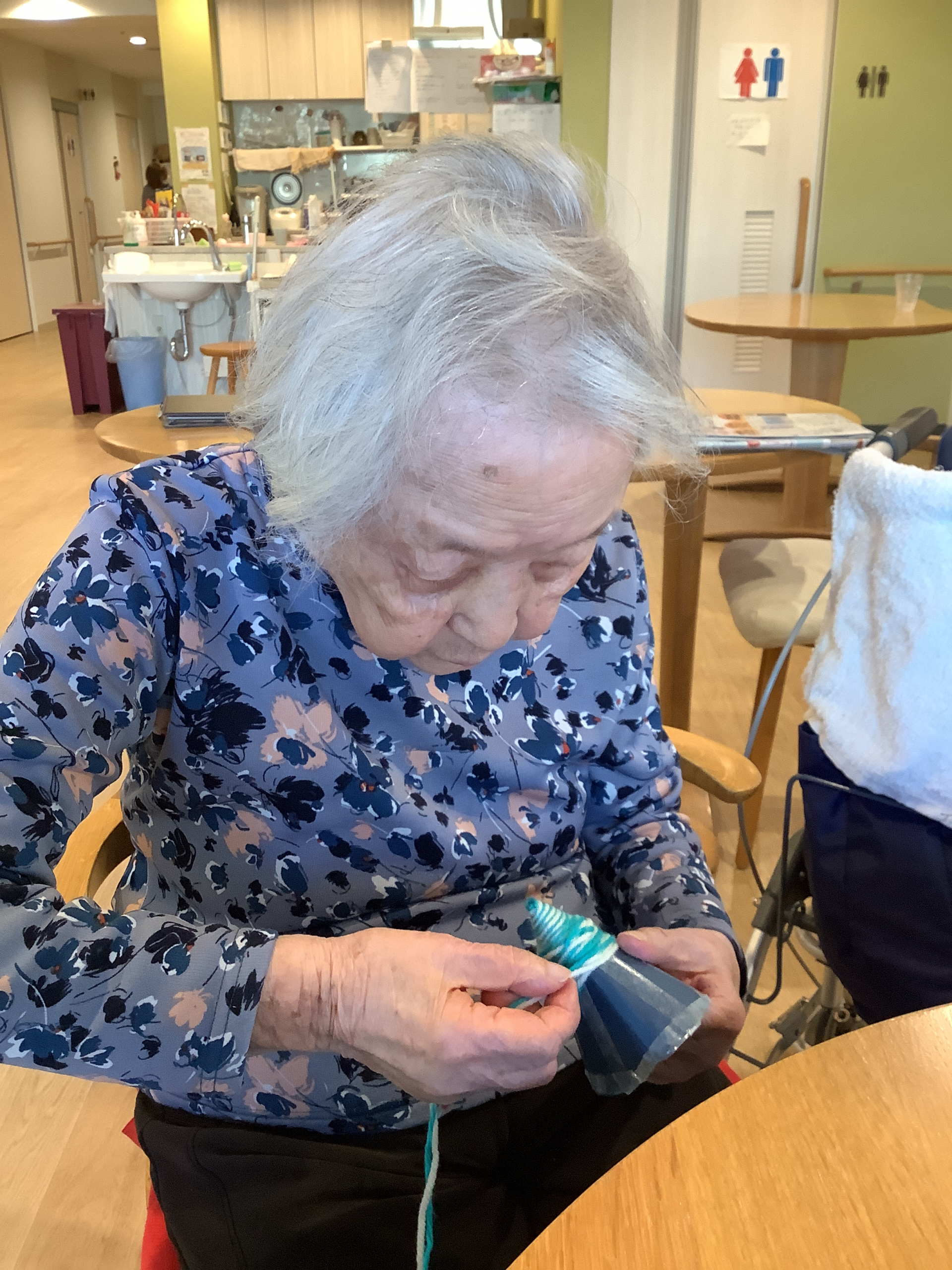 本日のレクリエーションは,毛糸を使ってミニクリスマスツリーを作りました!