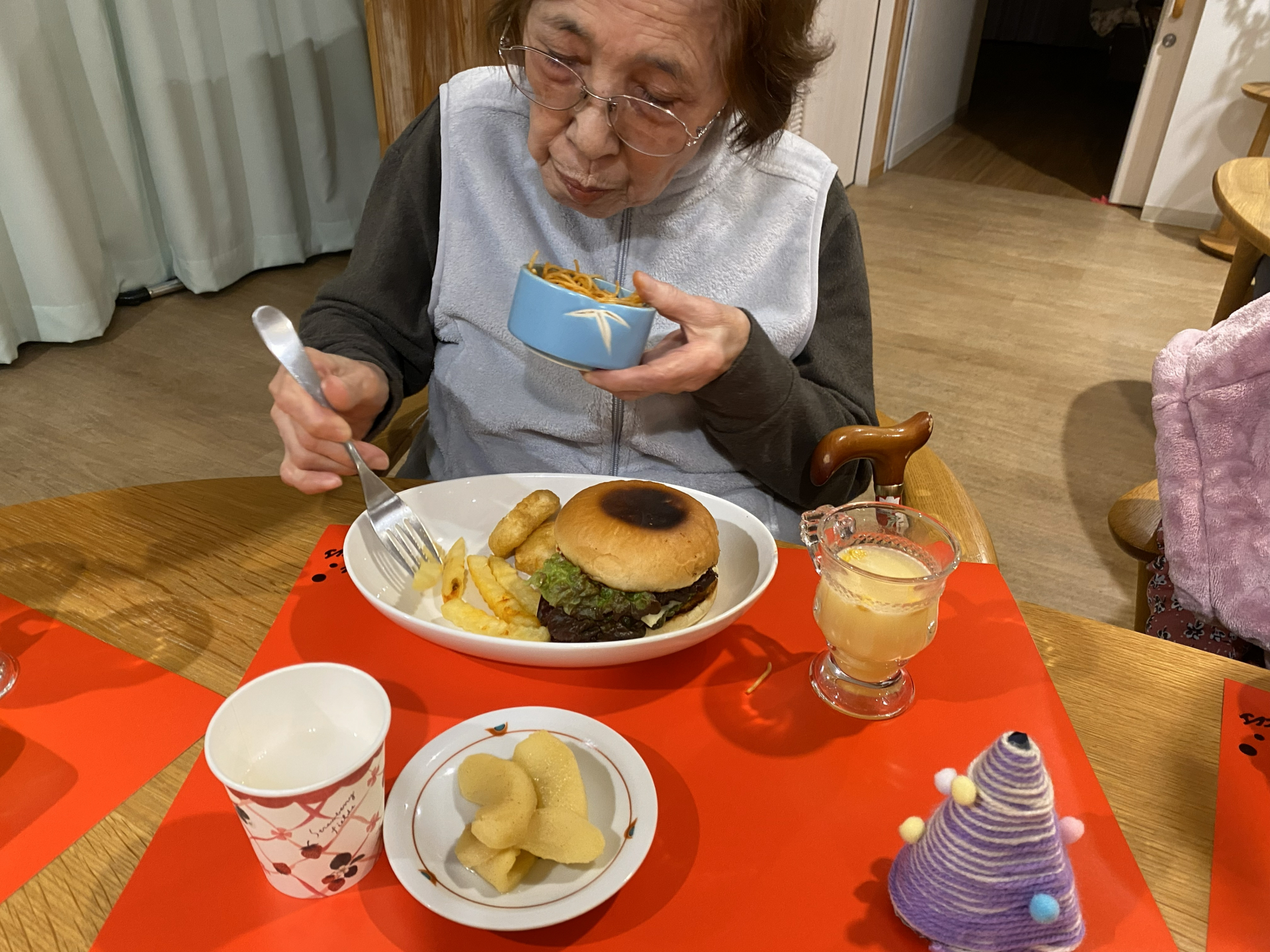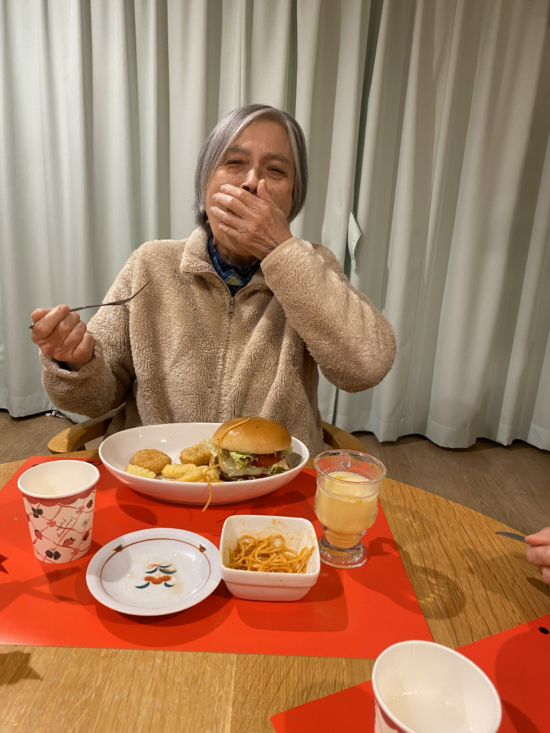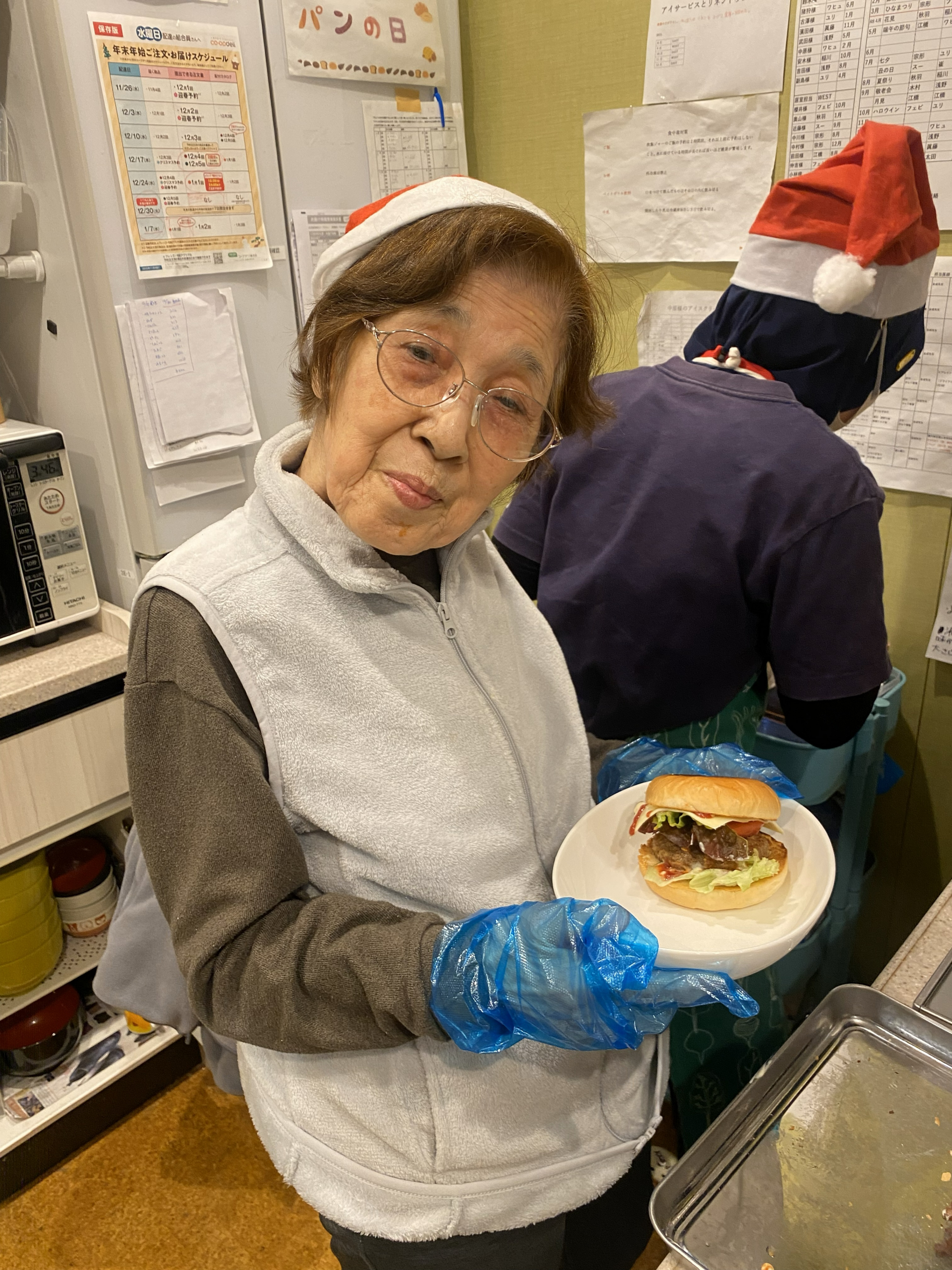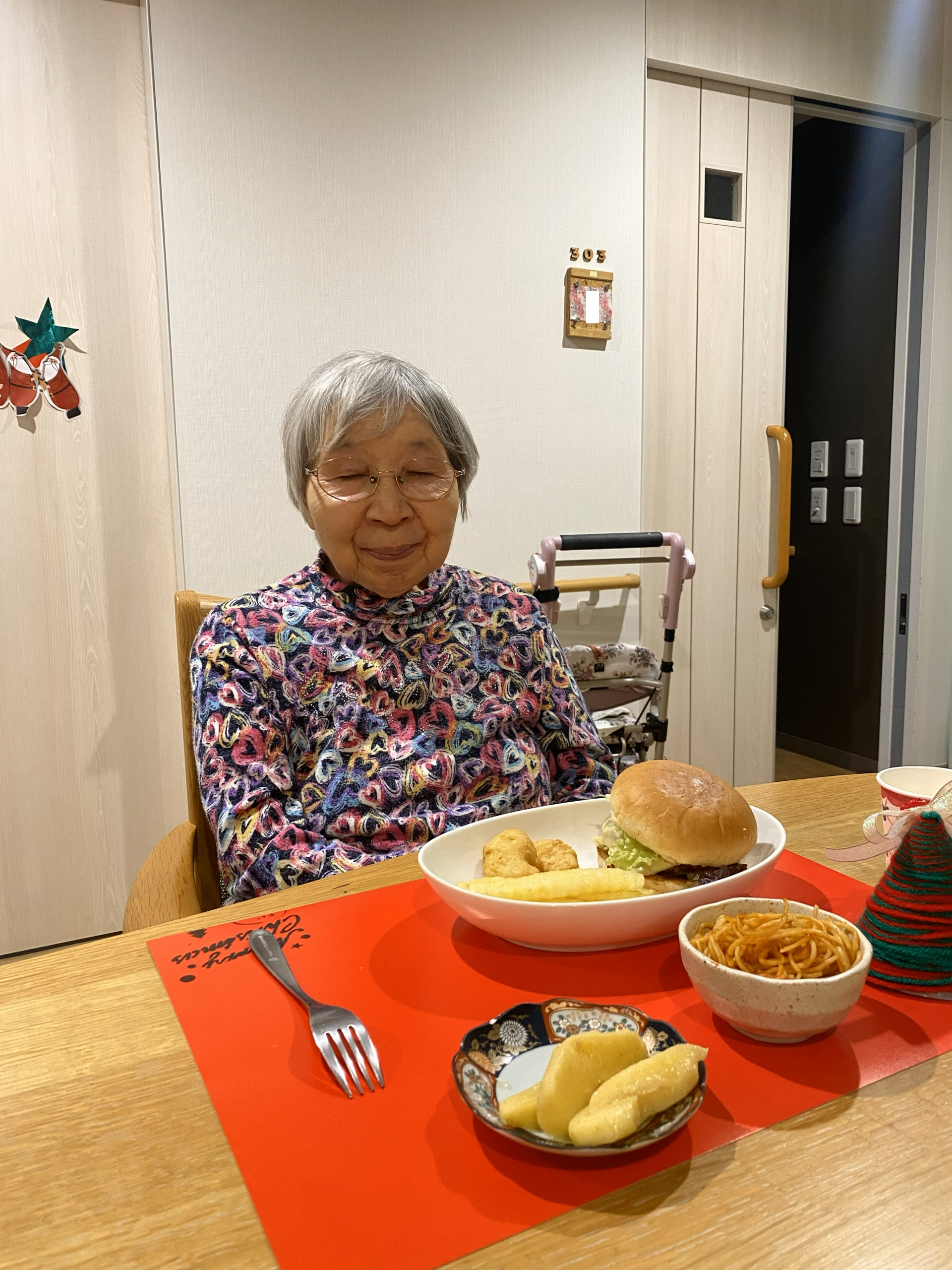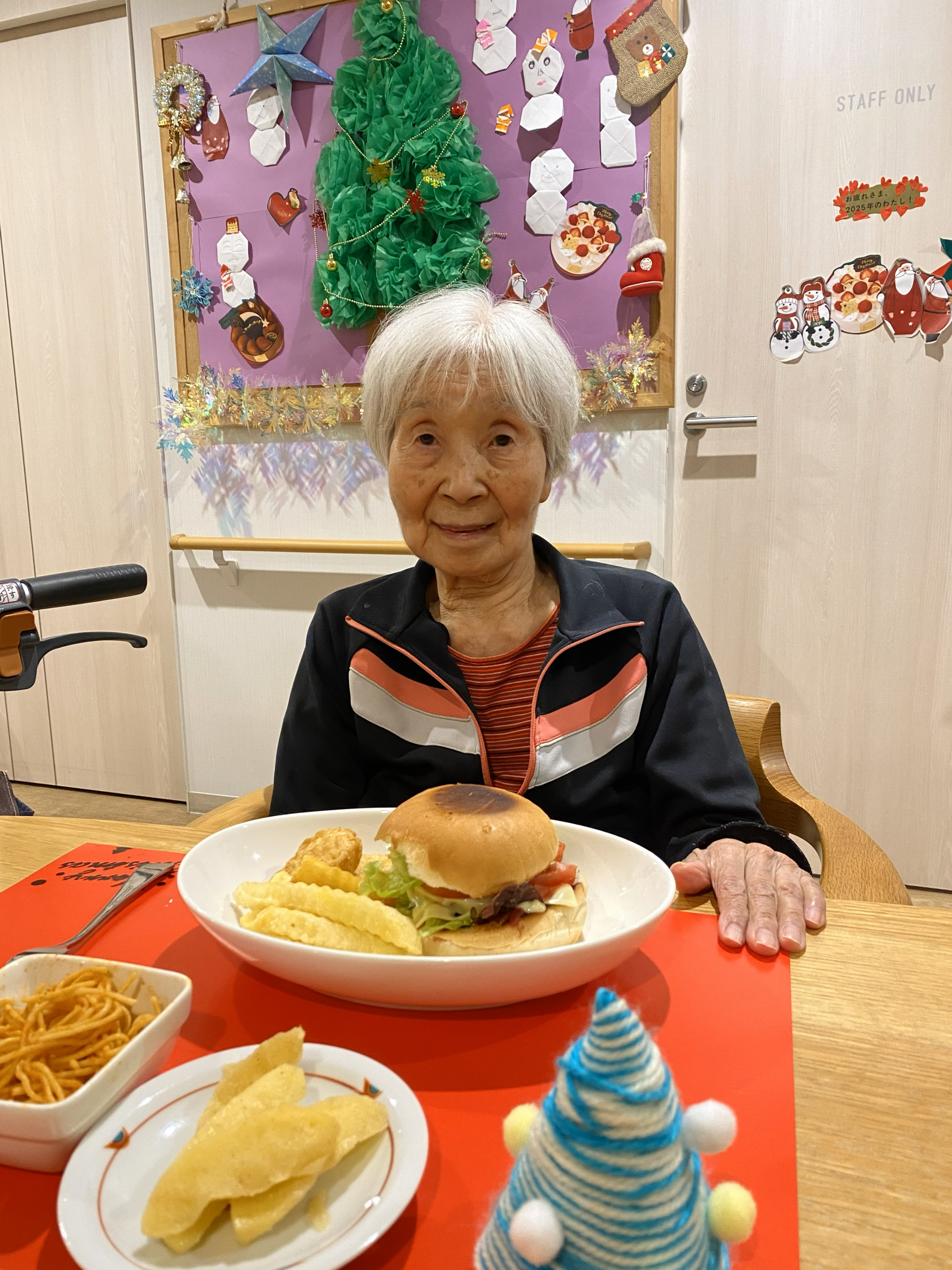ハンバーガーが完成すると、みなさんでテーブルを囲み、クリスマスパーティーを楽しみました。