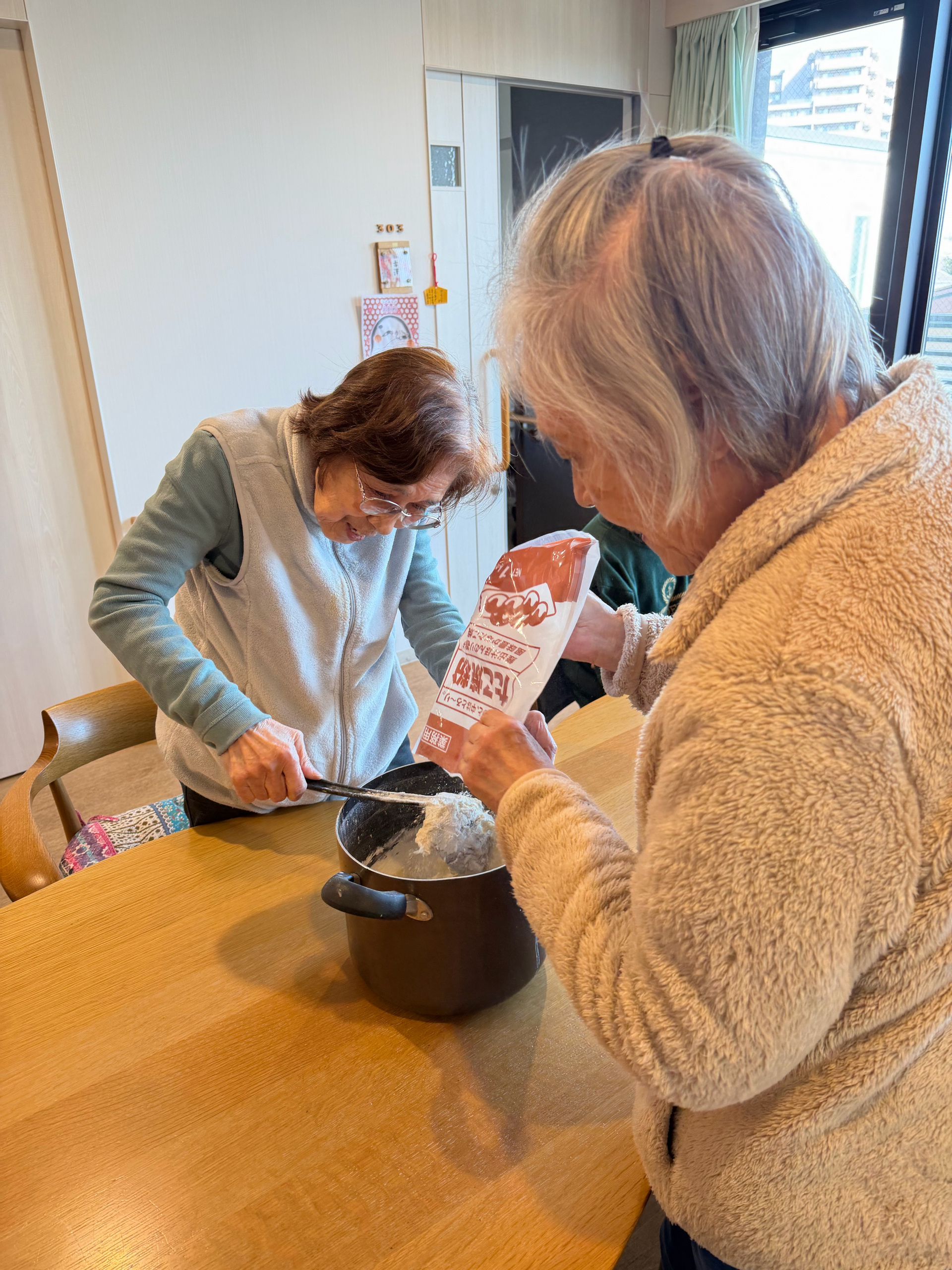 みんなで協力して生地作り!✊
