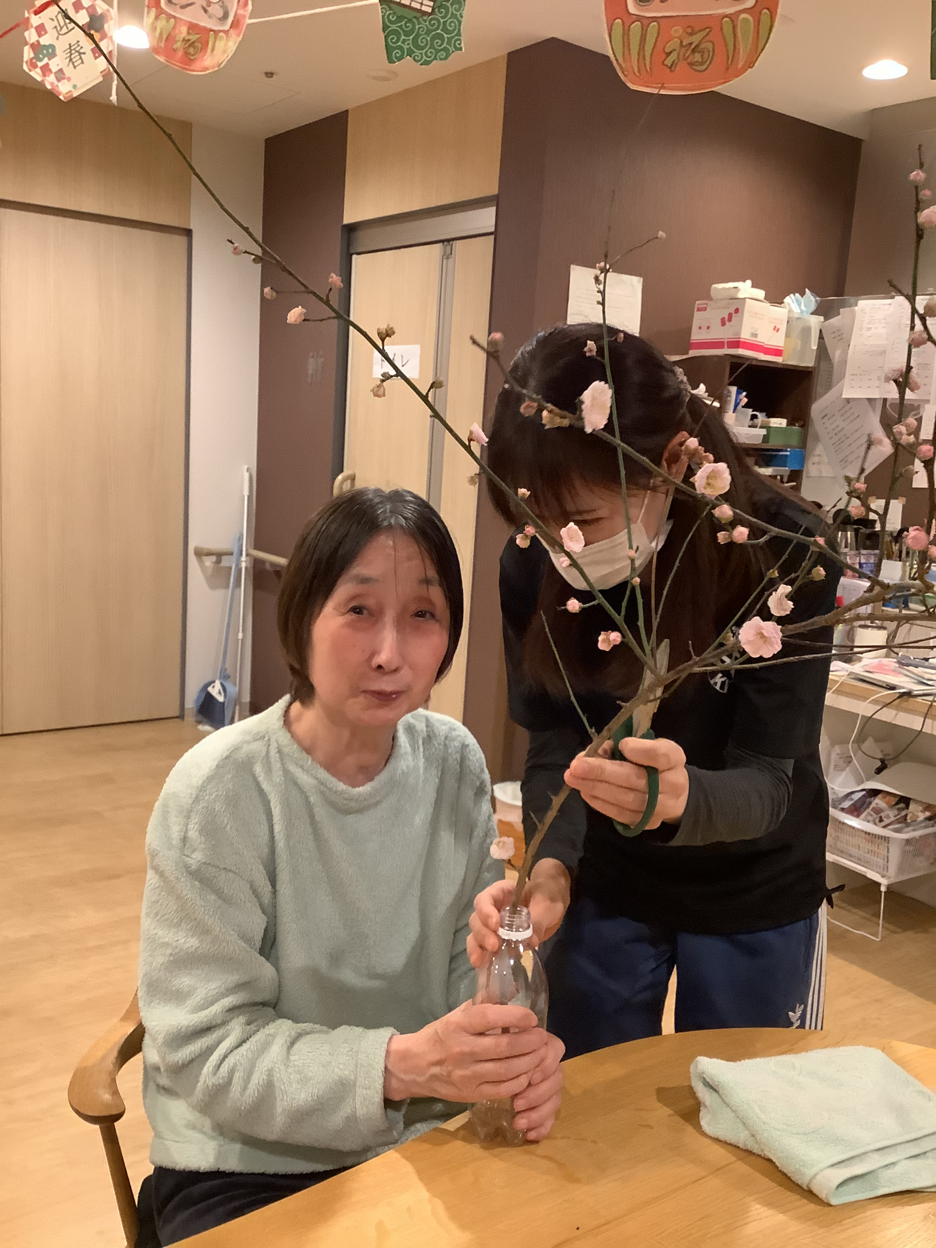 散歩のお土産に「桃の木の枝」を頂きました♬