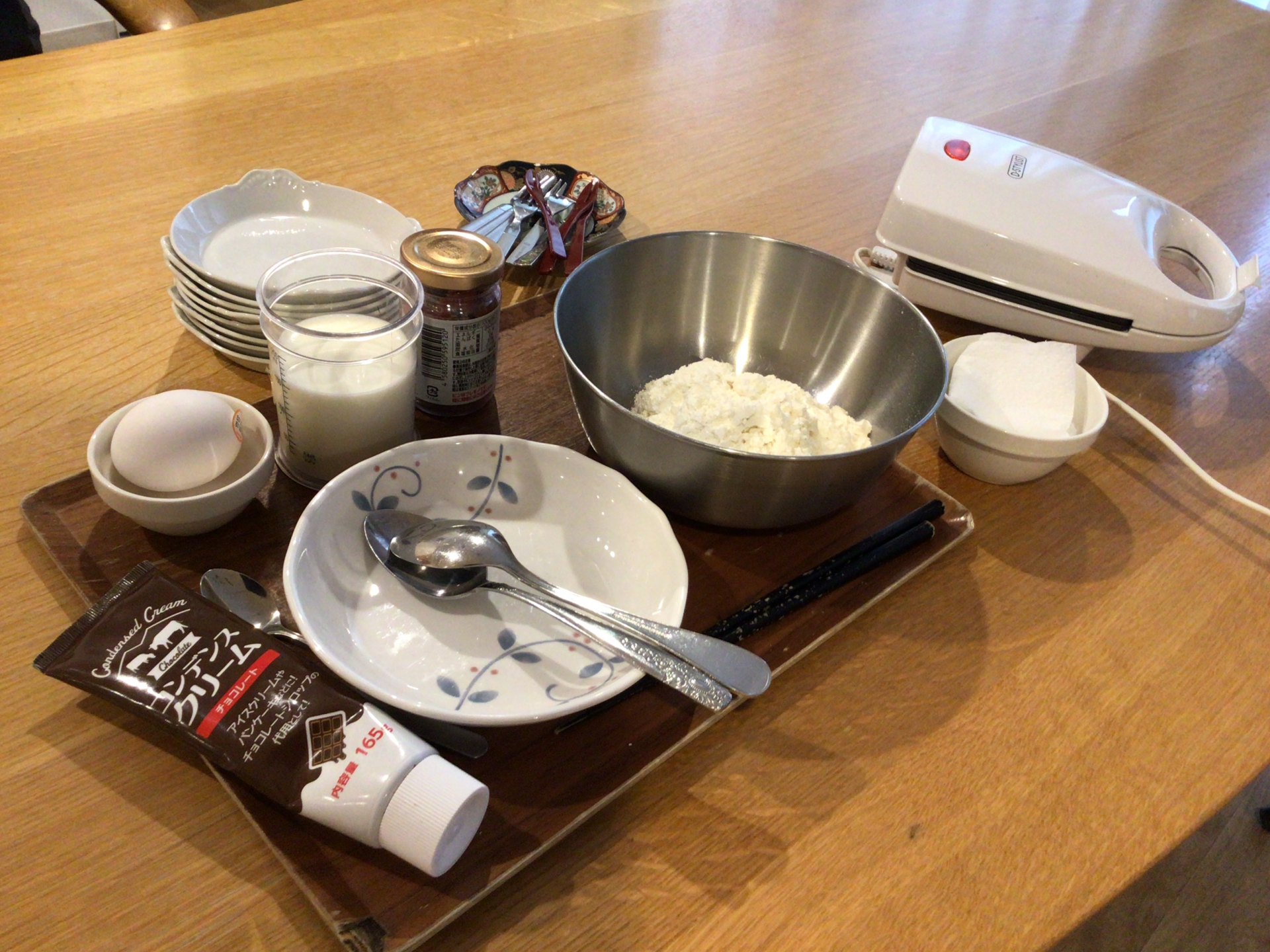 皆様,生地作りは積極的に行ってくれるのですが,生地を焼き機に流し入れるのには消極的…笑