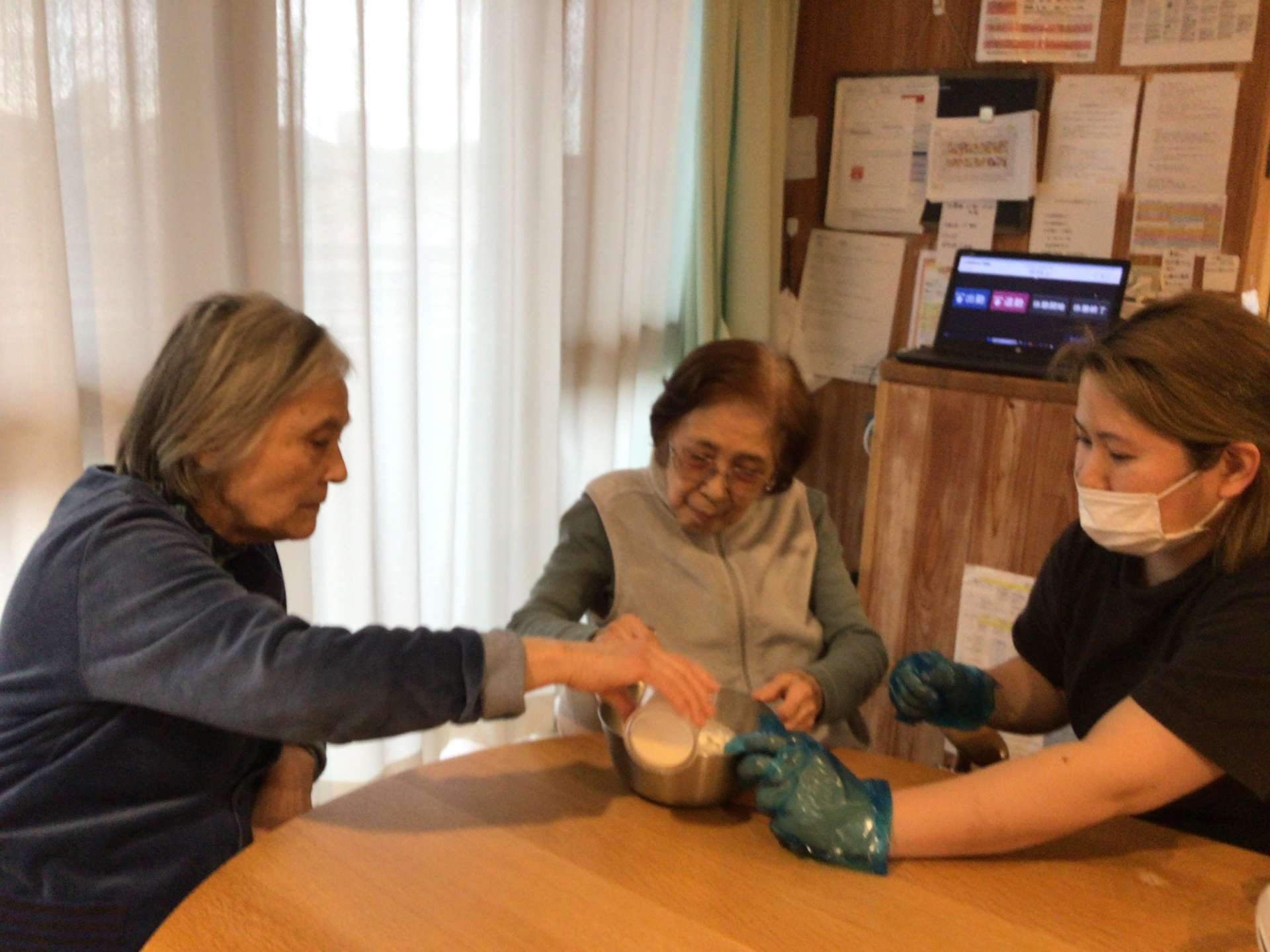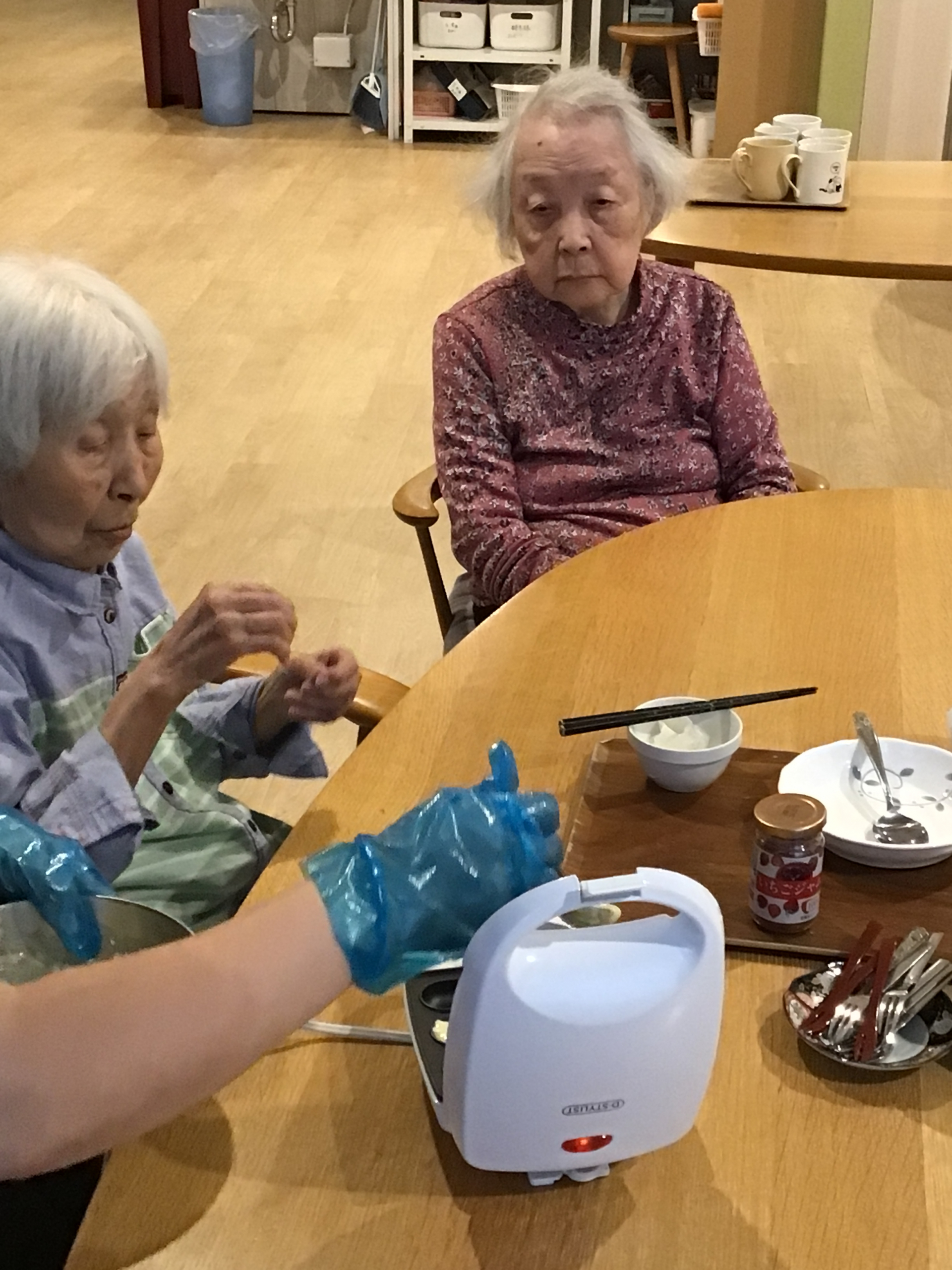 せっかくみんなで輪になったので,この日のおやつはみんなで作って食べました❣