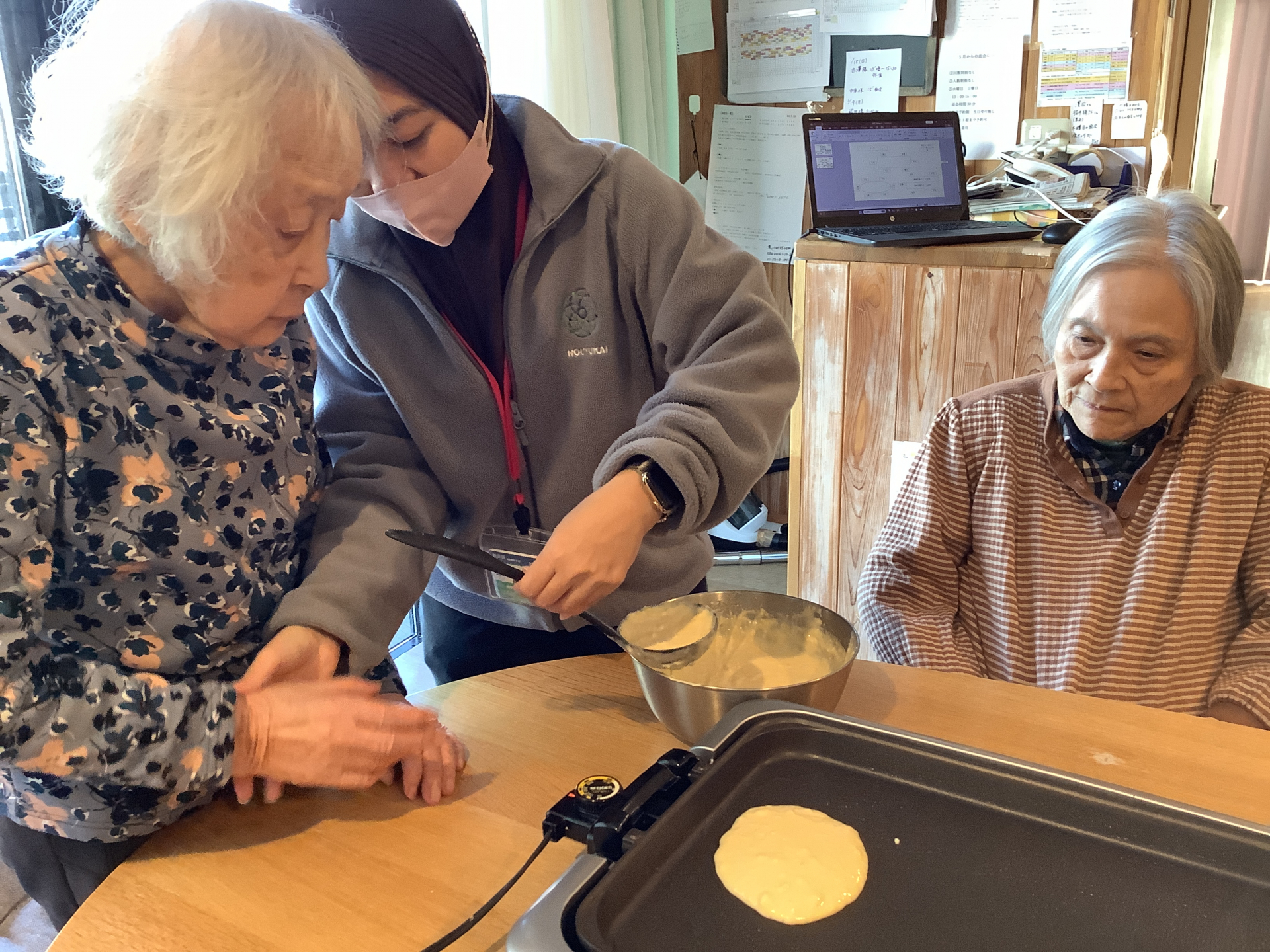 グループホーム フロア合同どら焼き作り!
