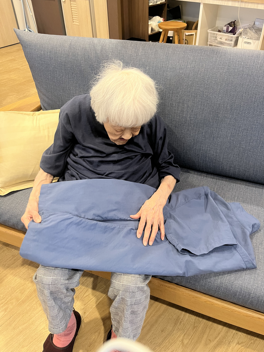 ソファに座りながら洗濯物を畳んで下さってます