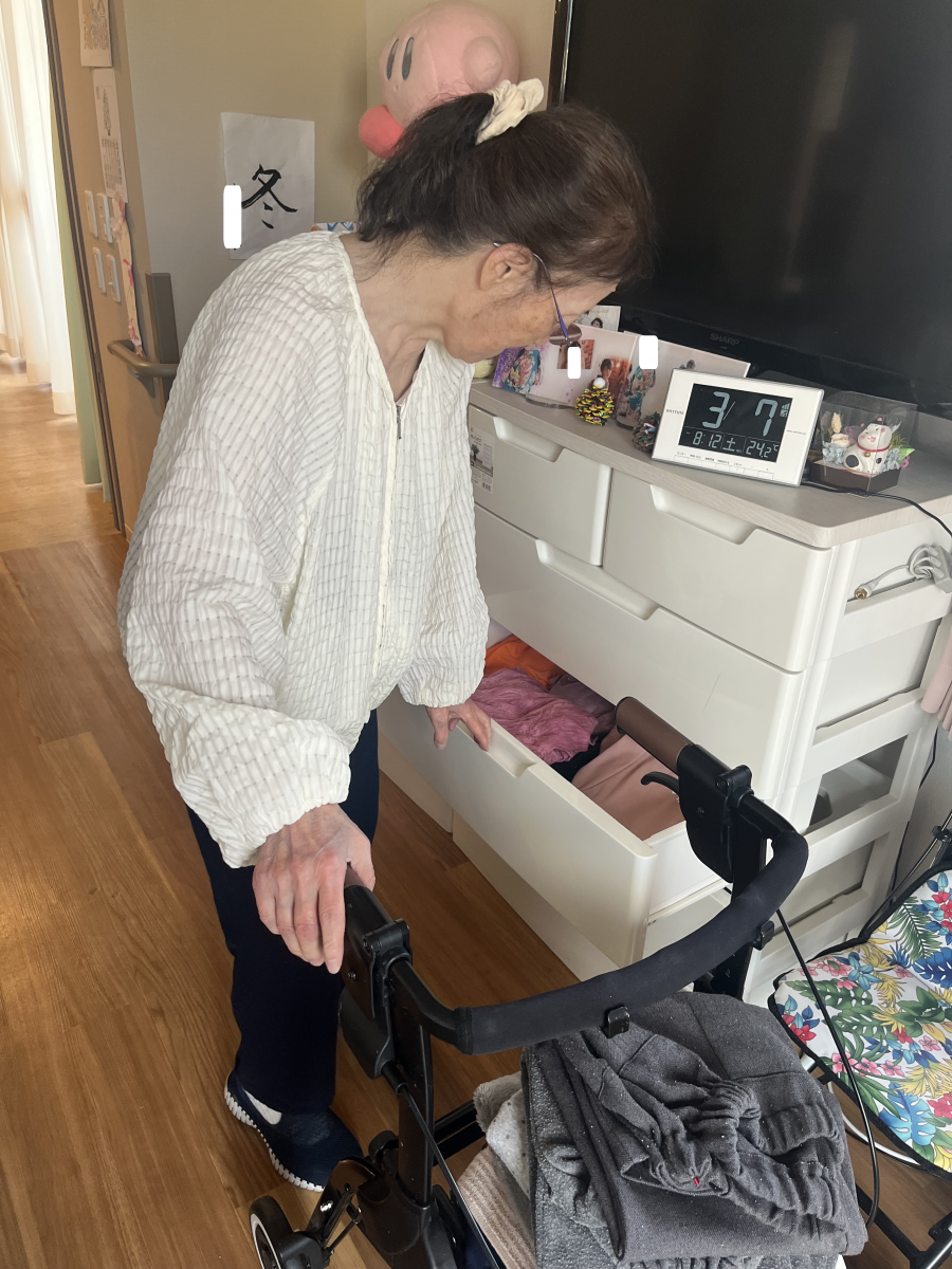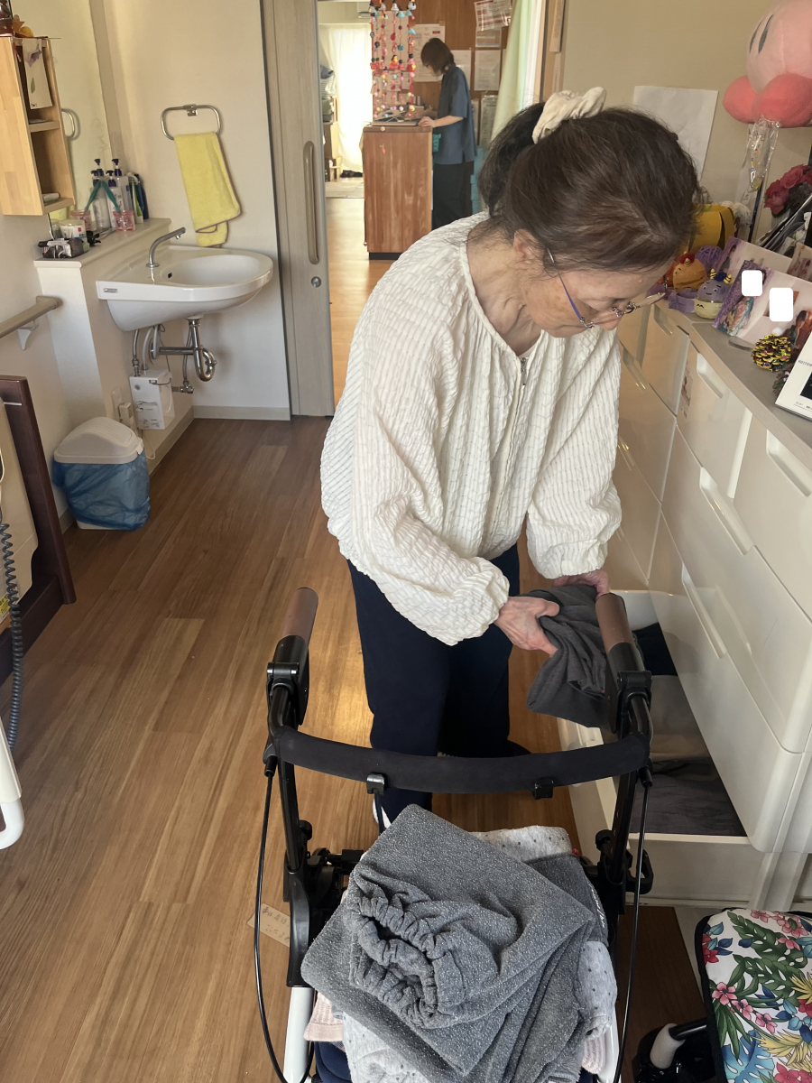洗濯物を畳んだ後は自分の衣類を衣装ケースにしまいます。。