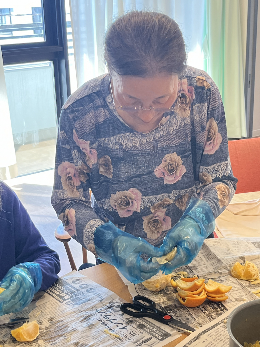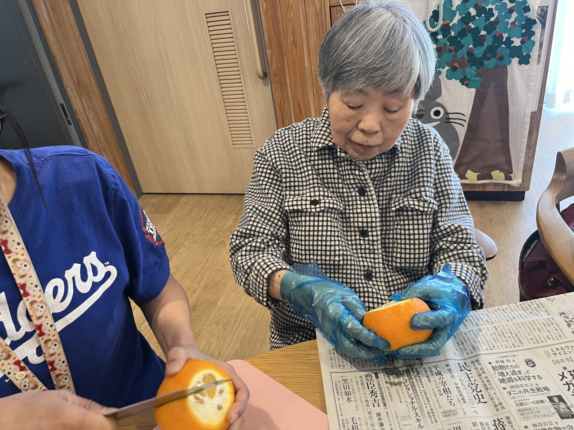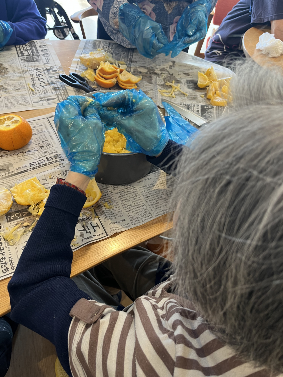 皆さんで協力して夏みかんを剥いていきましょう~~