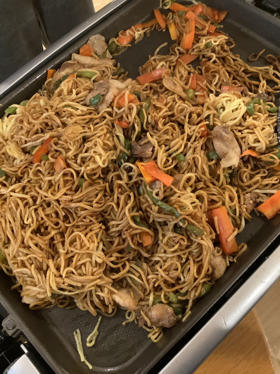誘惑に打ち勝ち、一旦プレートからよけて、麺を蒸し焼きしました。
