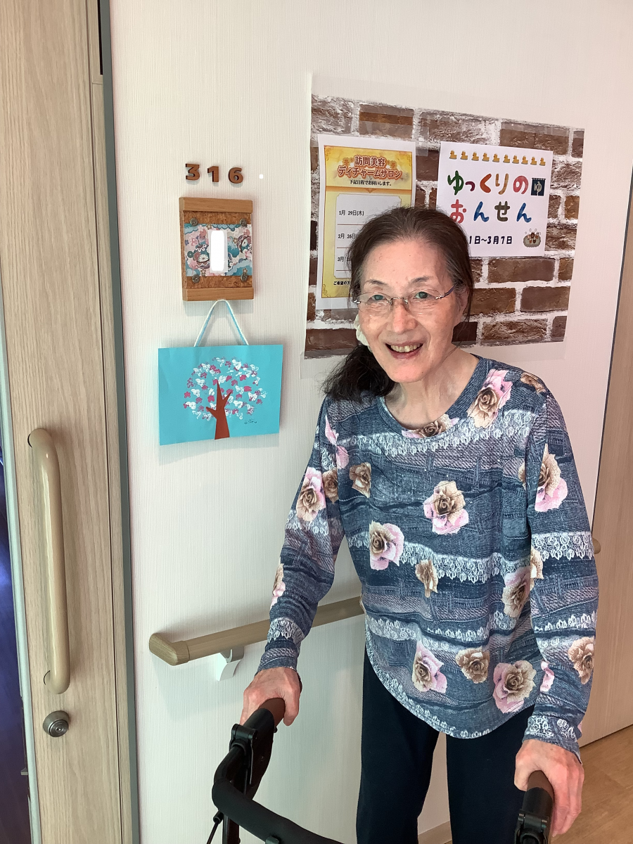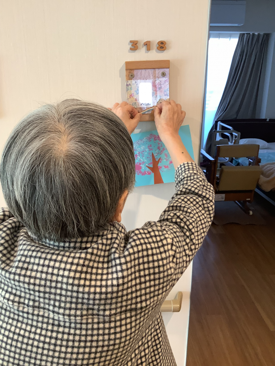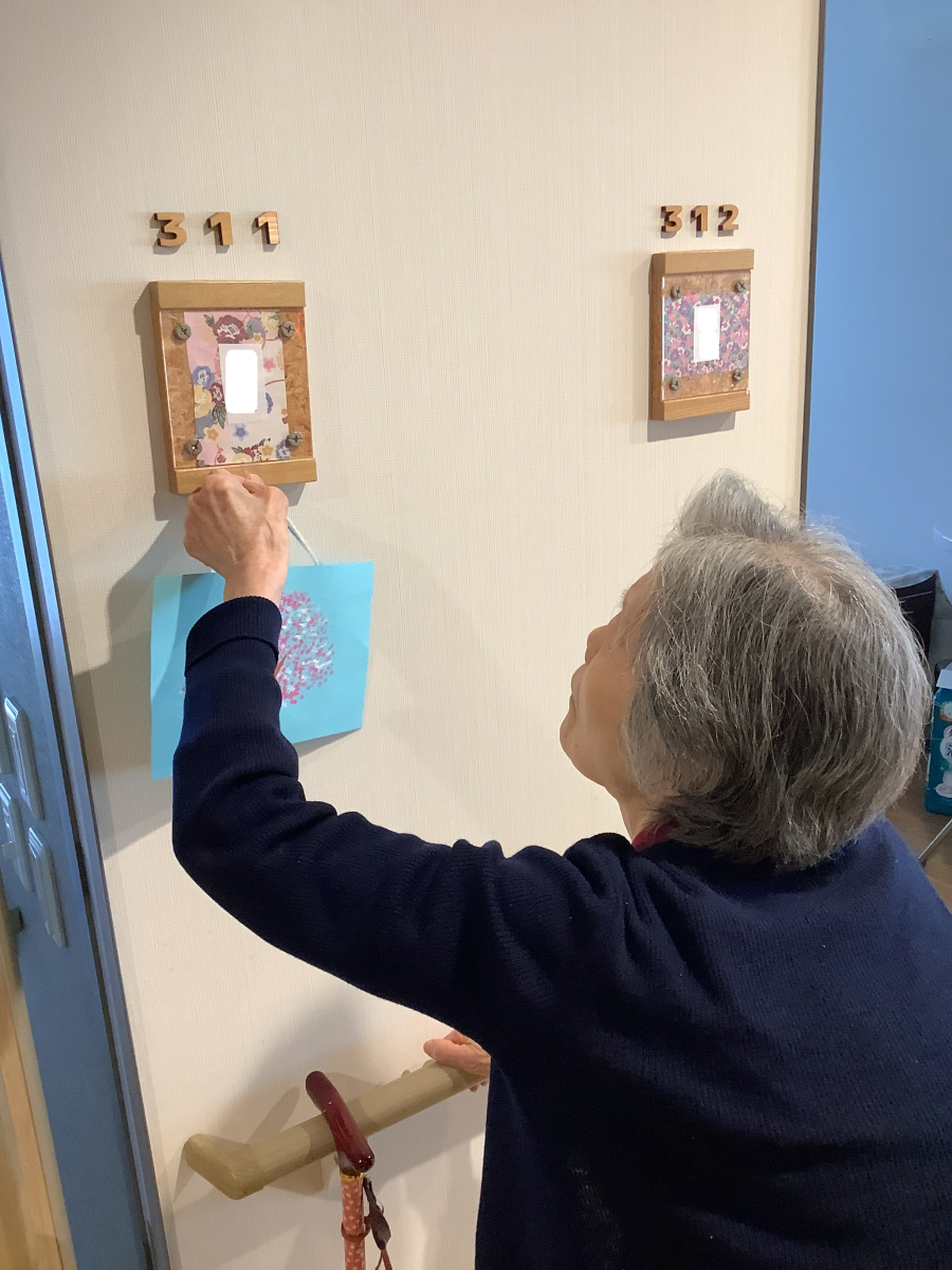 完成した桜の壁飾りを居室の表札に飾って行きましょう!