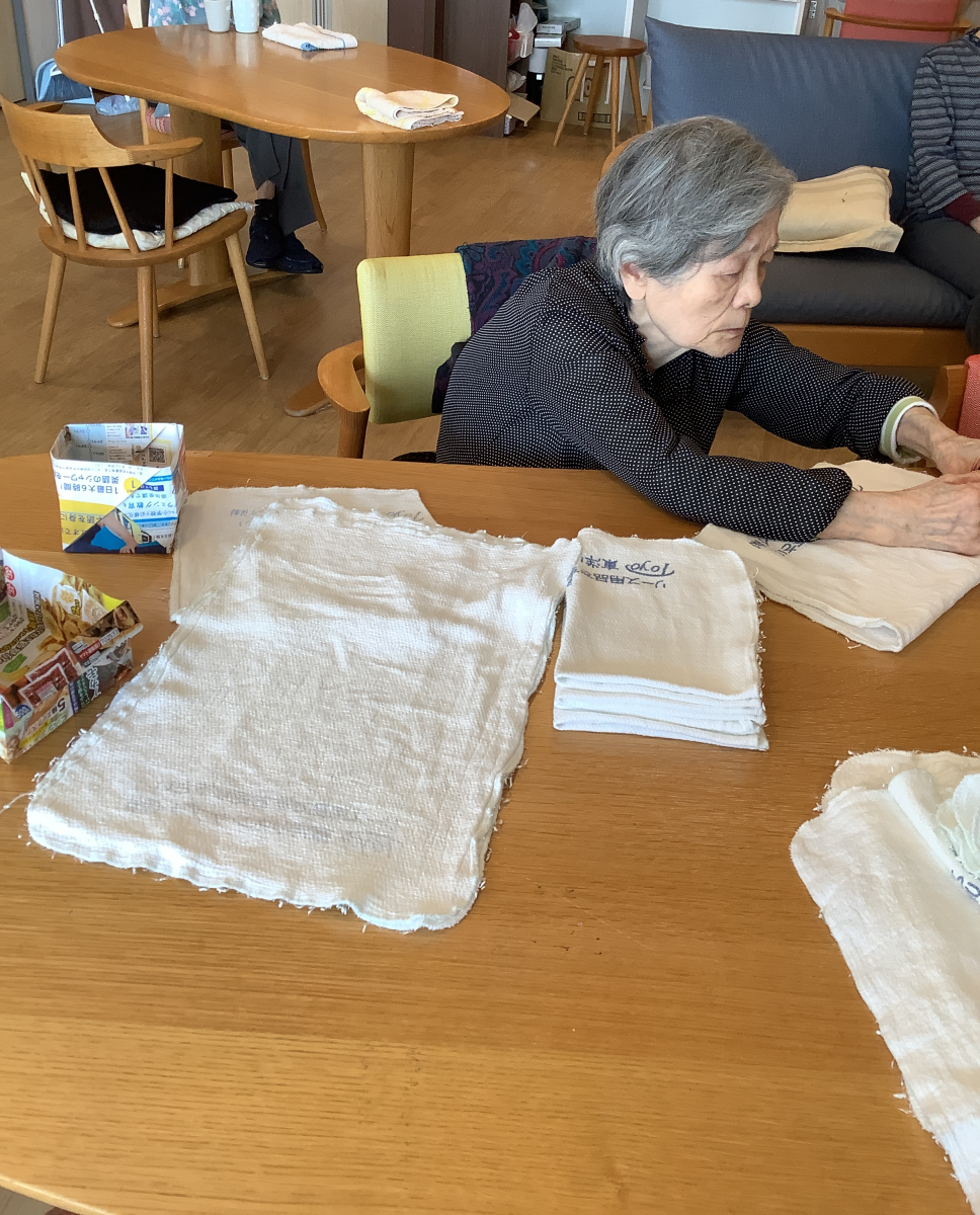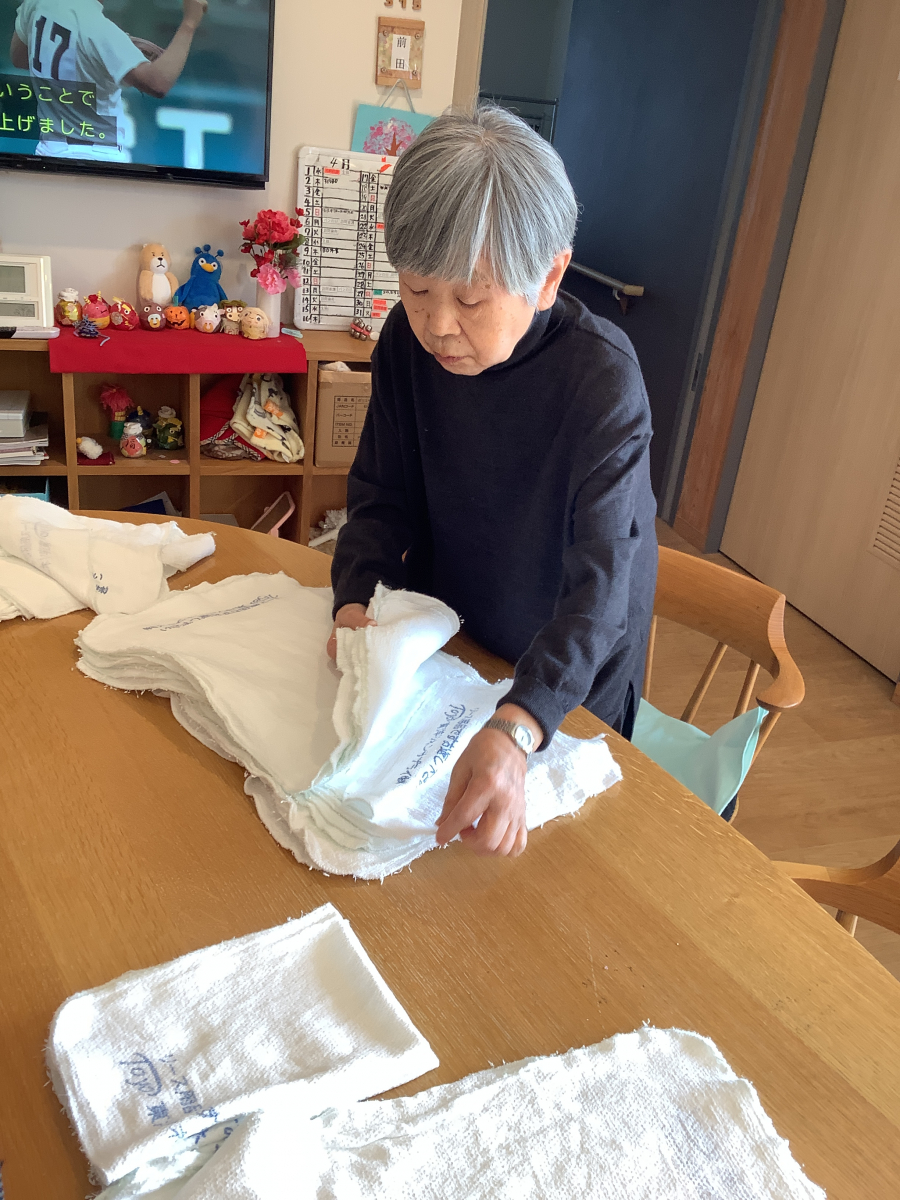 タオルを畳む事で手指の動きの活性化に繋がります!
