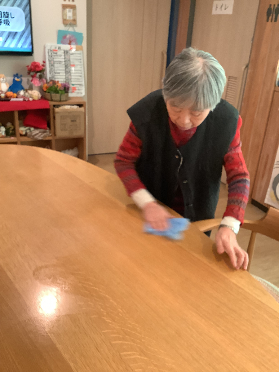 各テーブルを分担して拭いていきます