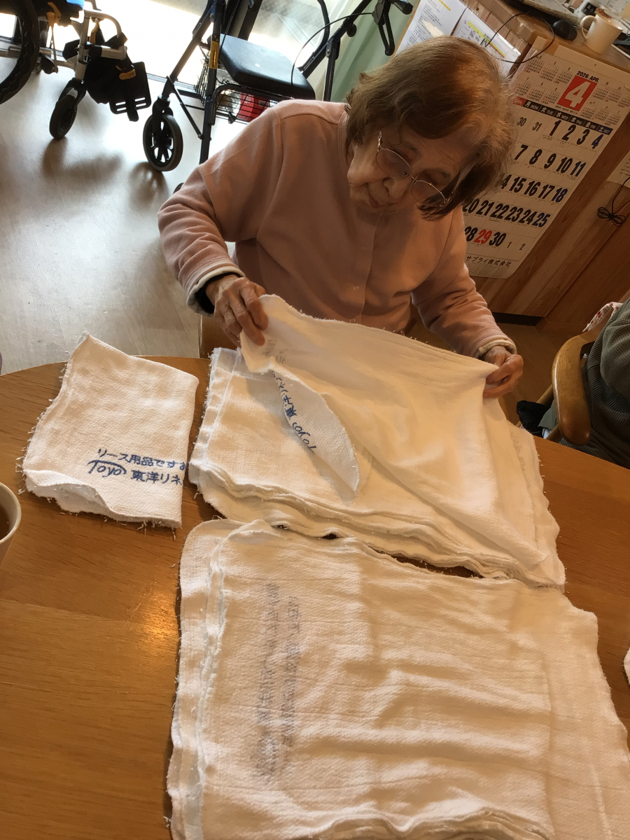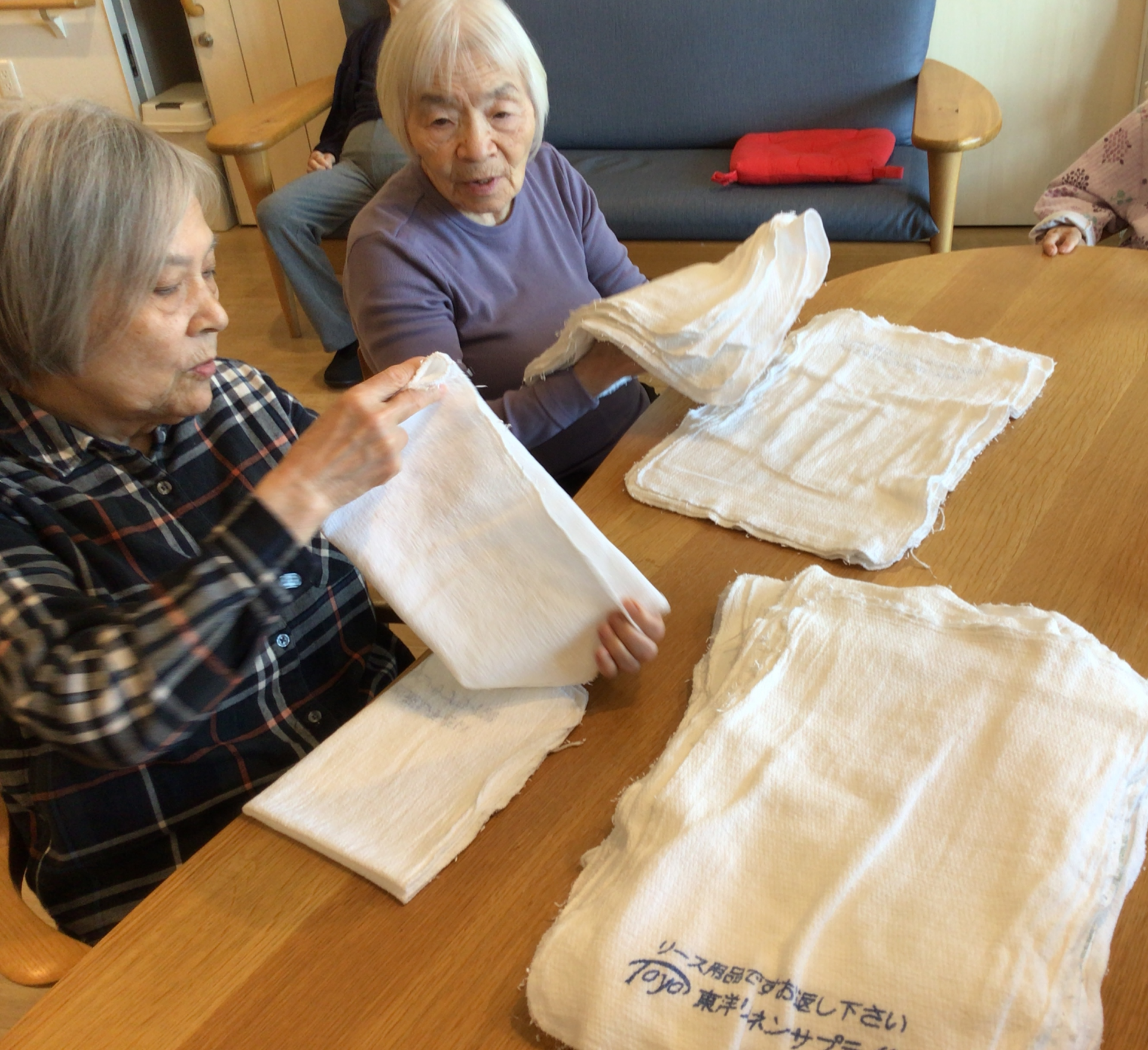 仲良くタオル畳み中~~